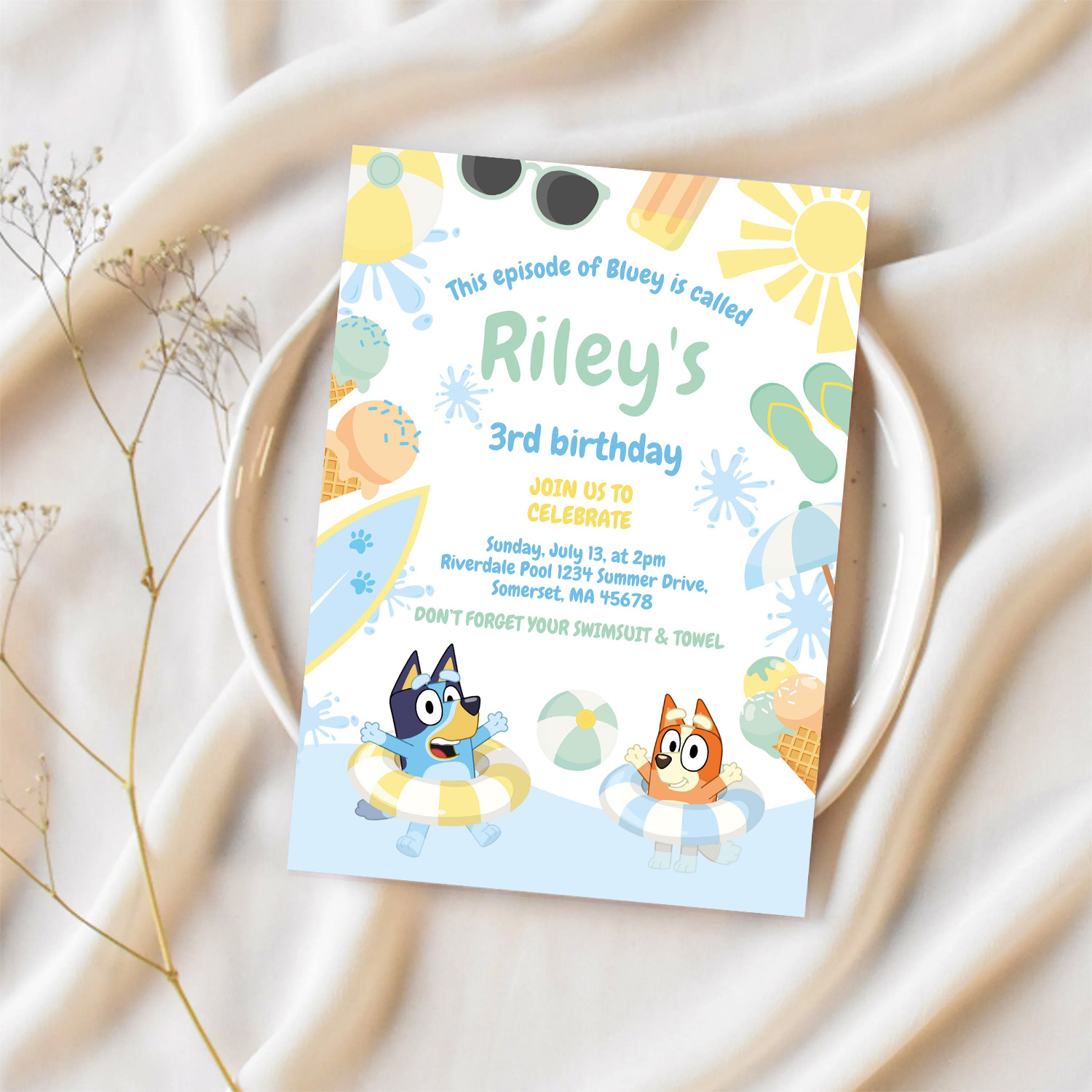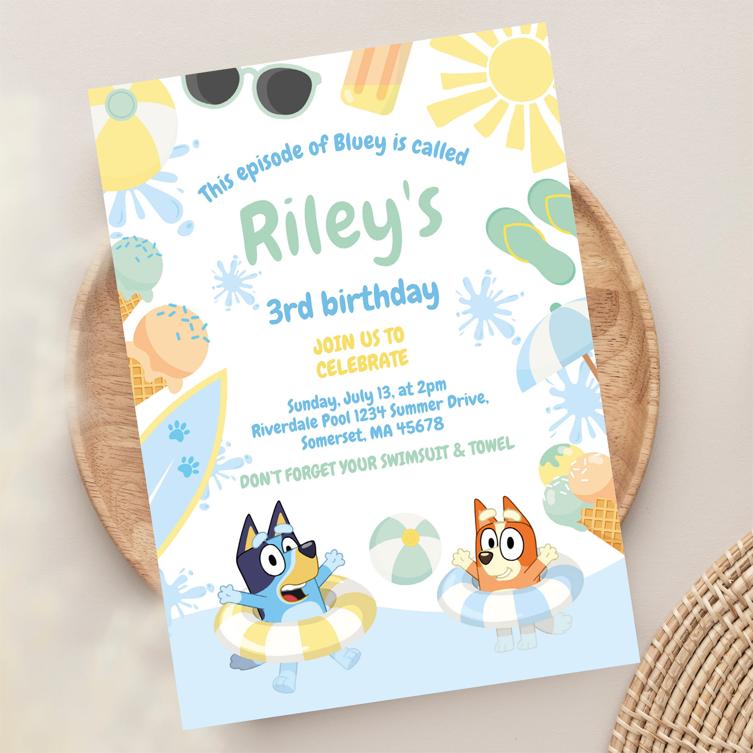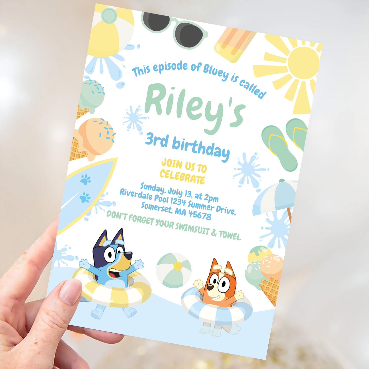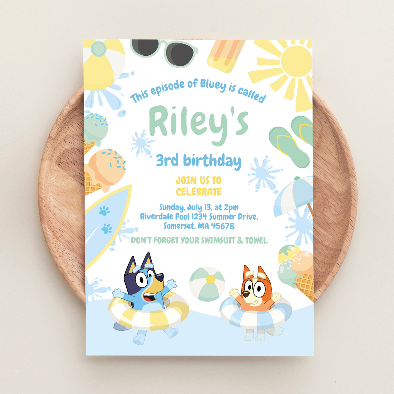 Bluey And Bingo Pool Party Birthday Invitation