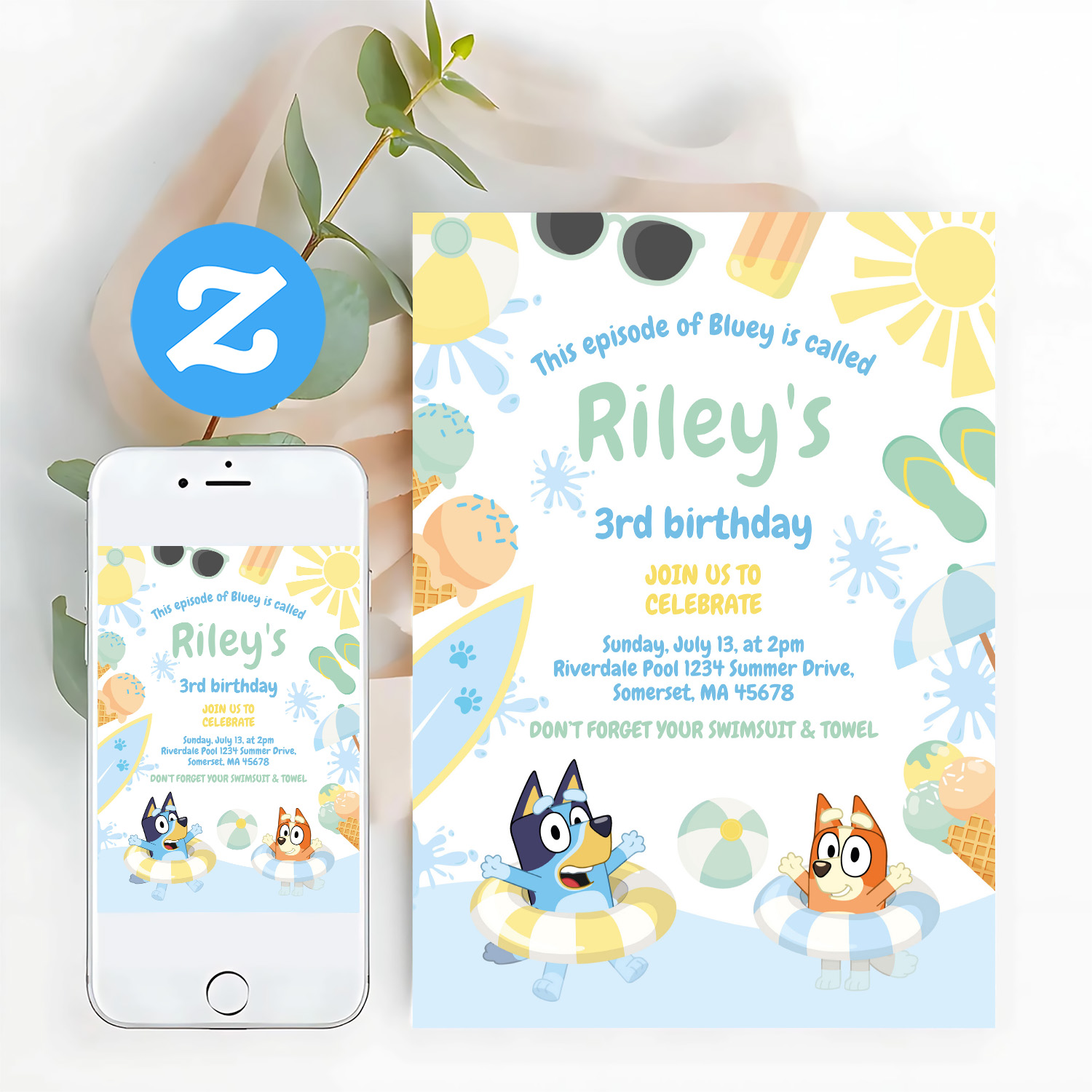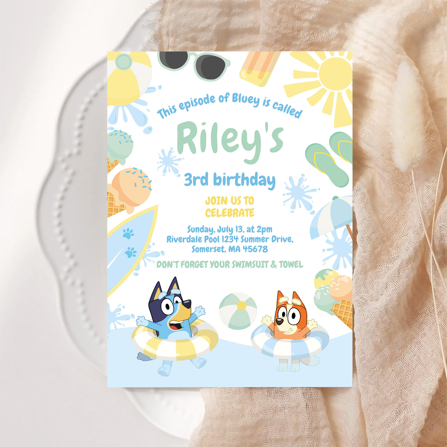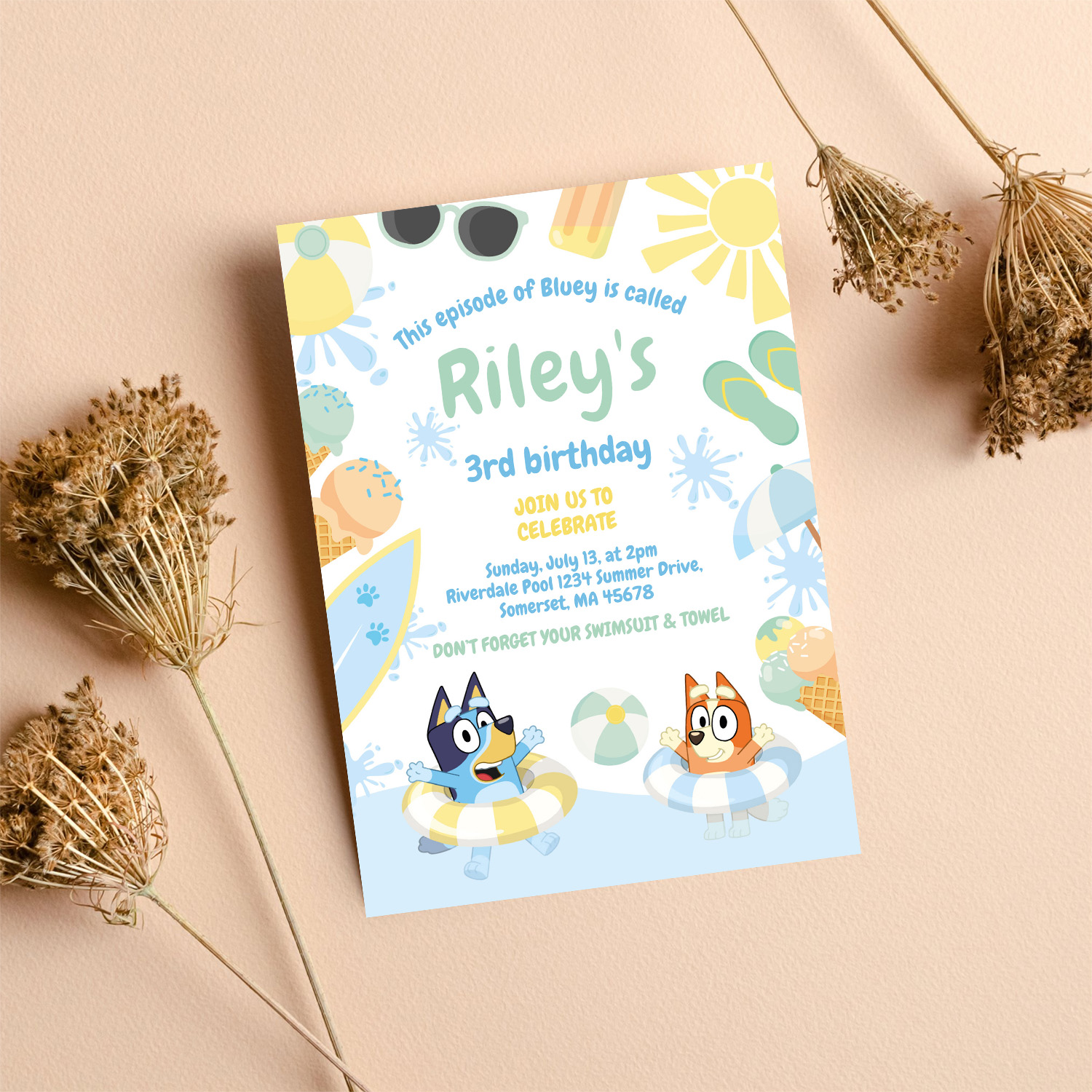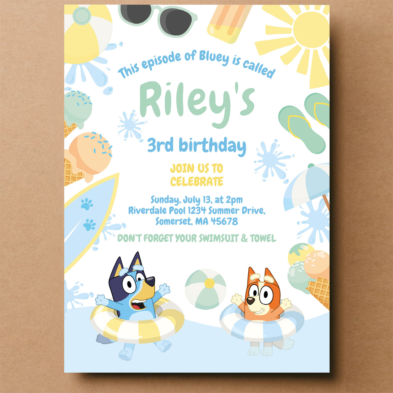 Be the first to review “Bluey And Bingo Pool Party Birthday Invitation”