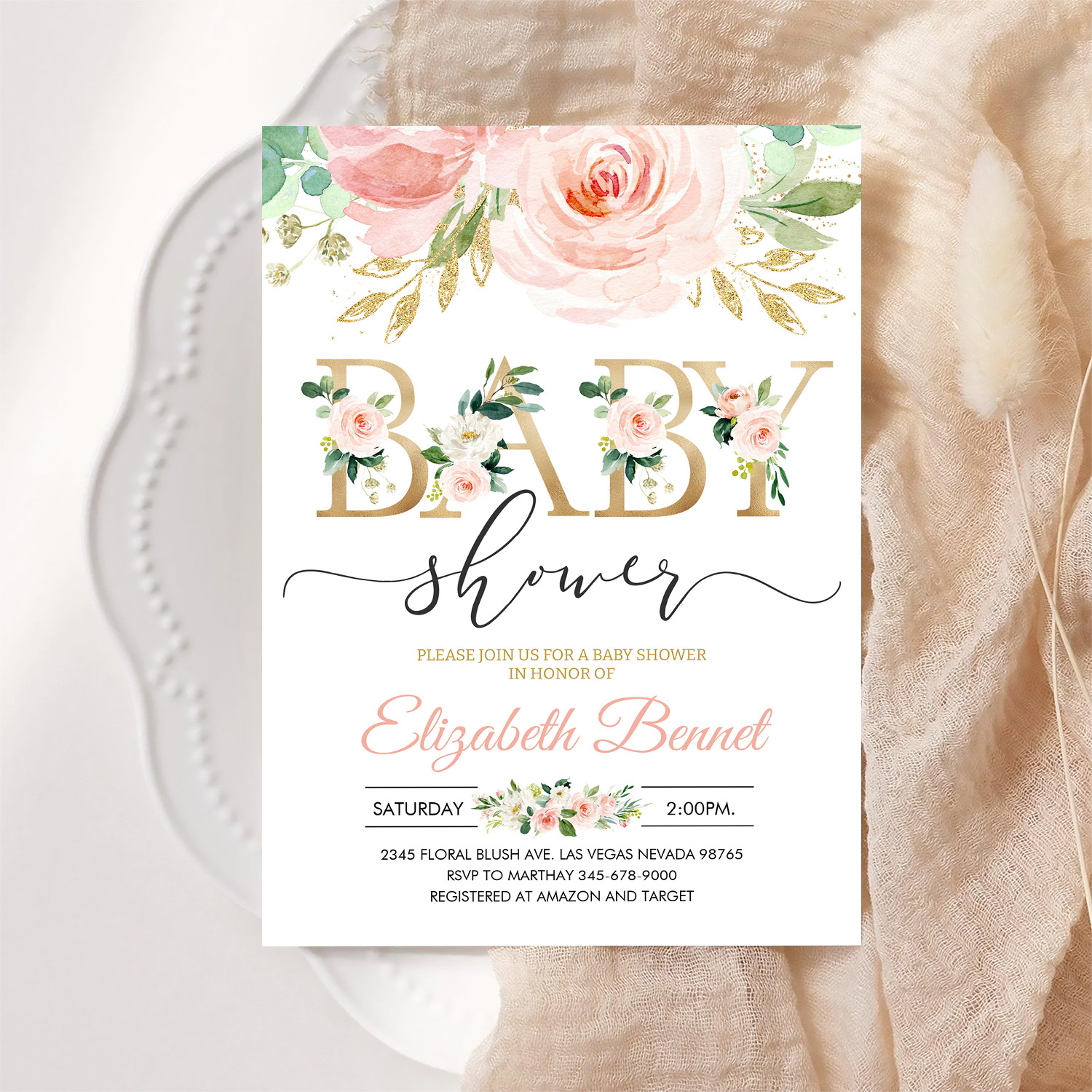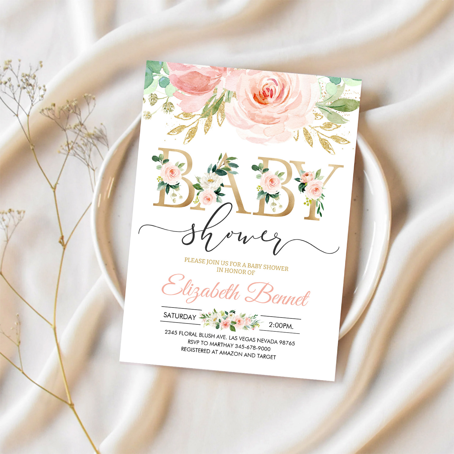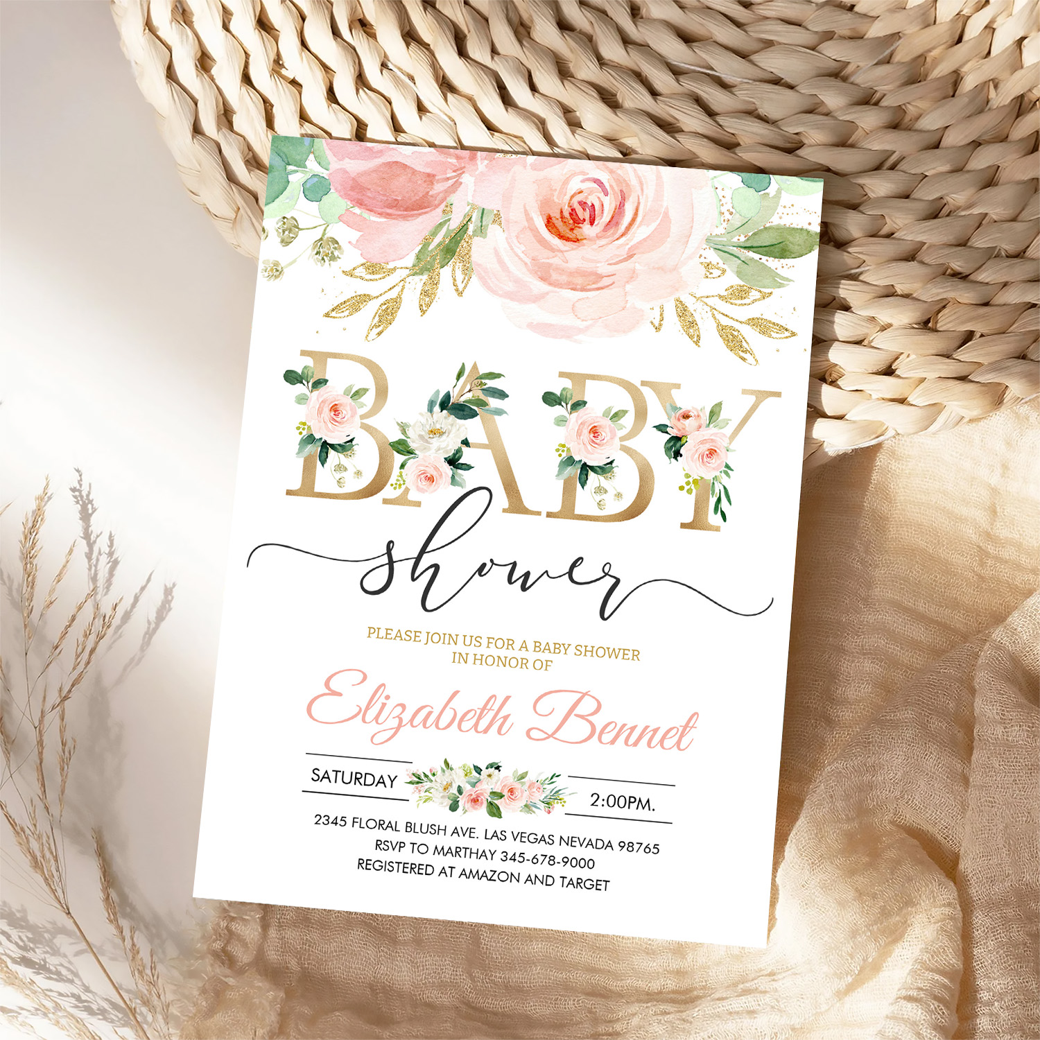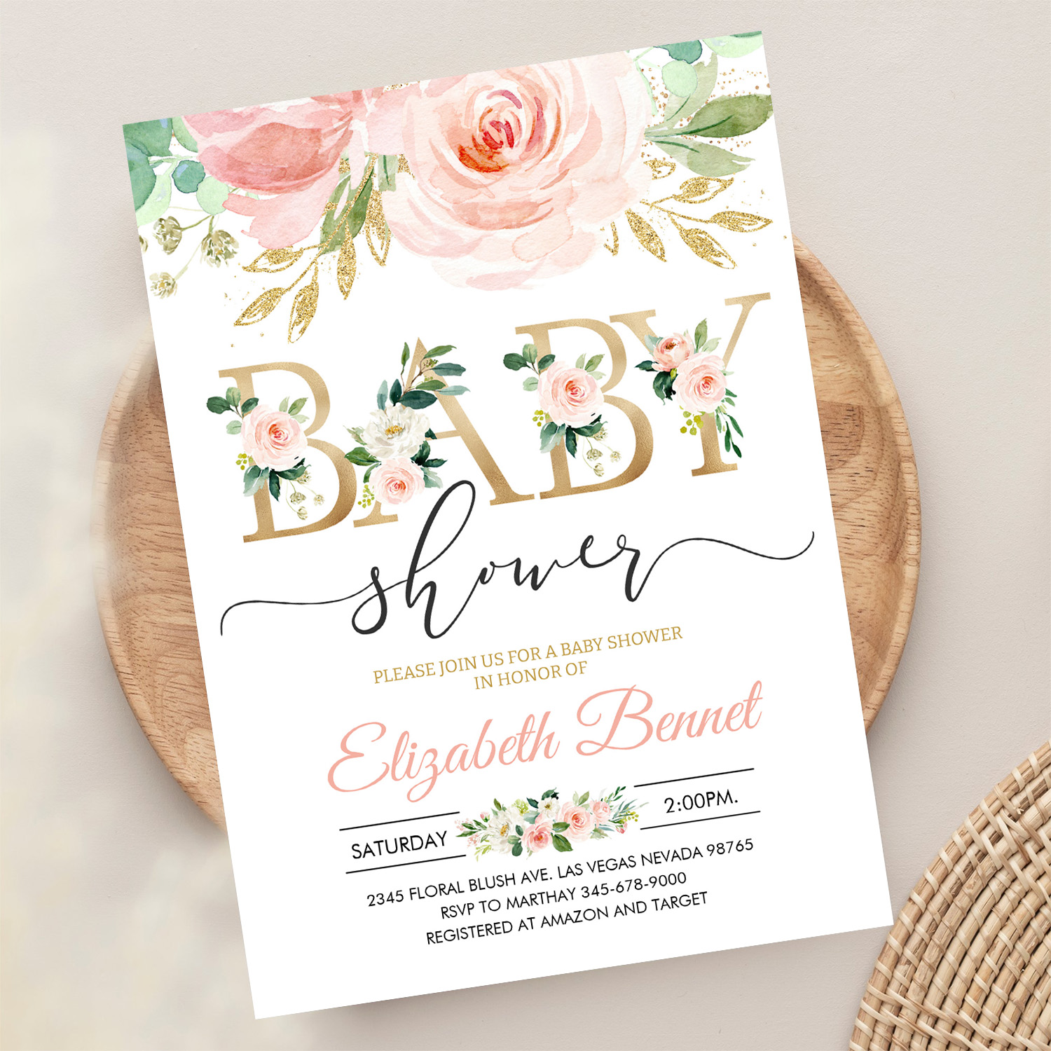 Blush Pink Floral Sweet Baby Girl Baby Shower Invitation