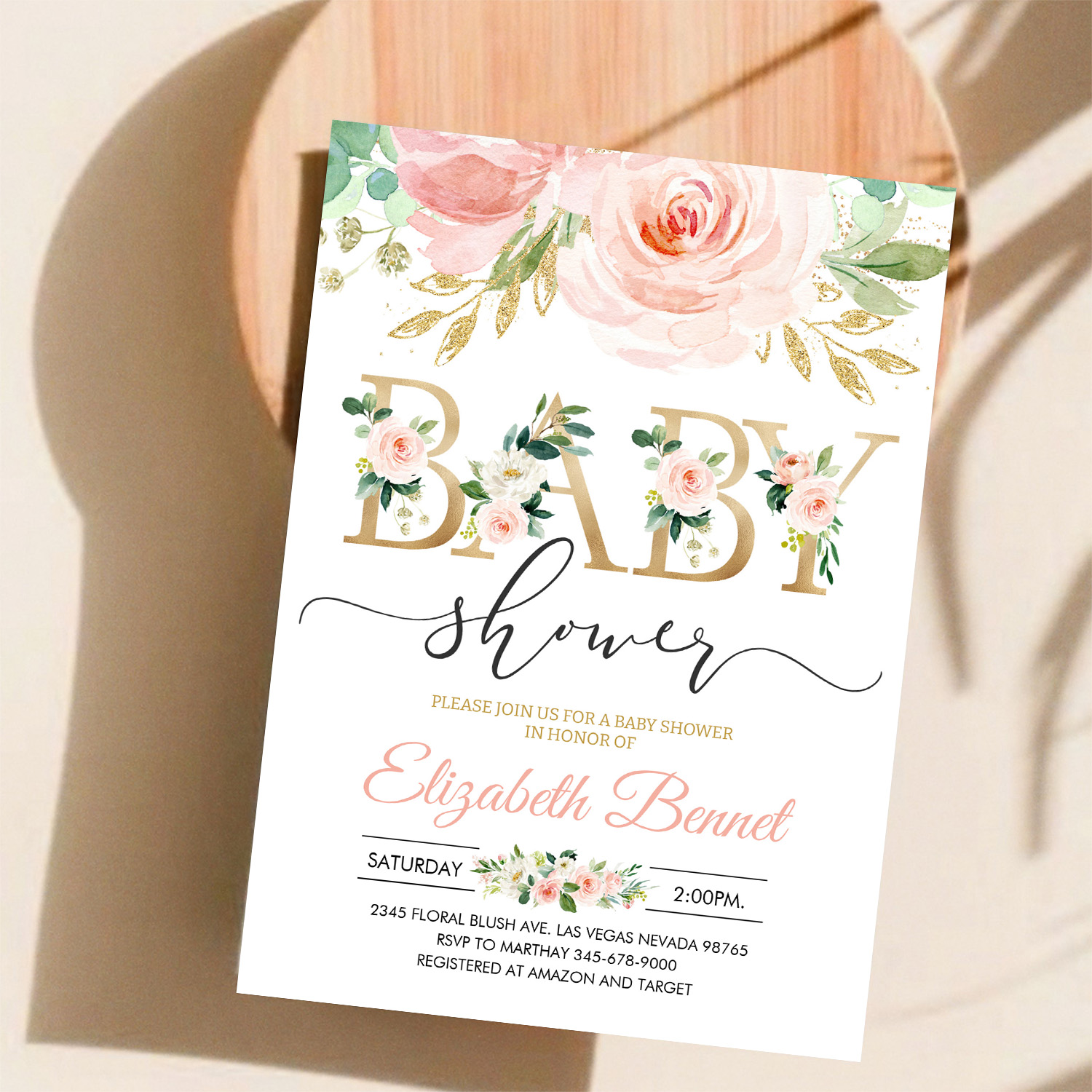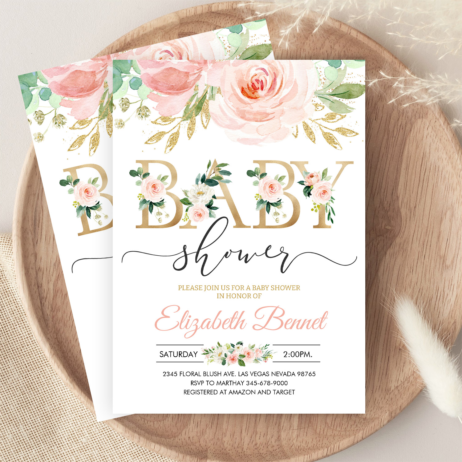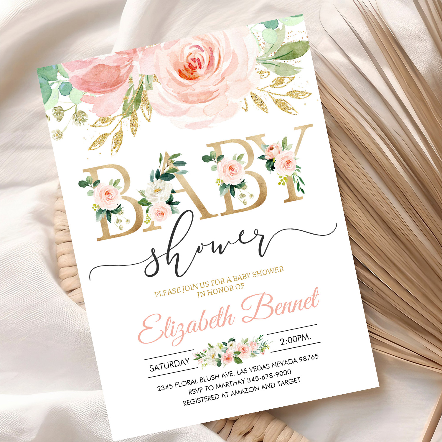 Blush Pink Floral Sweet Baby Girl Baby Shower Invitation