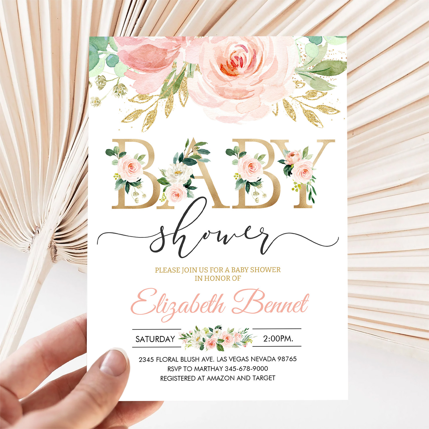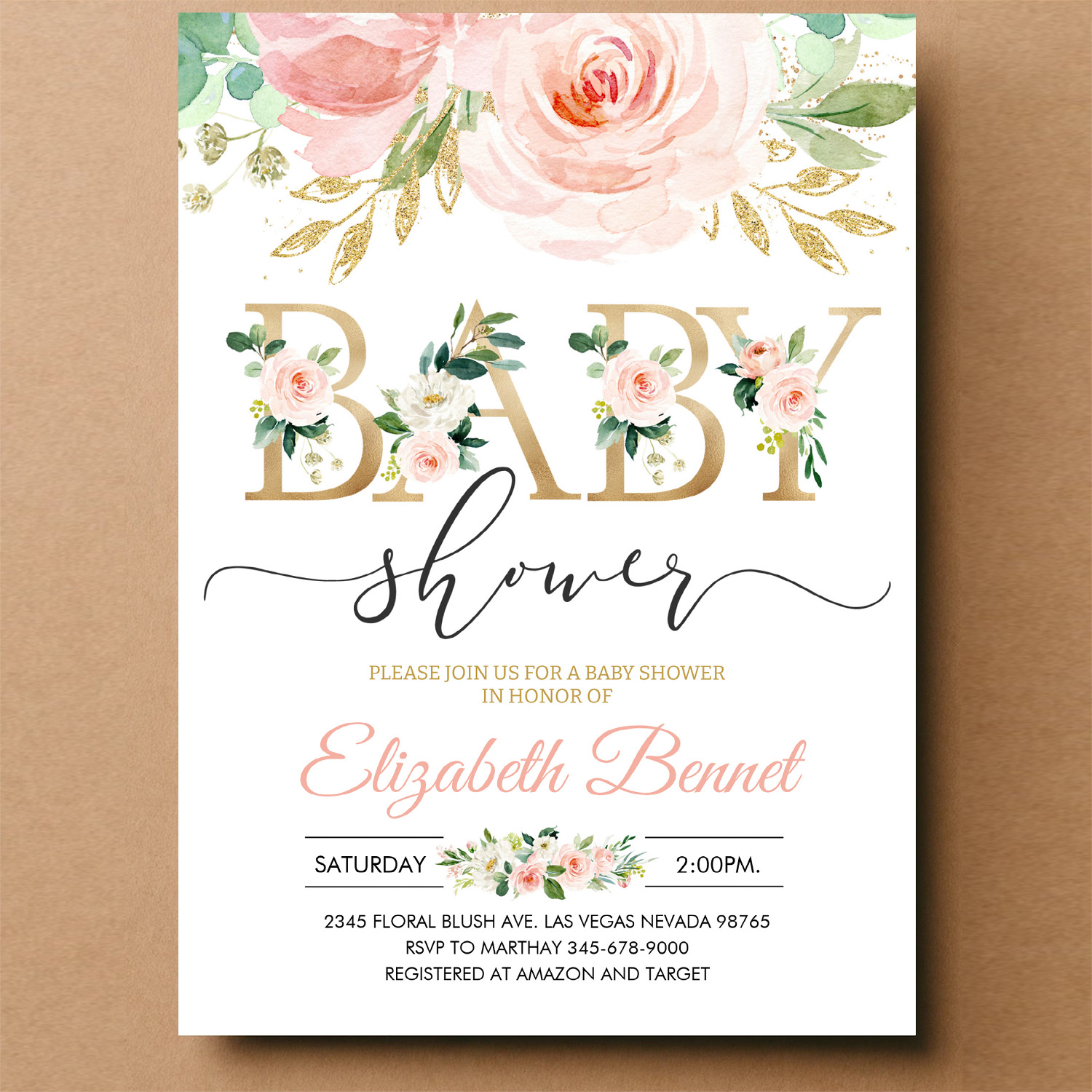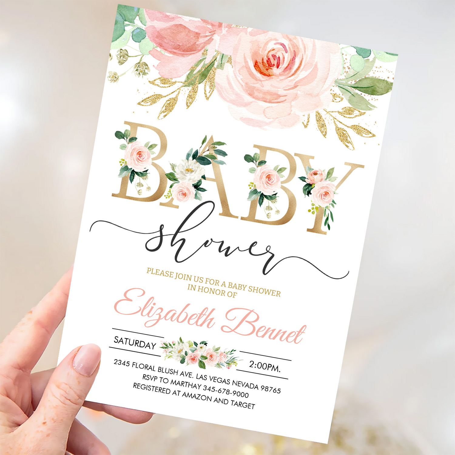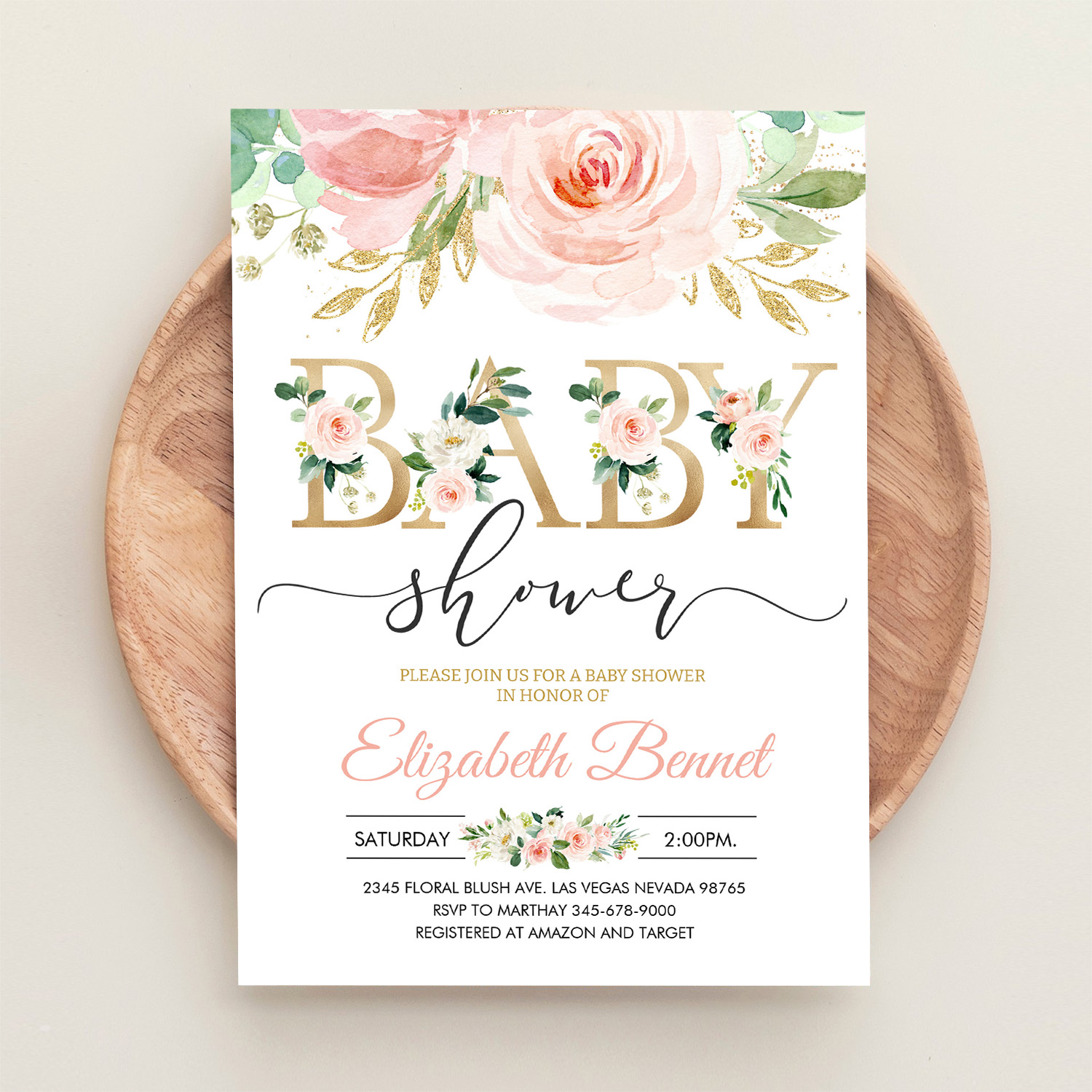 Blush Pink Floral Sweet Baby Girl Baby Shower Invitation