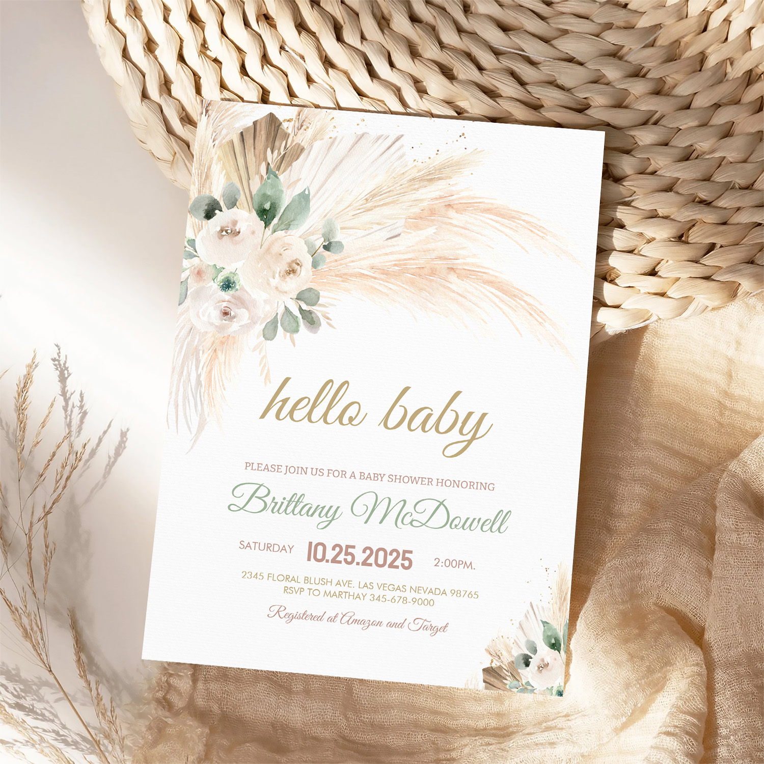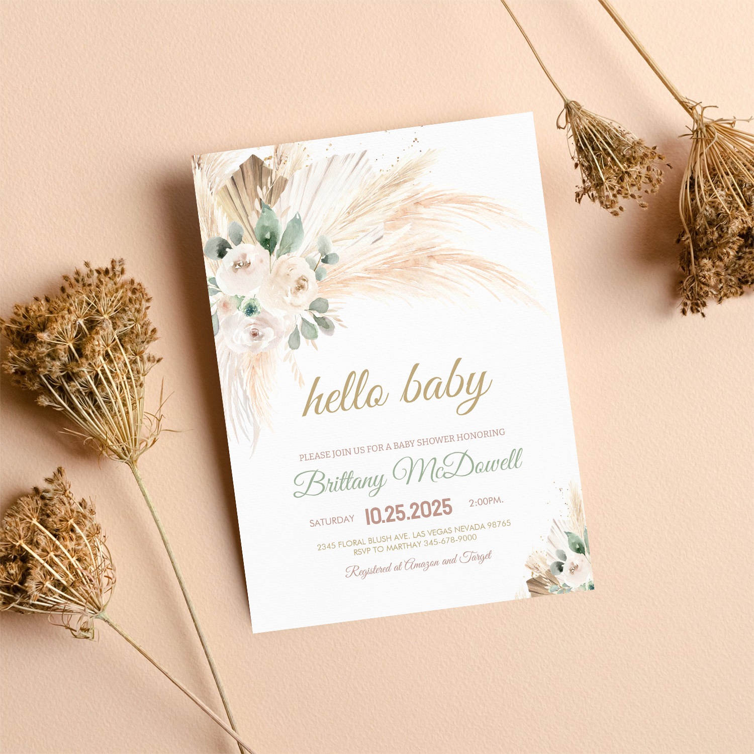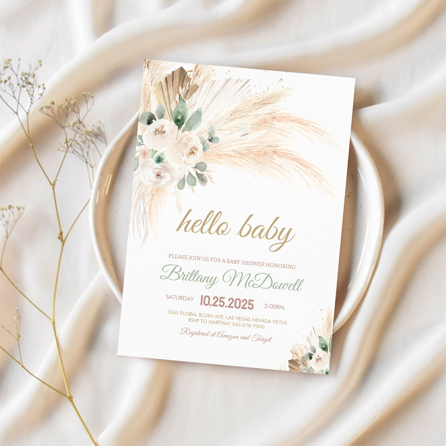 Boho Pampas Grass Baby Shower Invitation