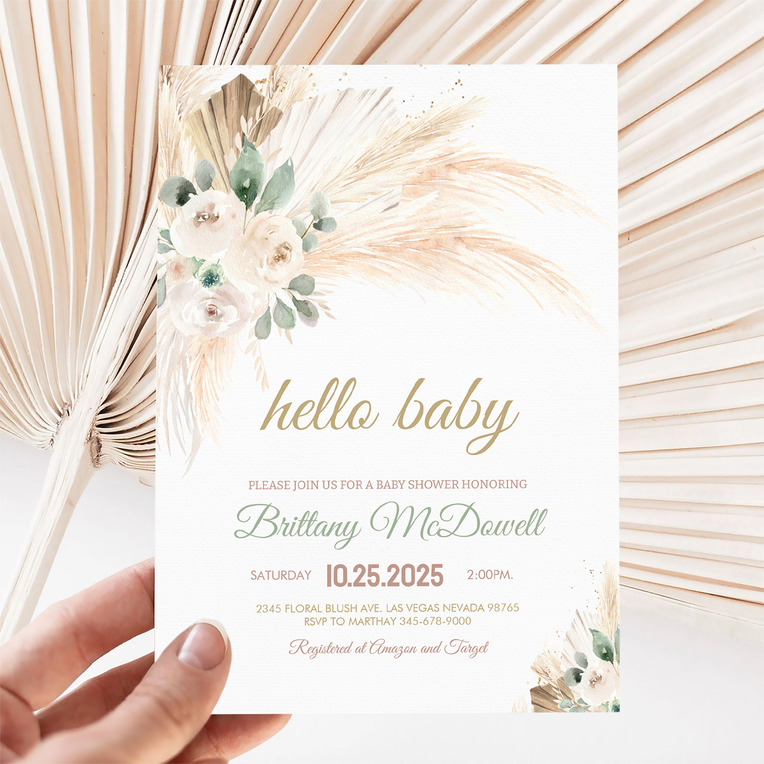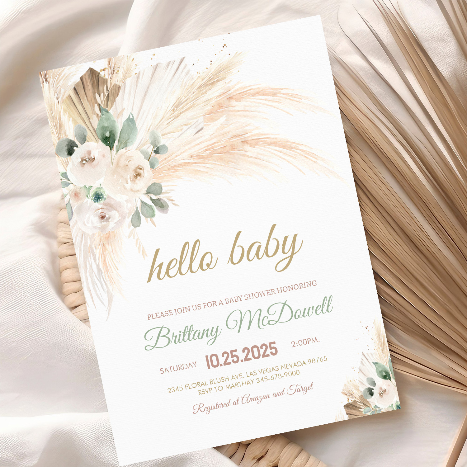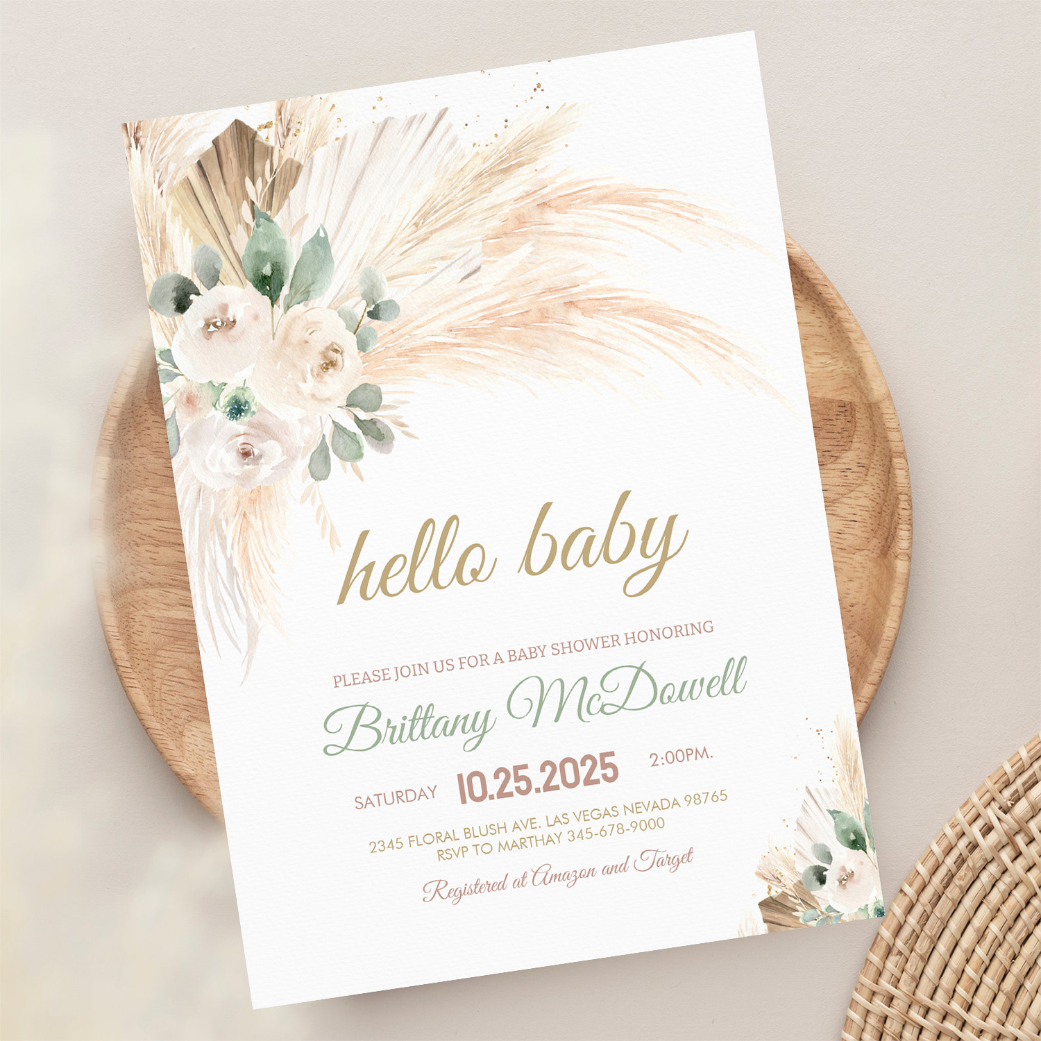 Boho Pampas Grass Baby Shower Invitation
