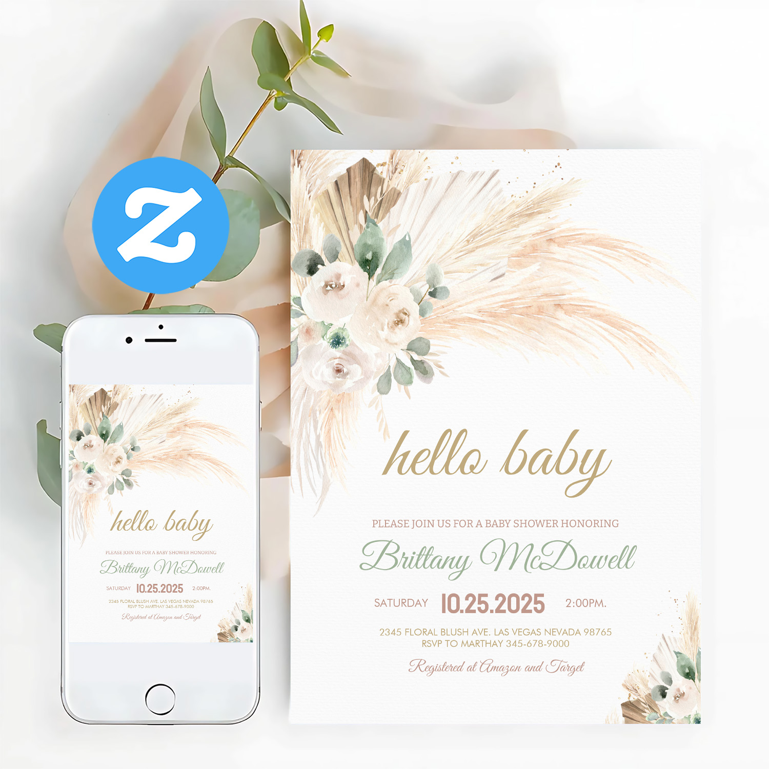 Be the first to review “Boho Pampas Grass Baby Shower Invitation”