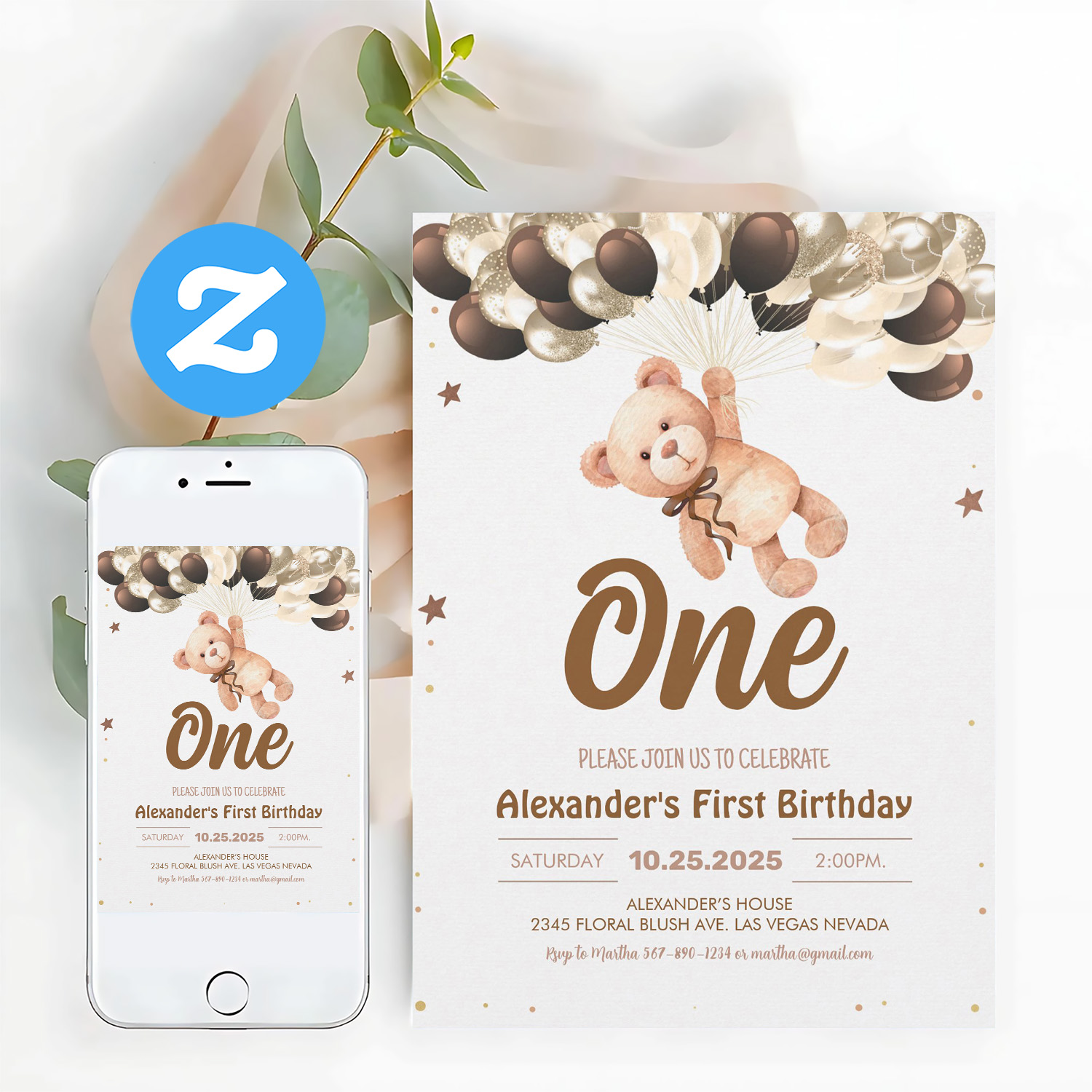 Be the first to review “Boy Bear Bear With Balloons Teddy Bear Birthday Invitation”