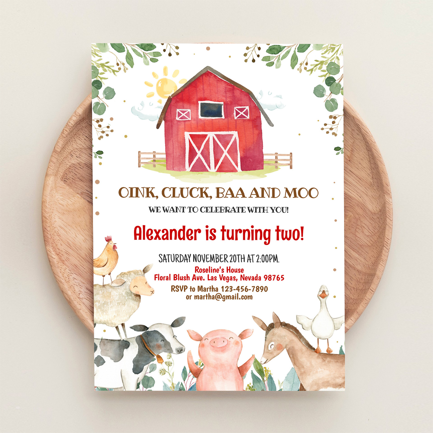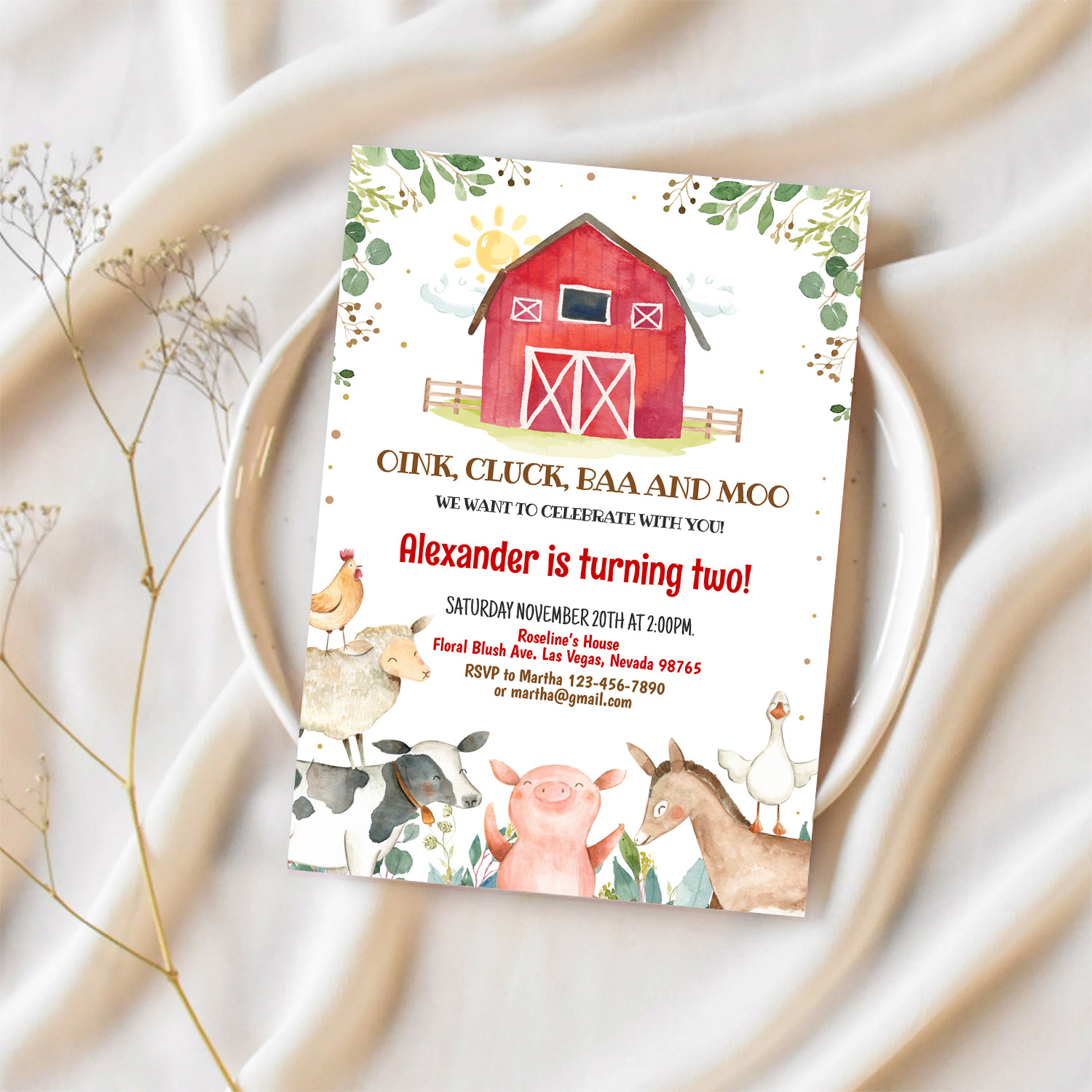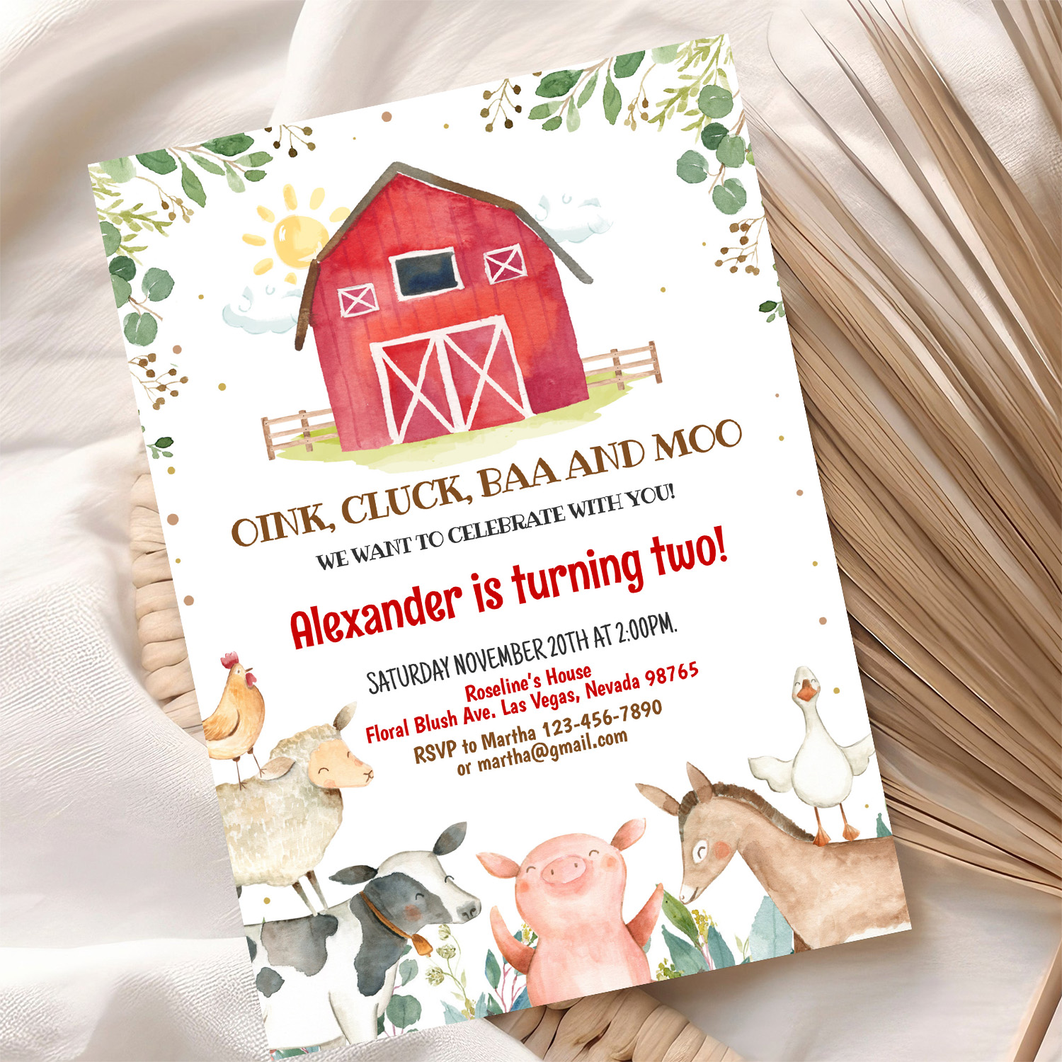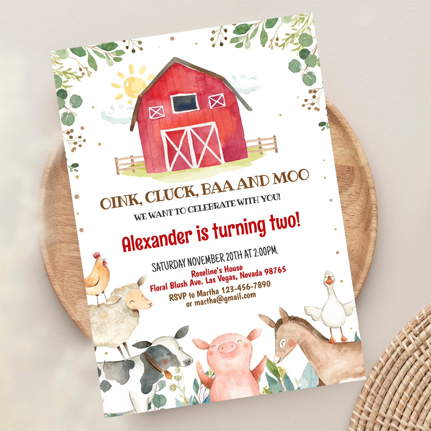 Farm Animals Barnyard Boy Boy Barn Party Birthday Invitation