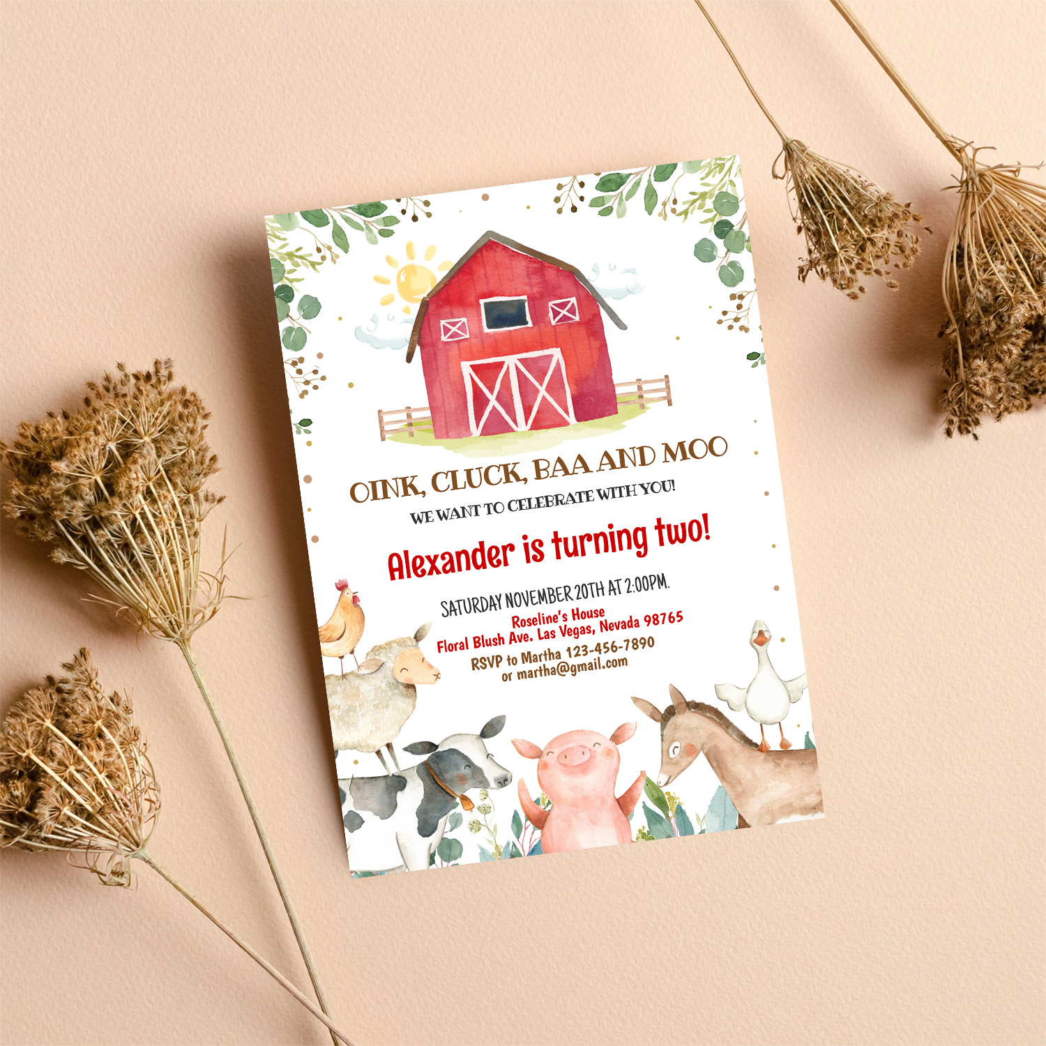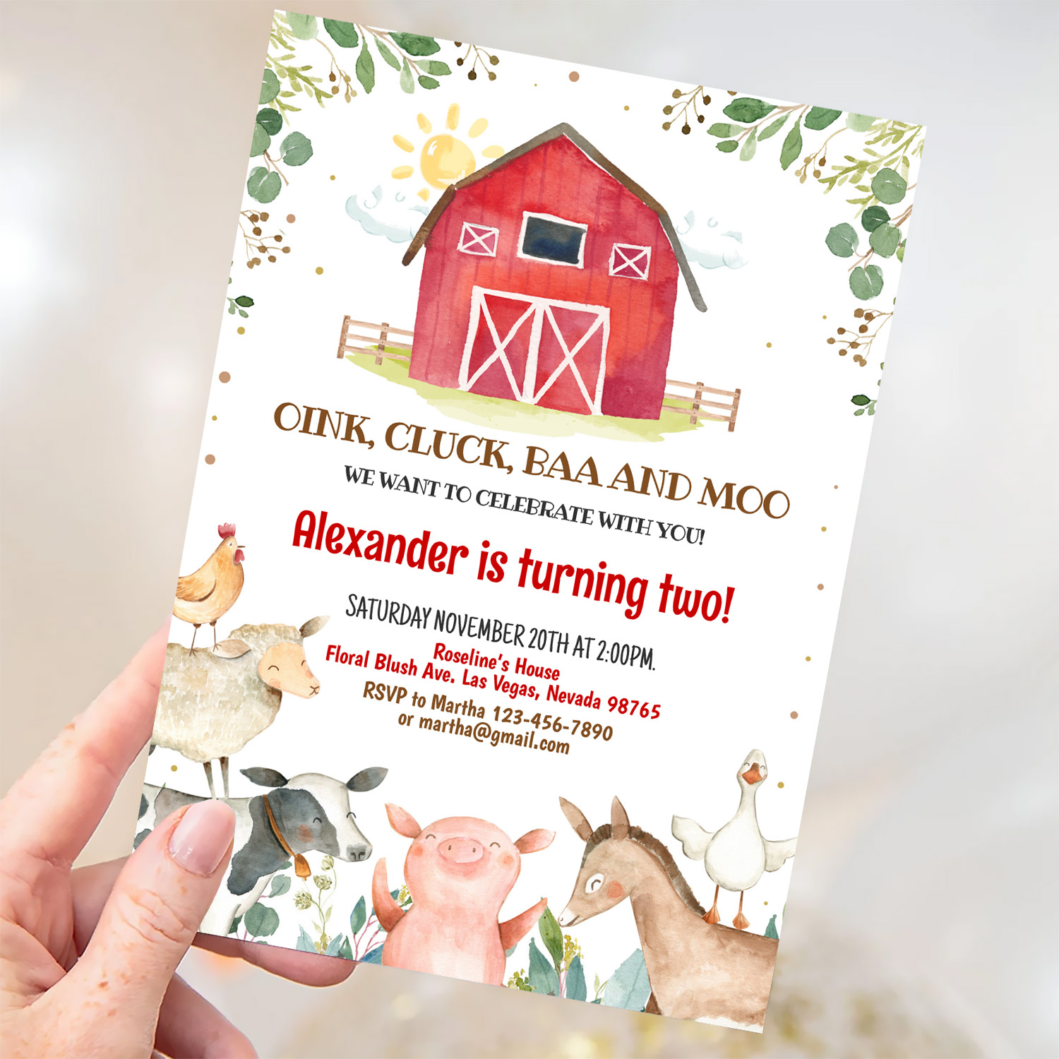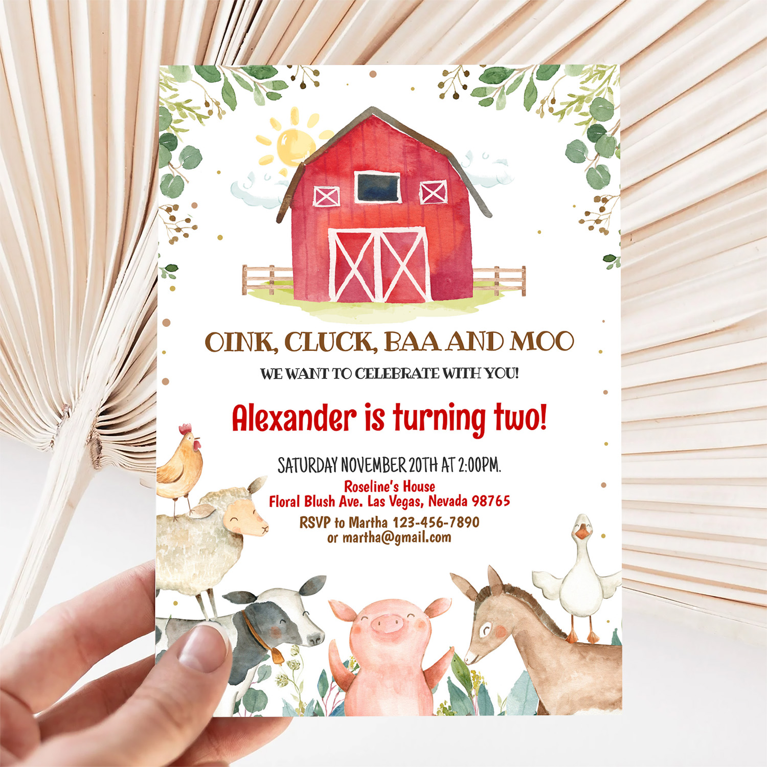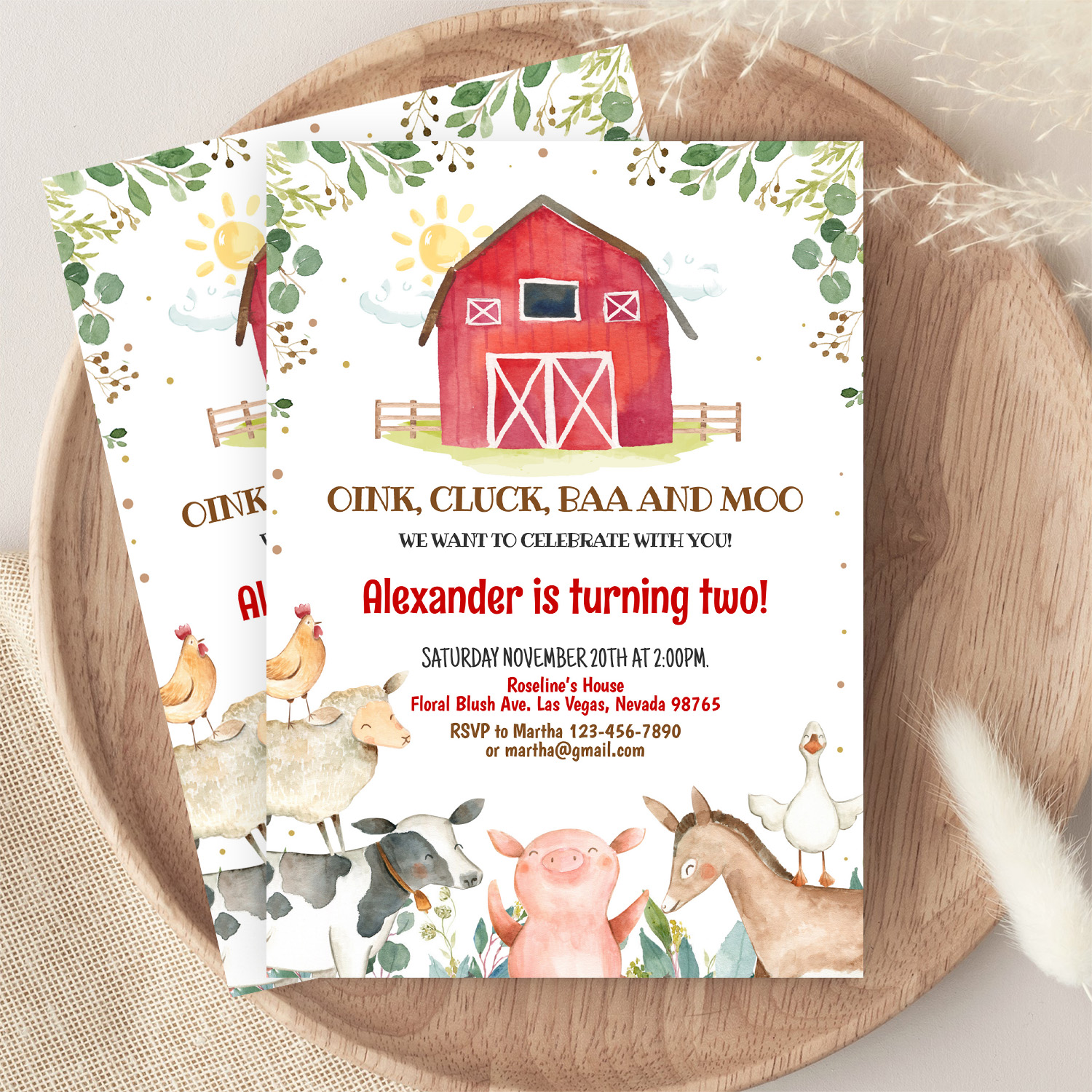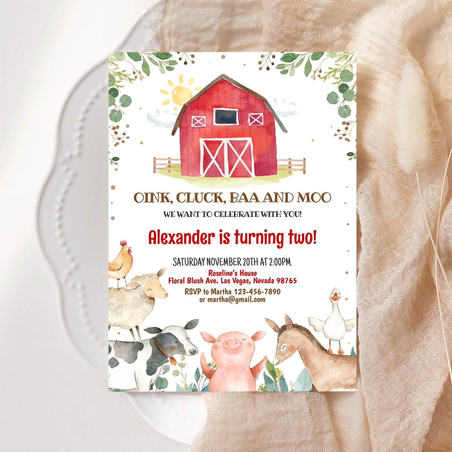 Farm Animals Barnyard Boy Boy Barn Party Birthday Invitation