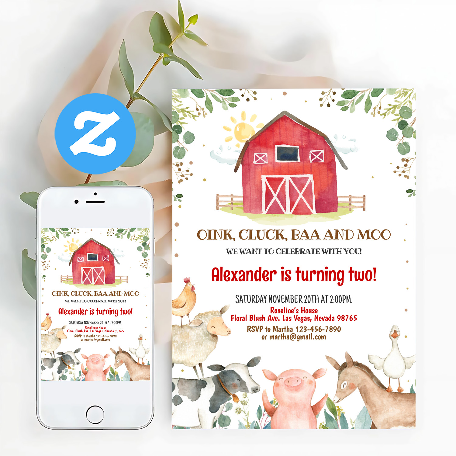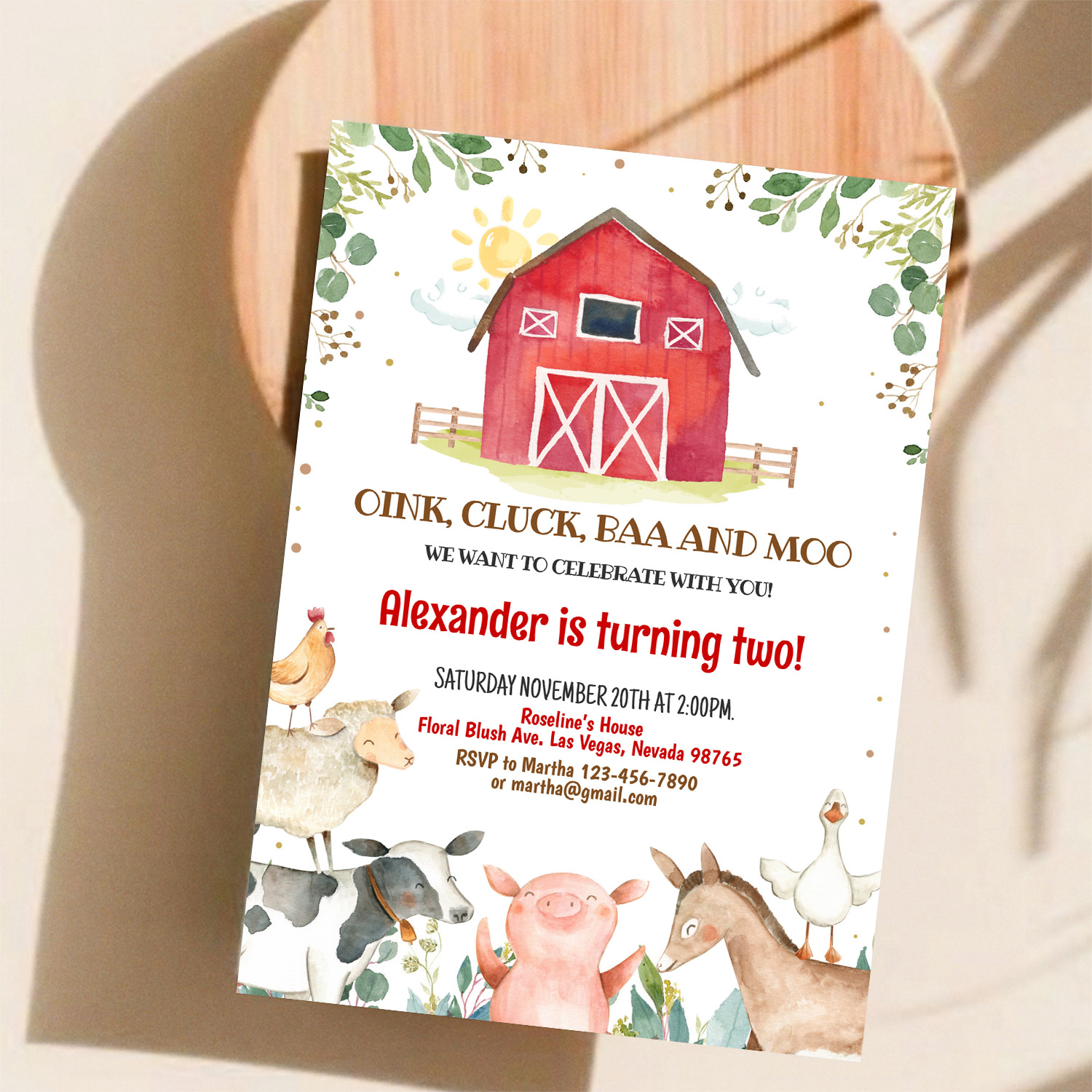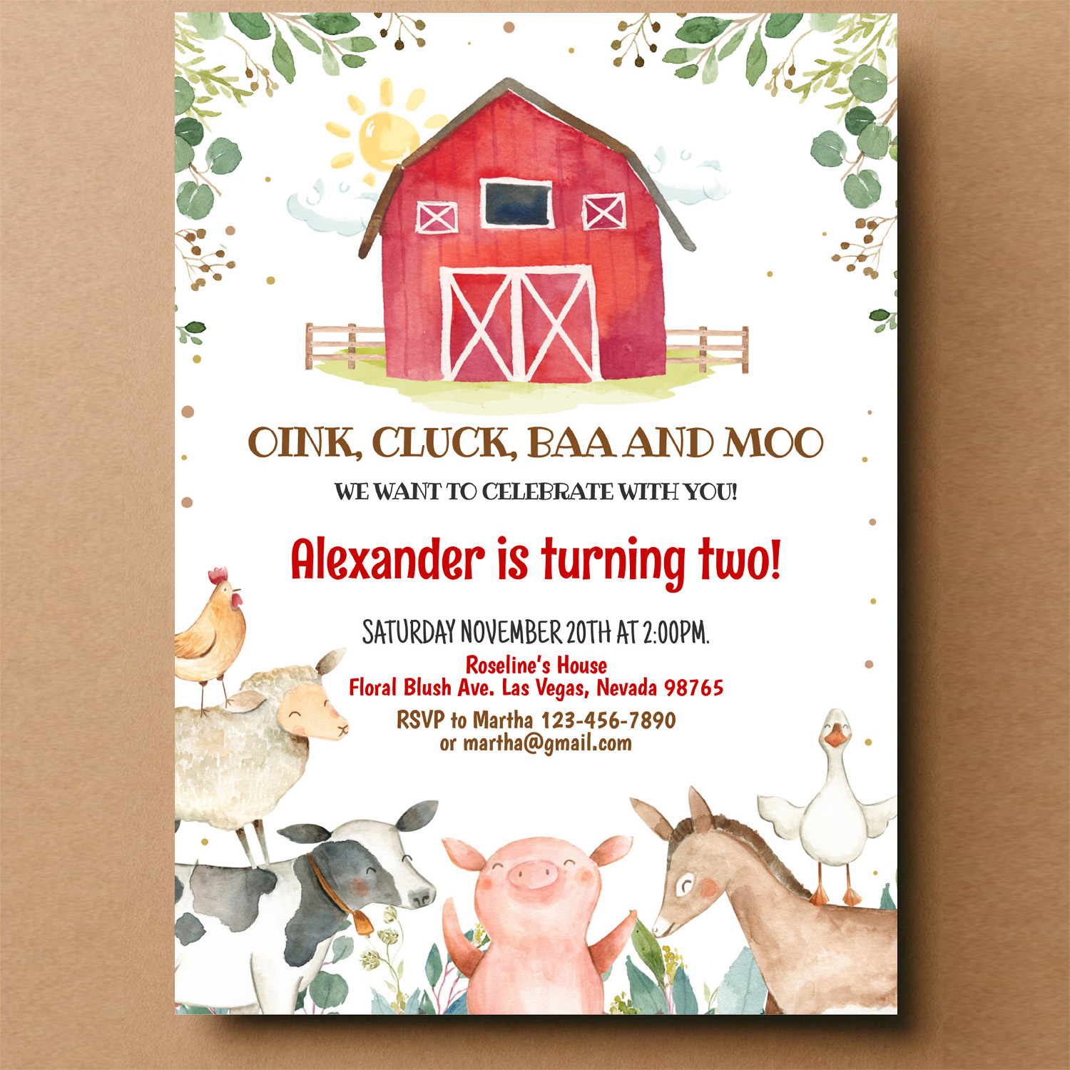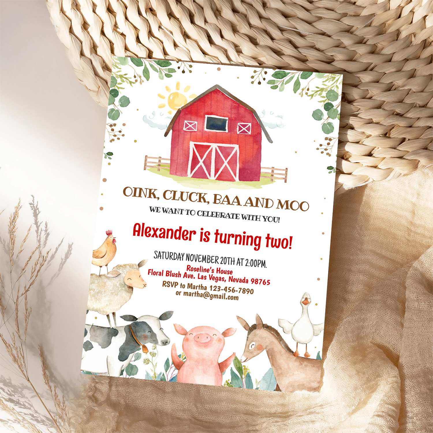 Farm Animals Barnyard Boy Boy Barn Party Birthday Invitation