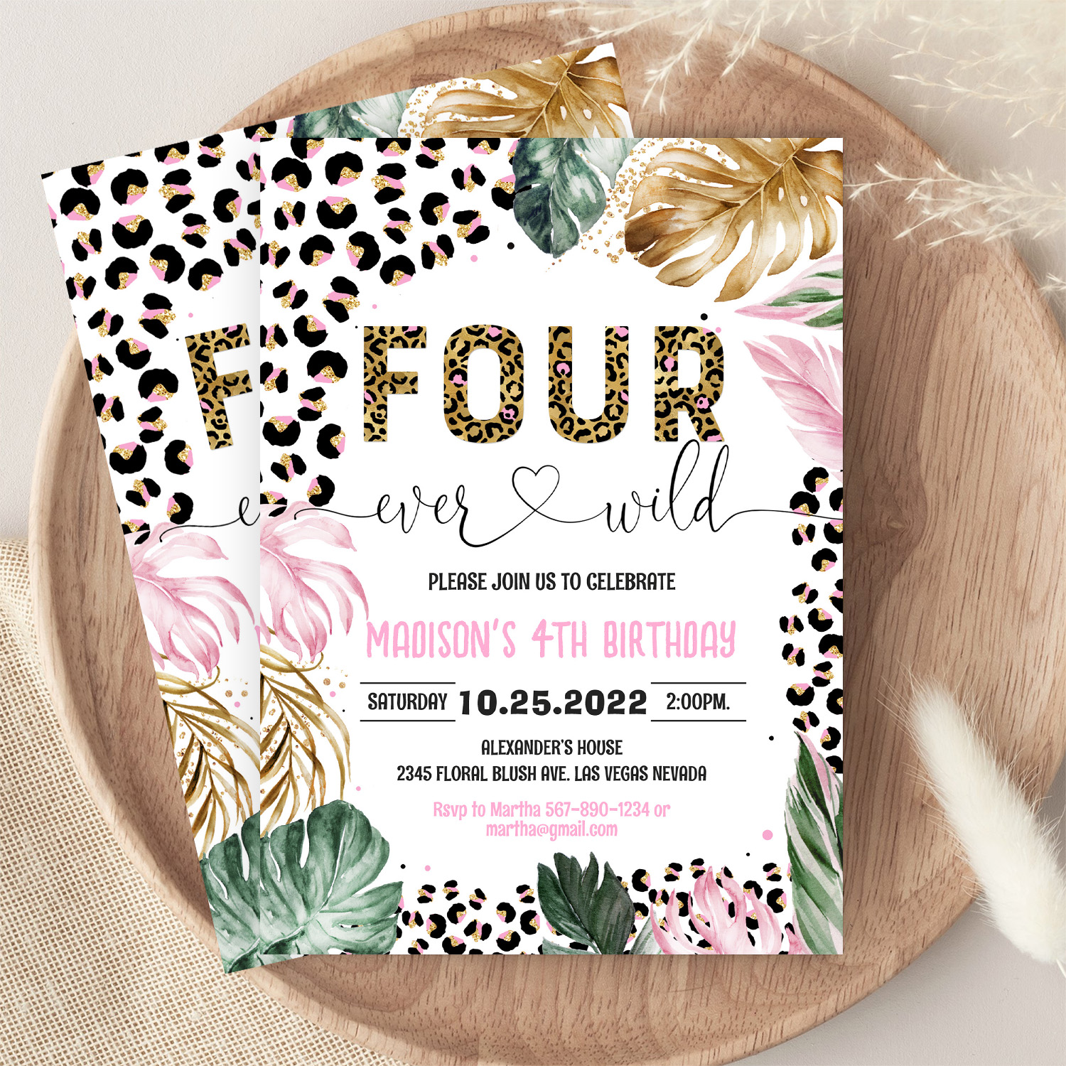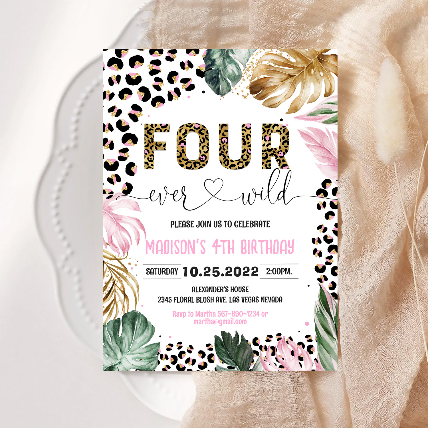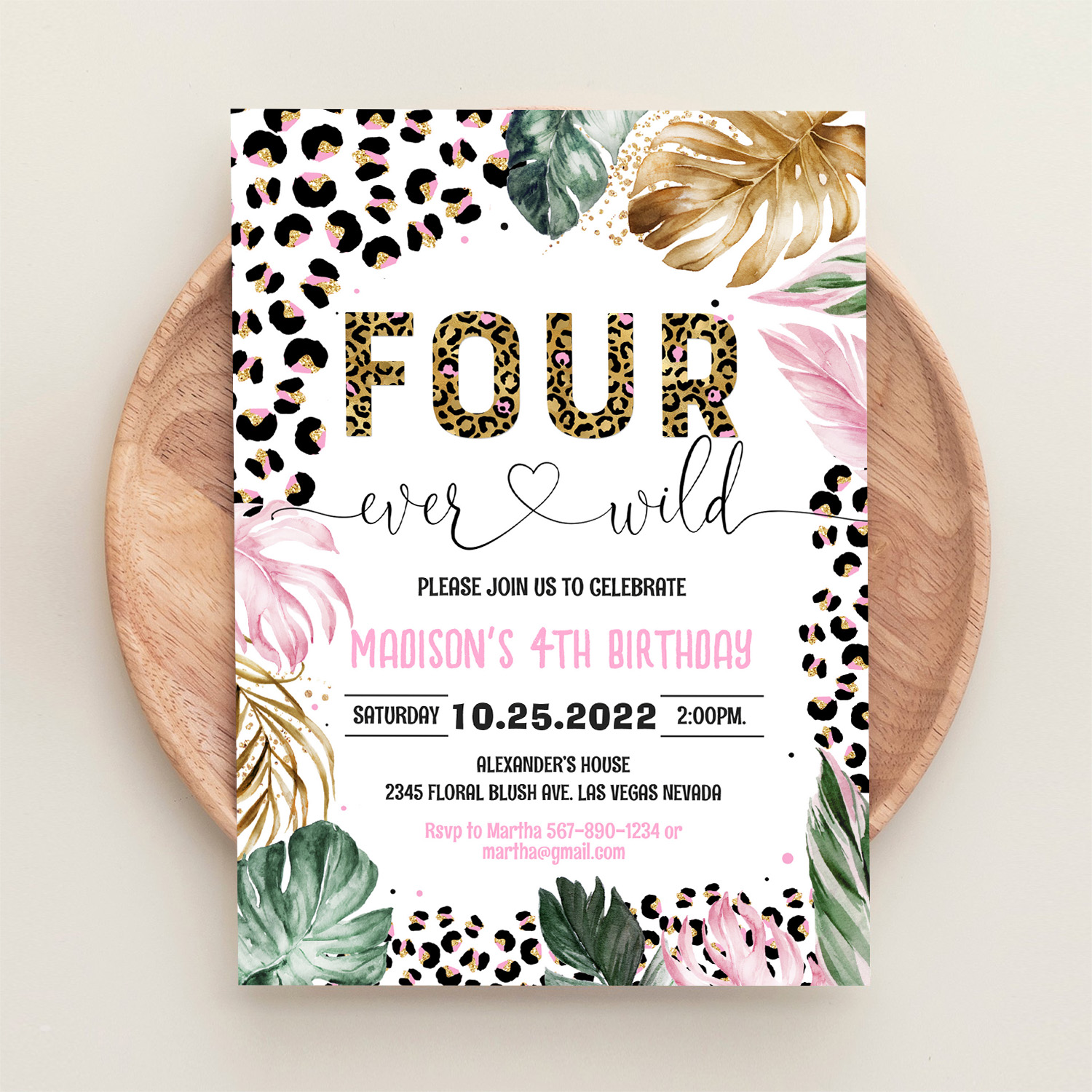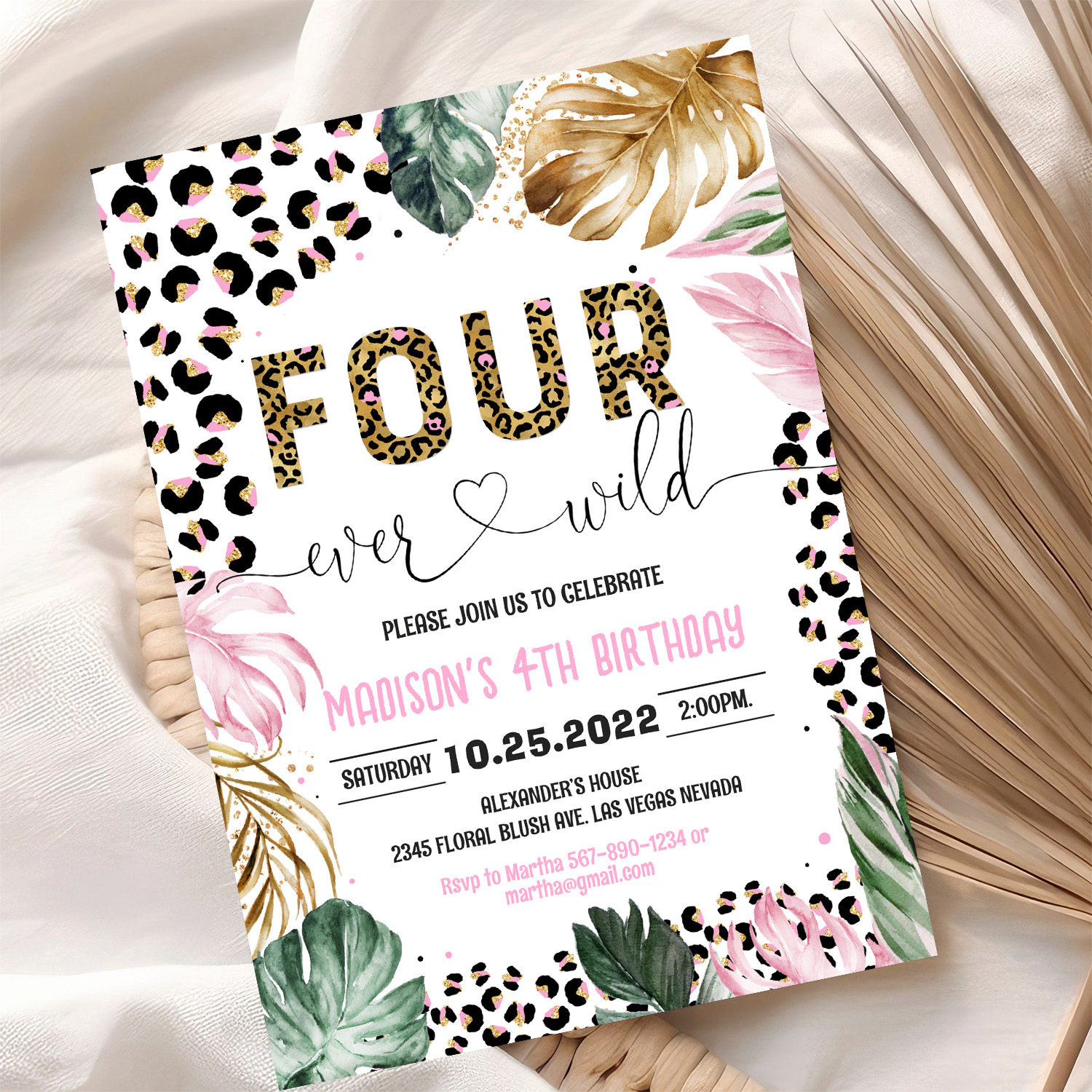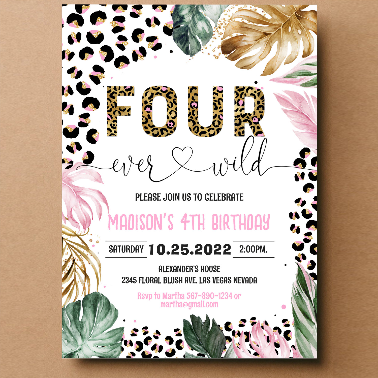 Four Ever Wild Leopard Print Jungle Birthday Invitation