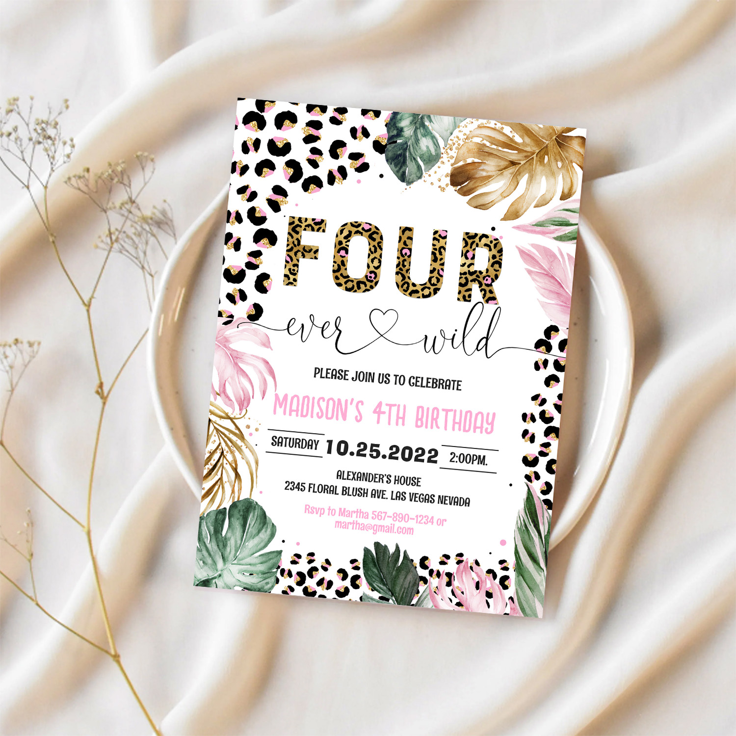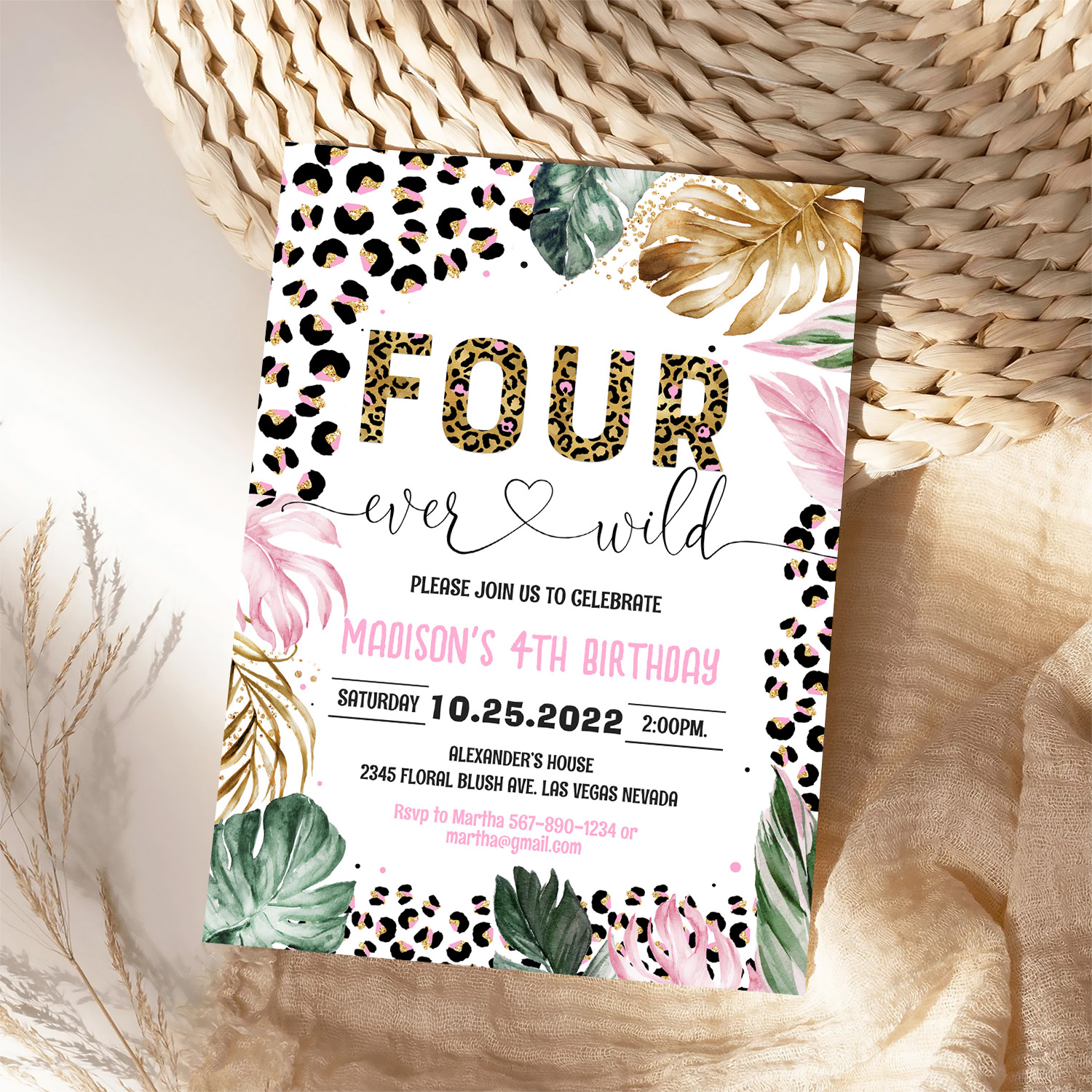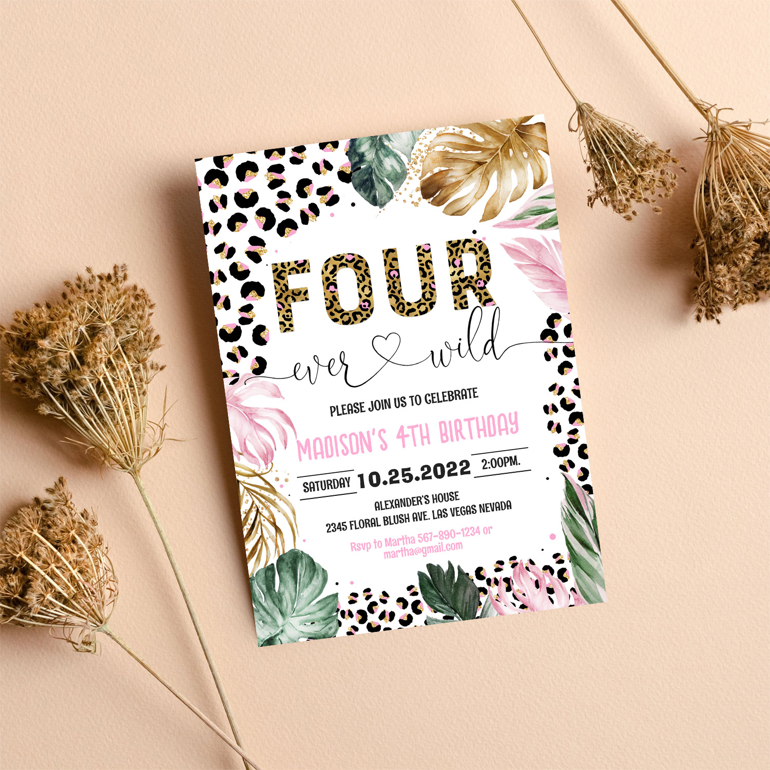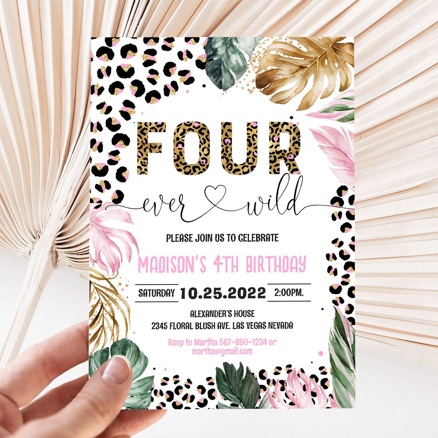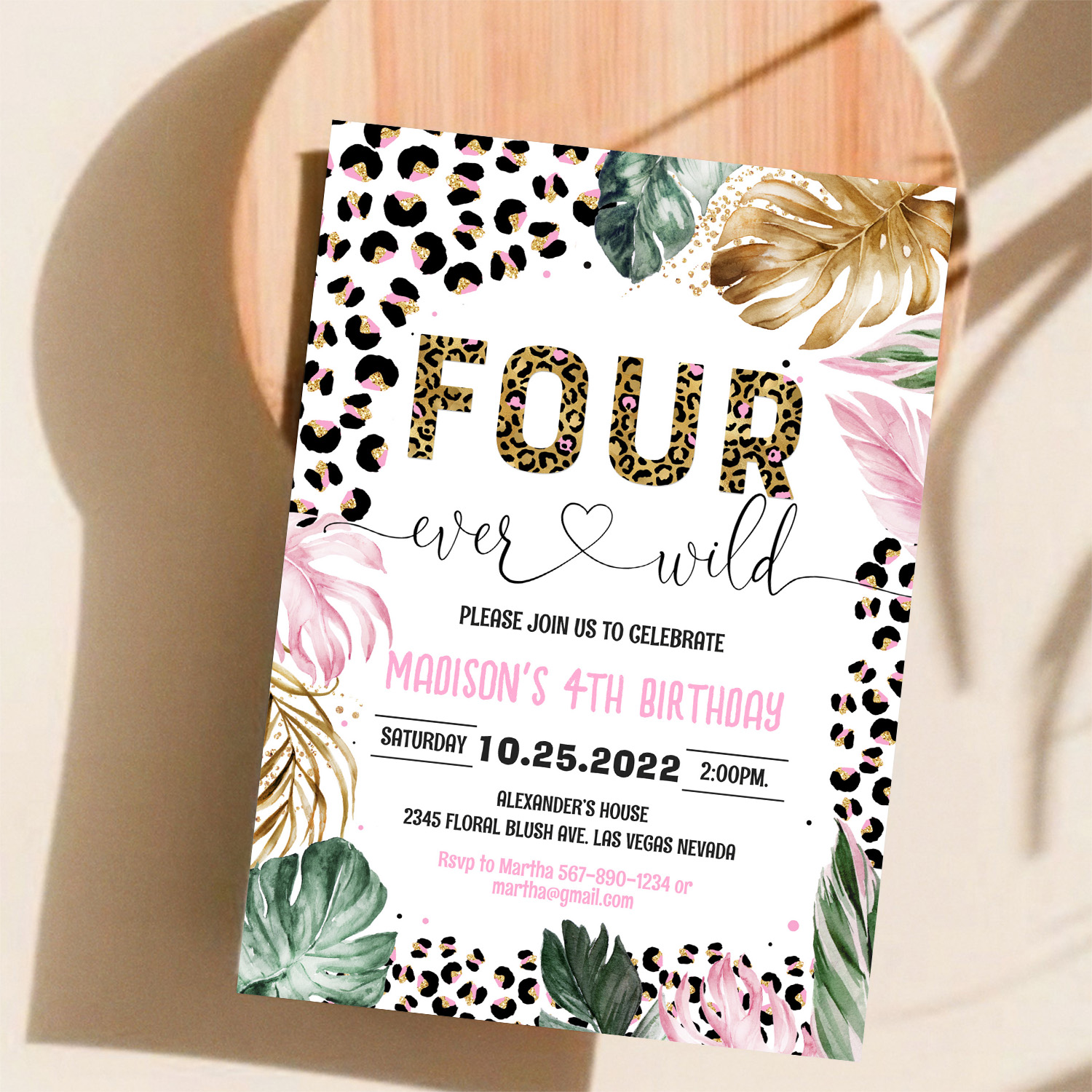 Four Ever Wild Leopard Print Jungle Birthday Invitation