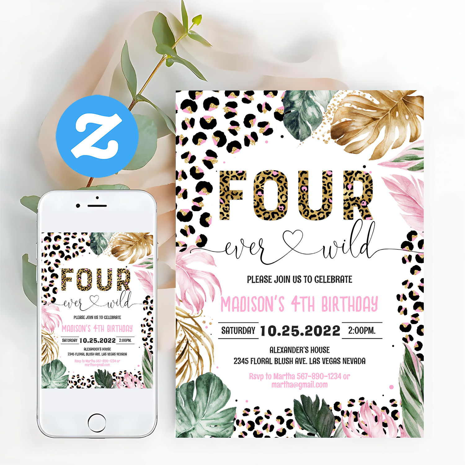 Be the first to review “Four Ever Wild Leopard Print Jungle Birthday Invitation”