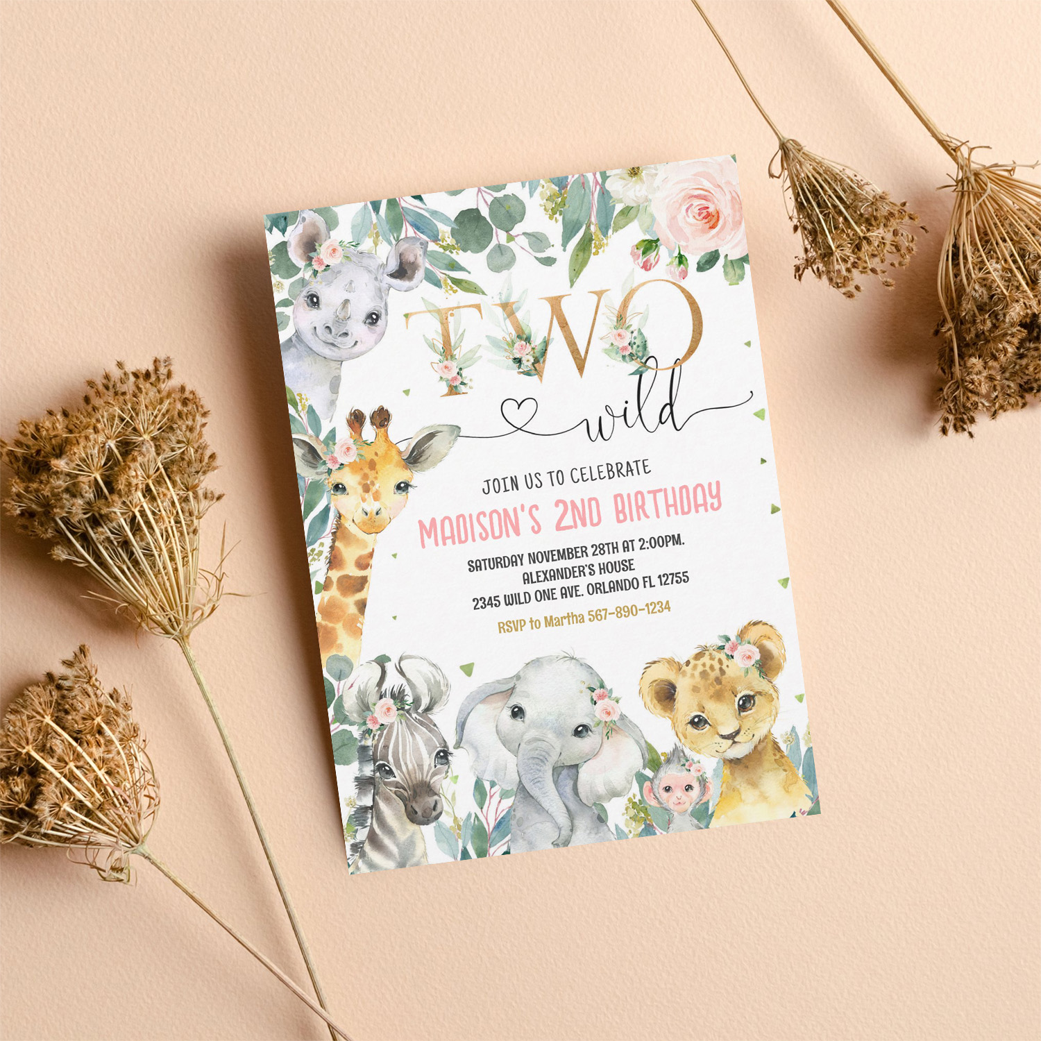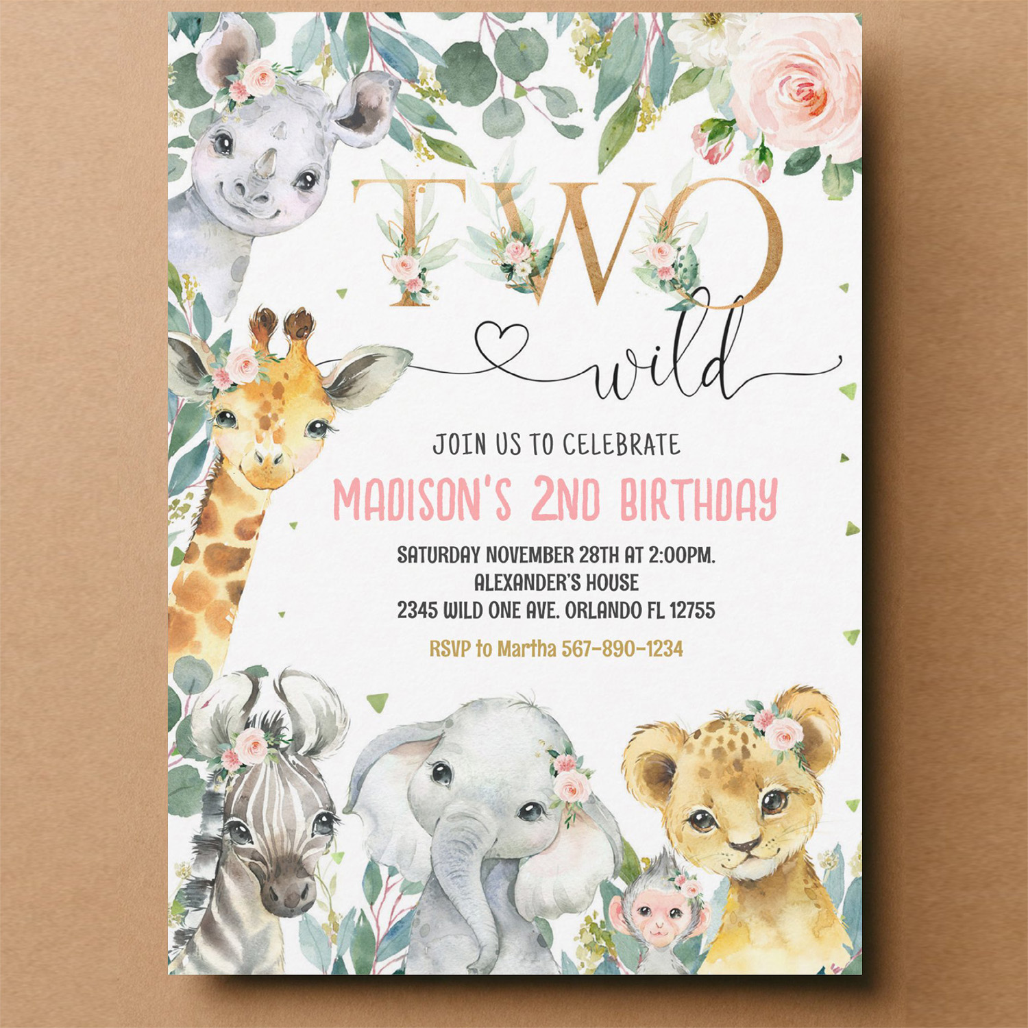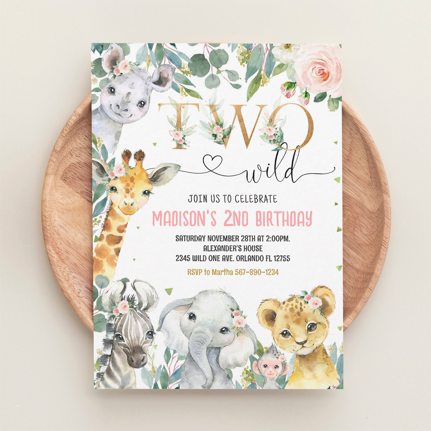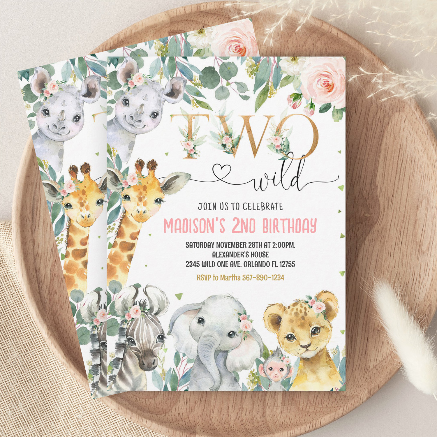 Be the first to review “Girl Two Wild 2nd Gold Jungle Animals Birthday Invitation”