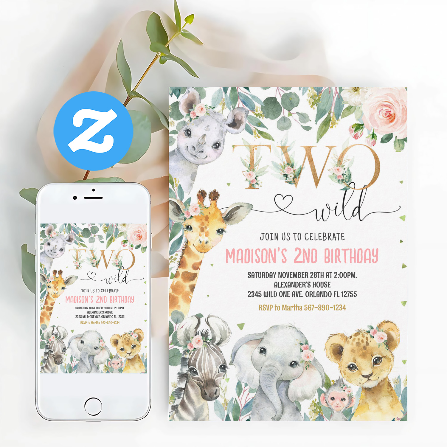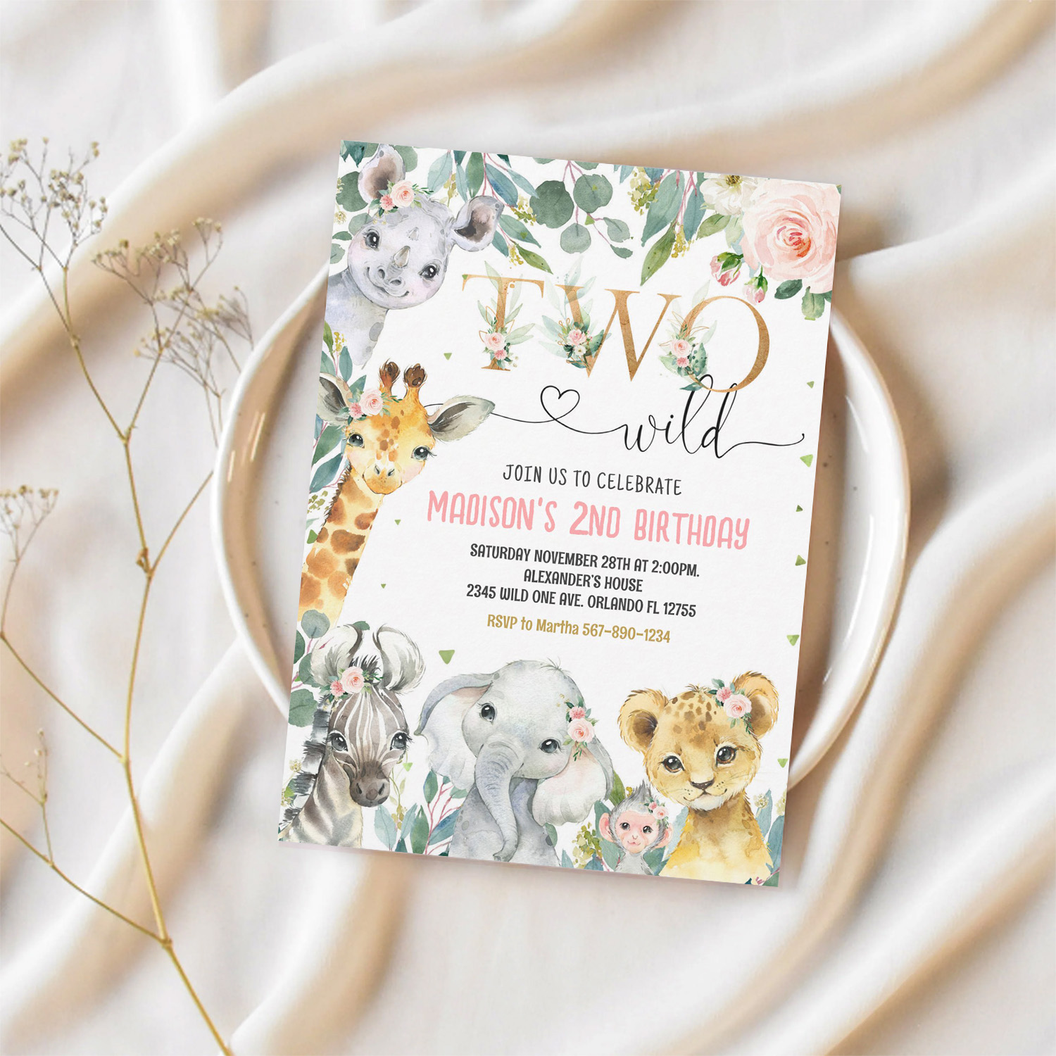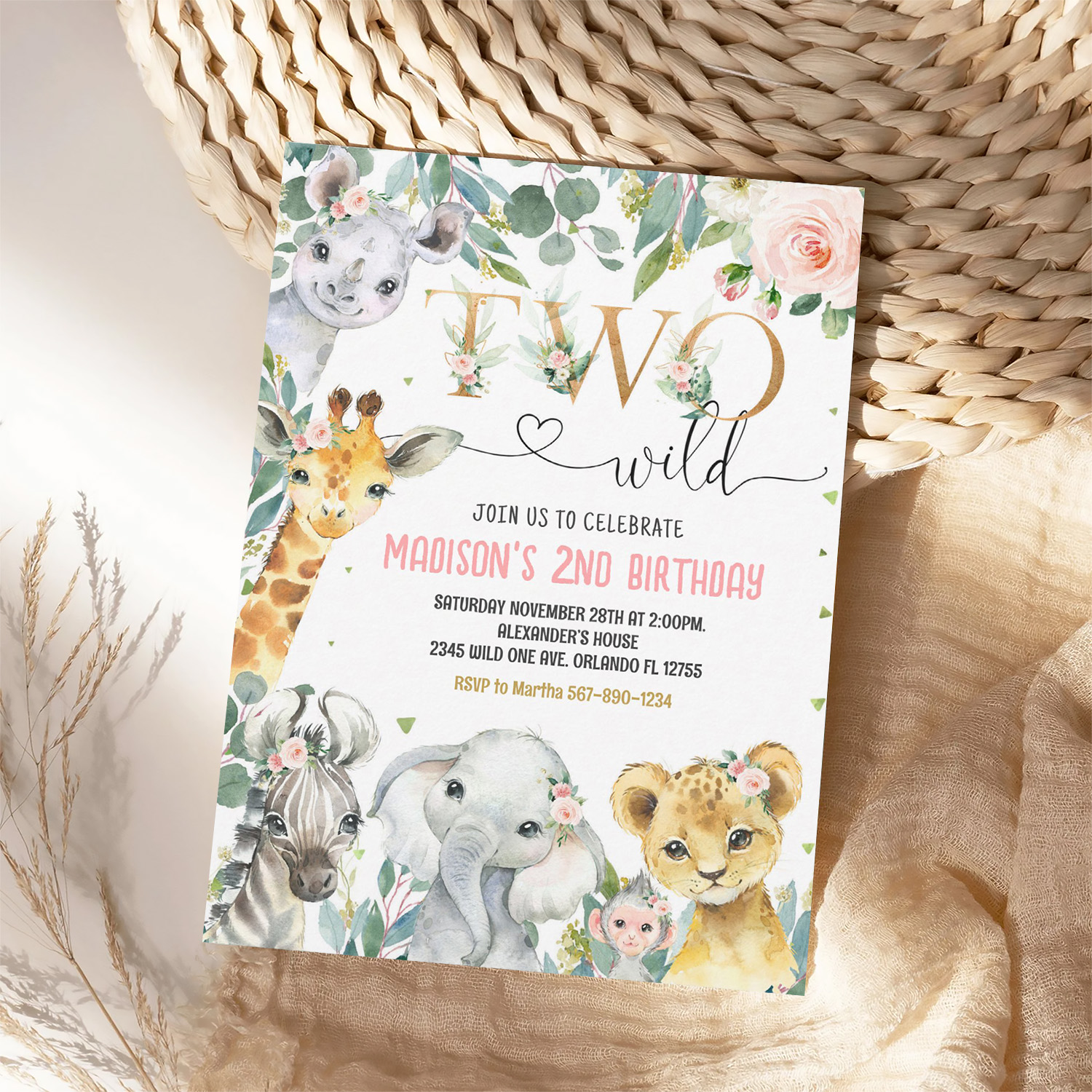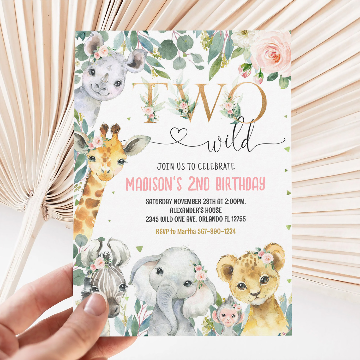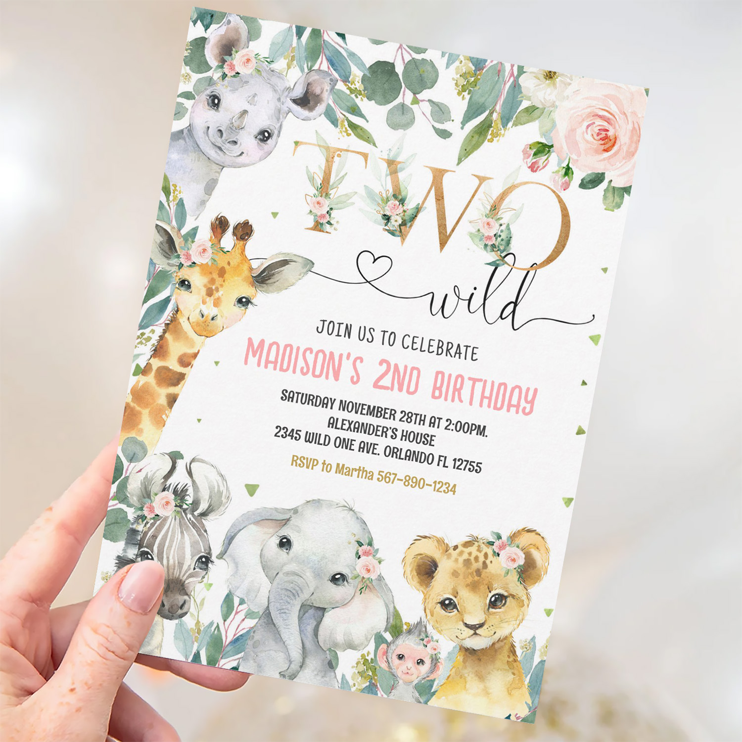 Be the first to review “Girl Two Wild 2nd Gold Jungle Animals Birthday Invitation”