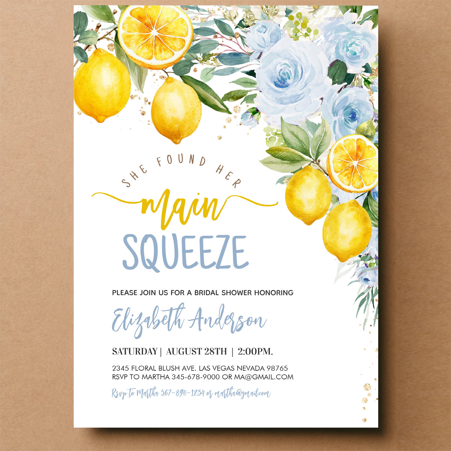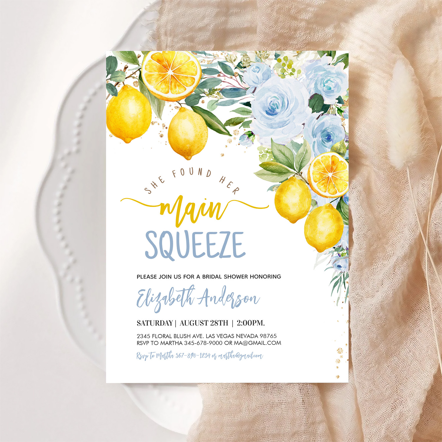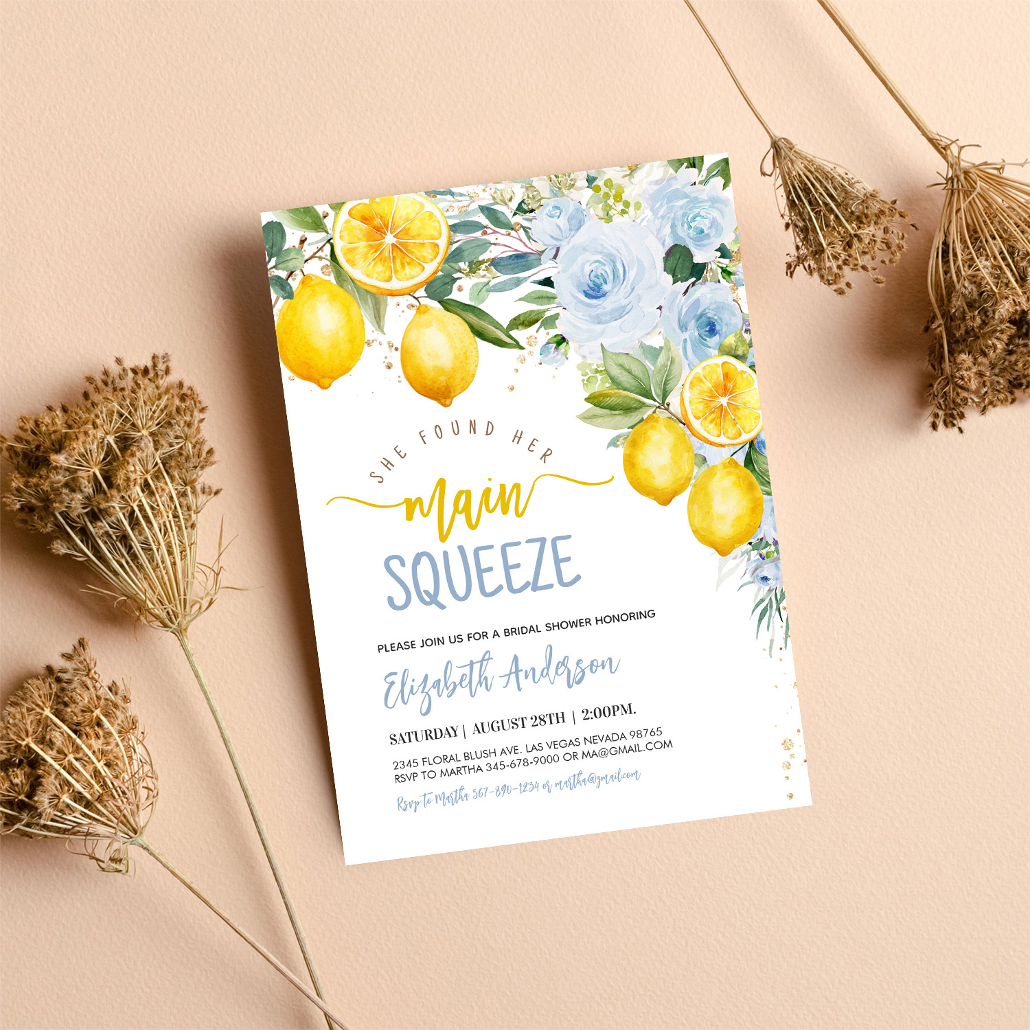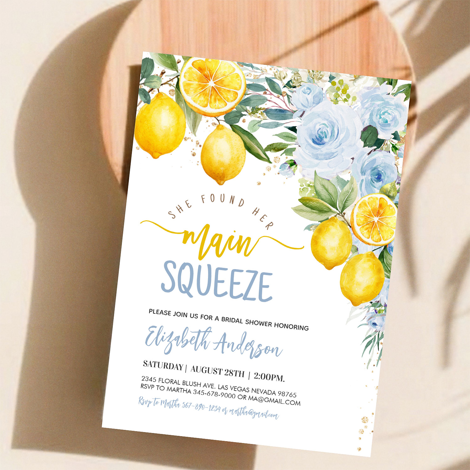 Main Squeeze Lemon Citrus Blue Bridal Shower Invitation