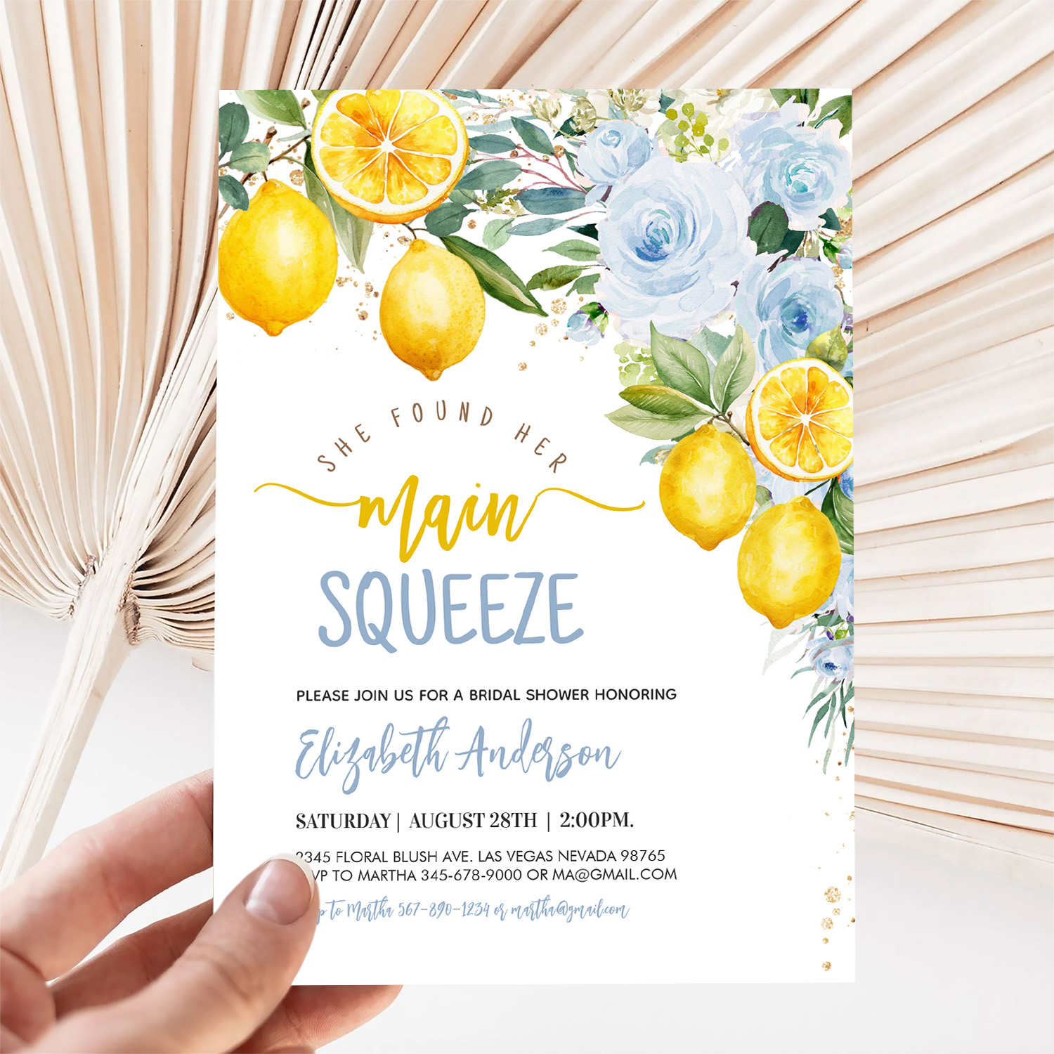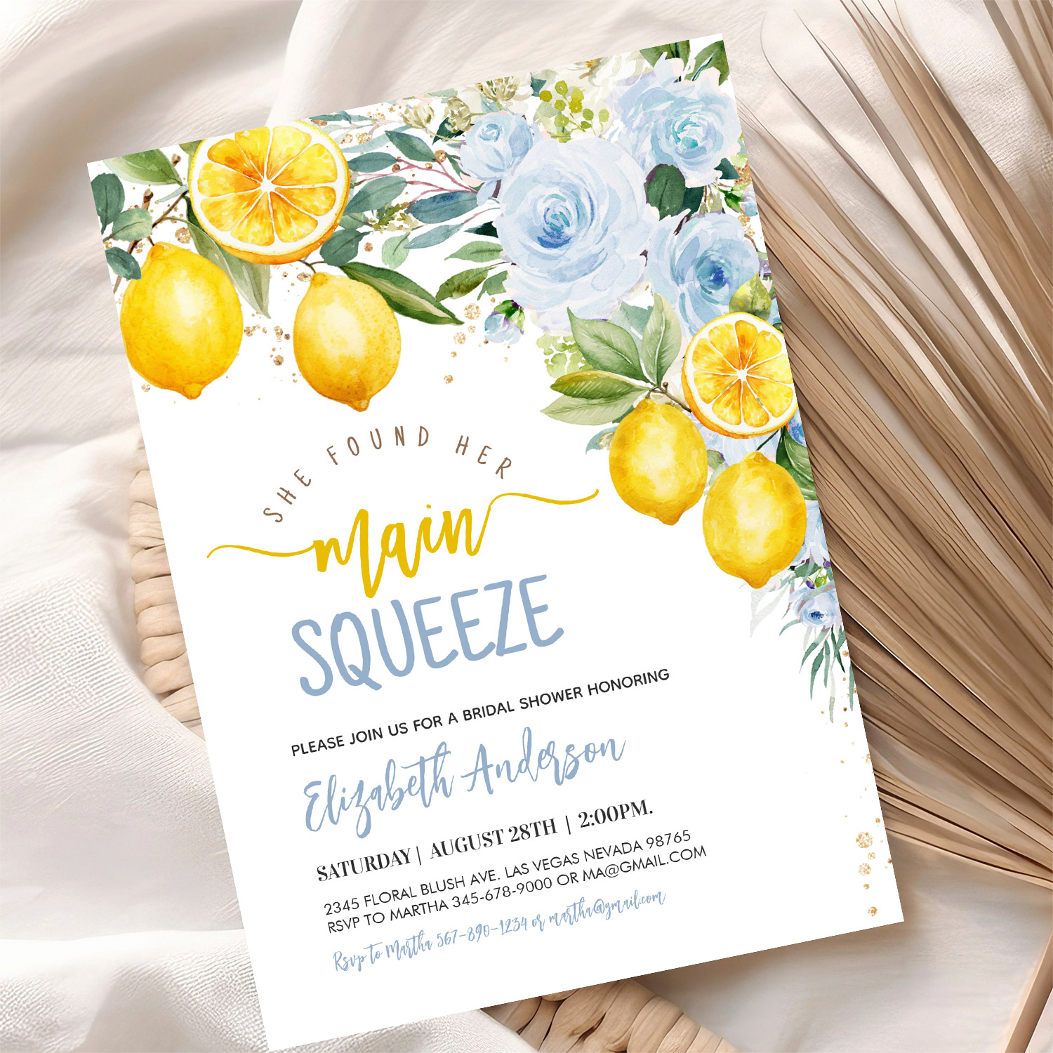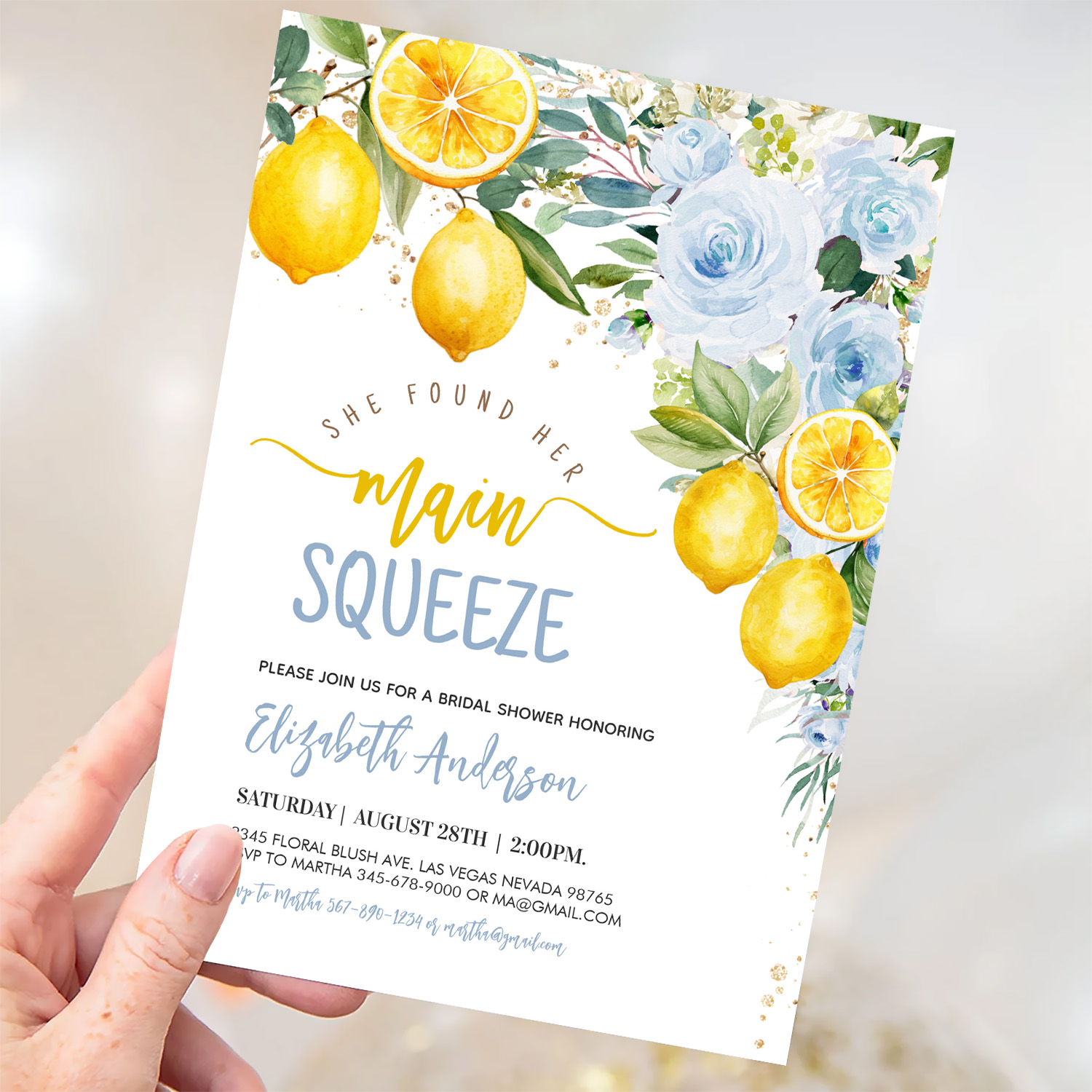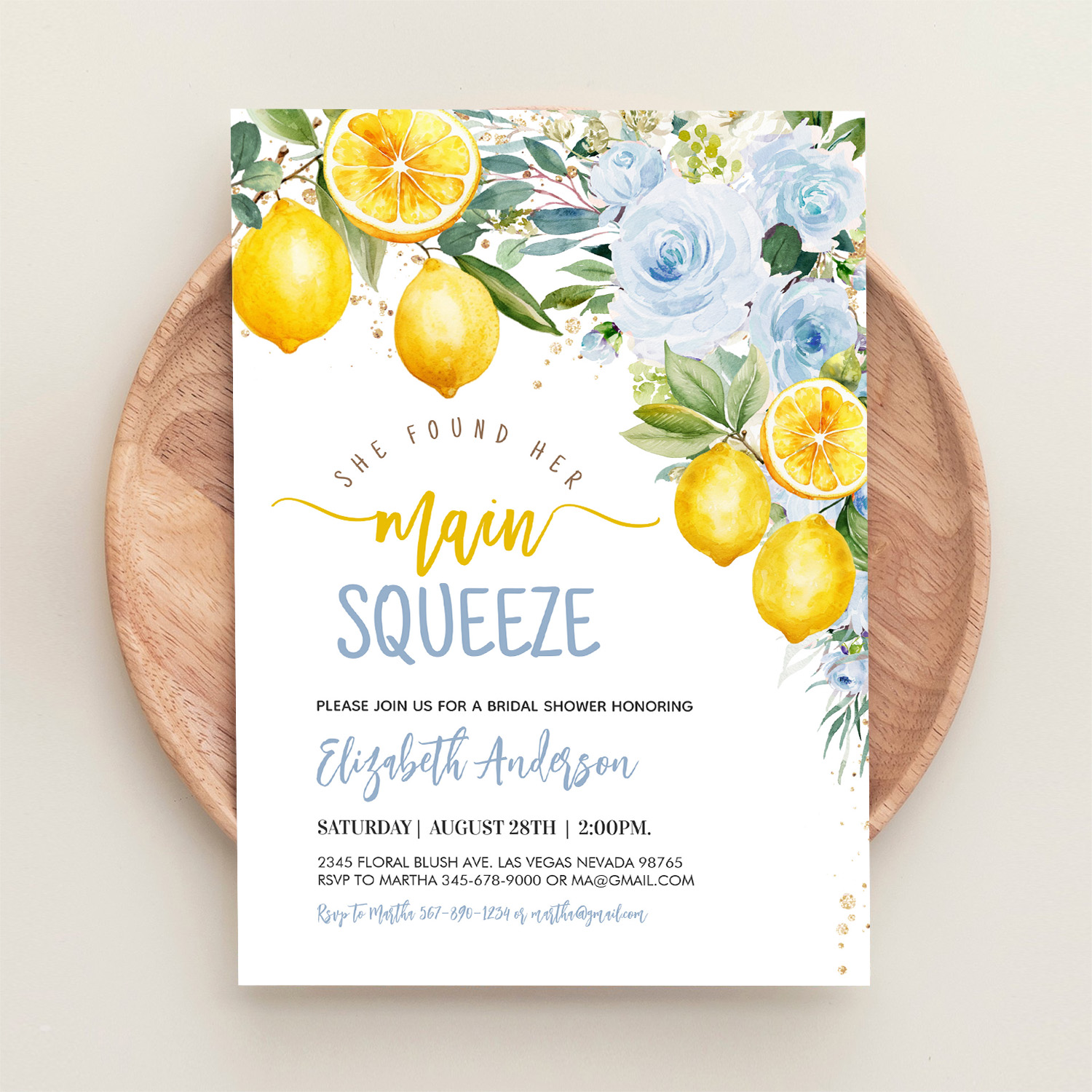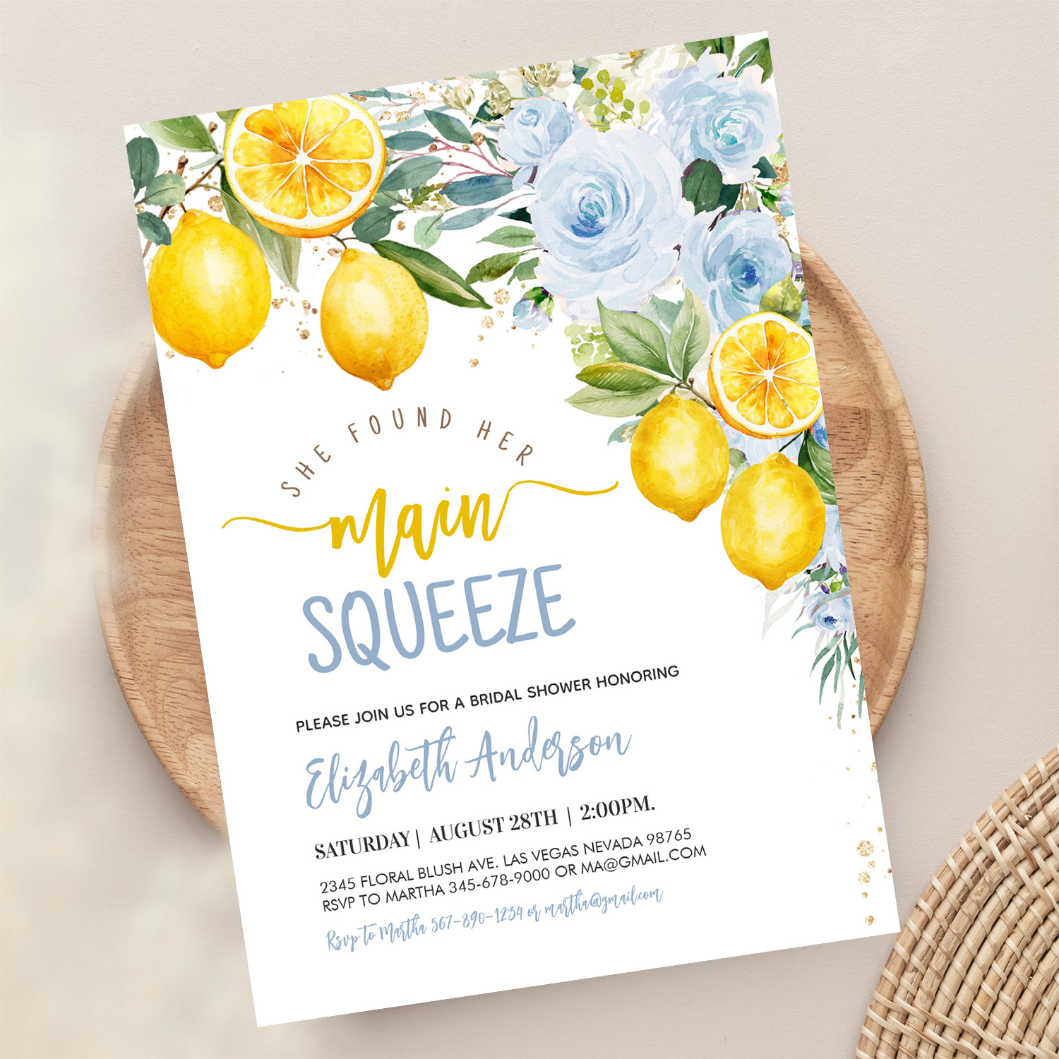 Main Squeeze Lemon Citrus Blue Bridal Shower Invitation