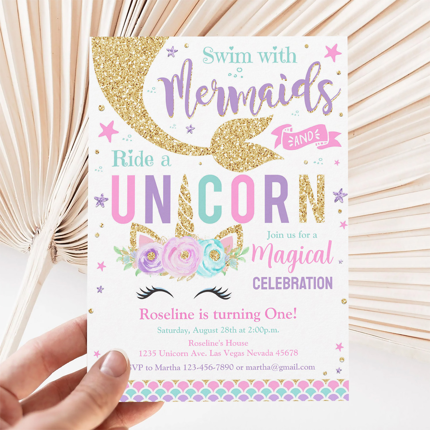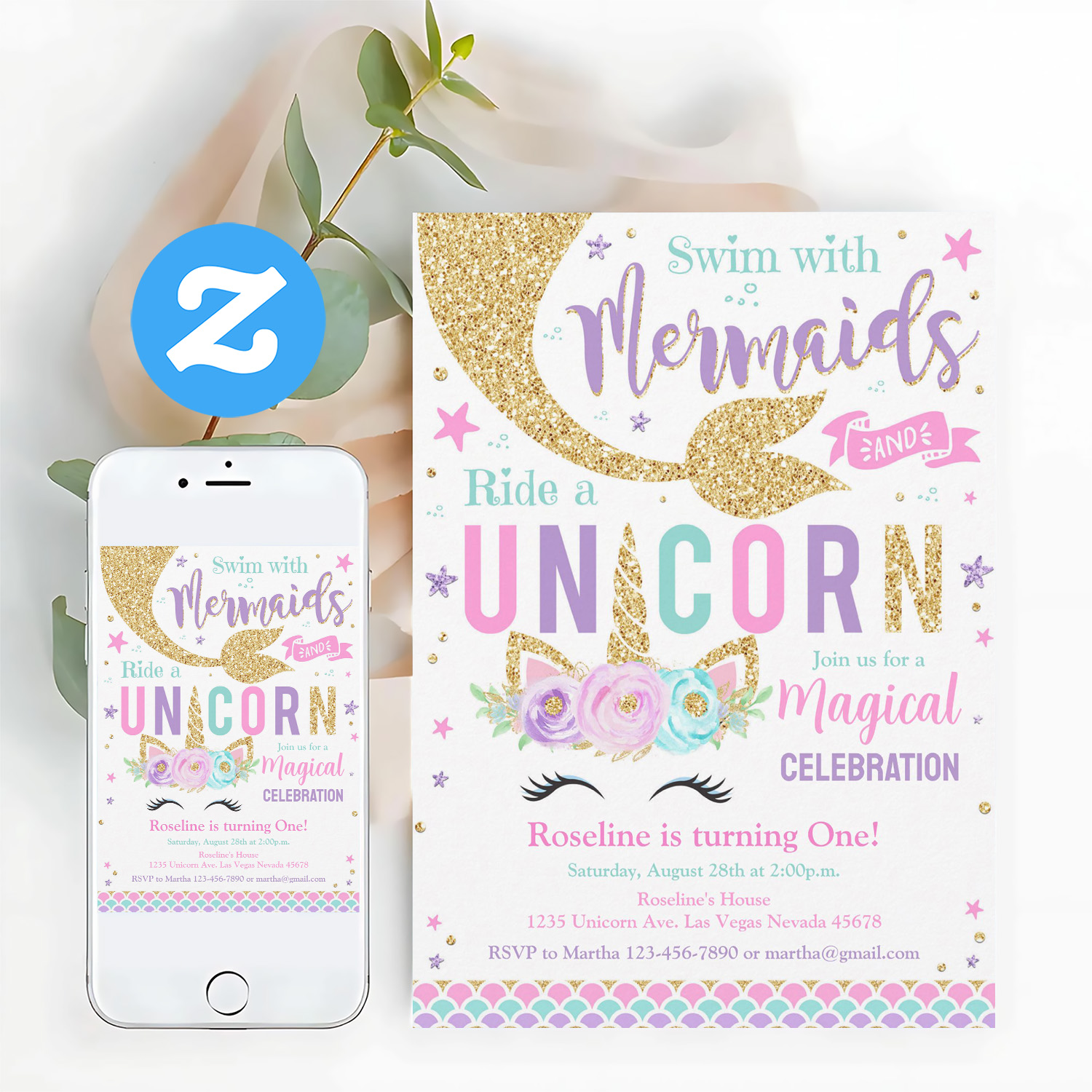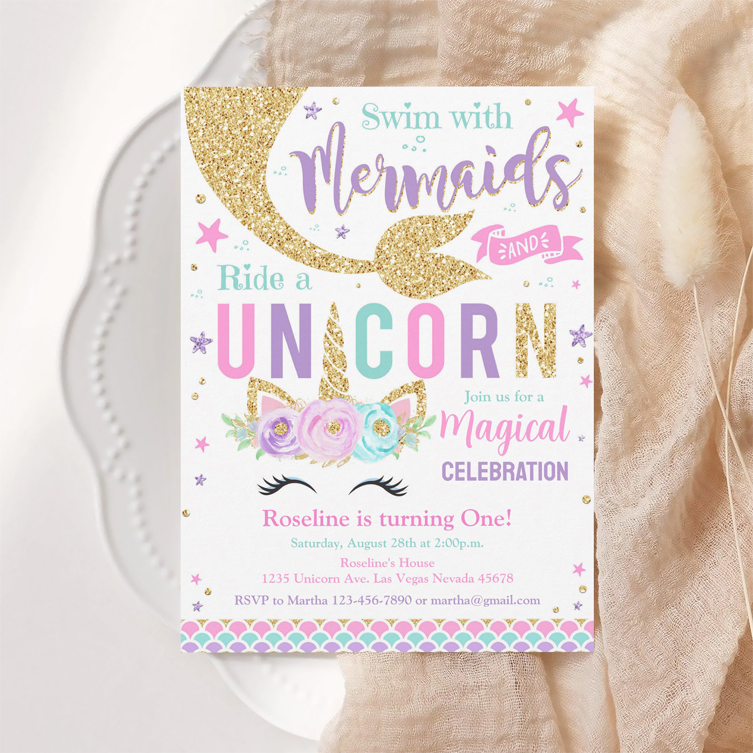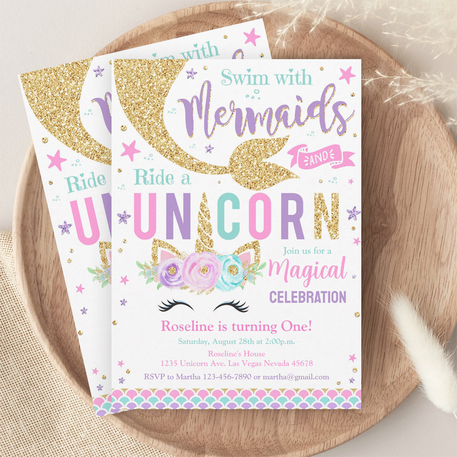 Be the first to review “Mermaid And Unicorn Magical Birthday Invitation”