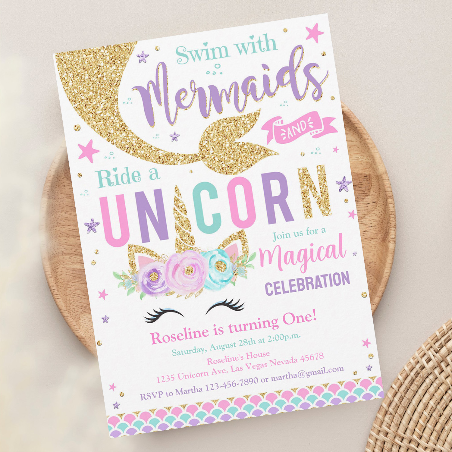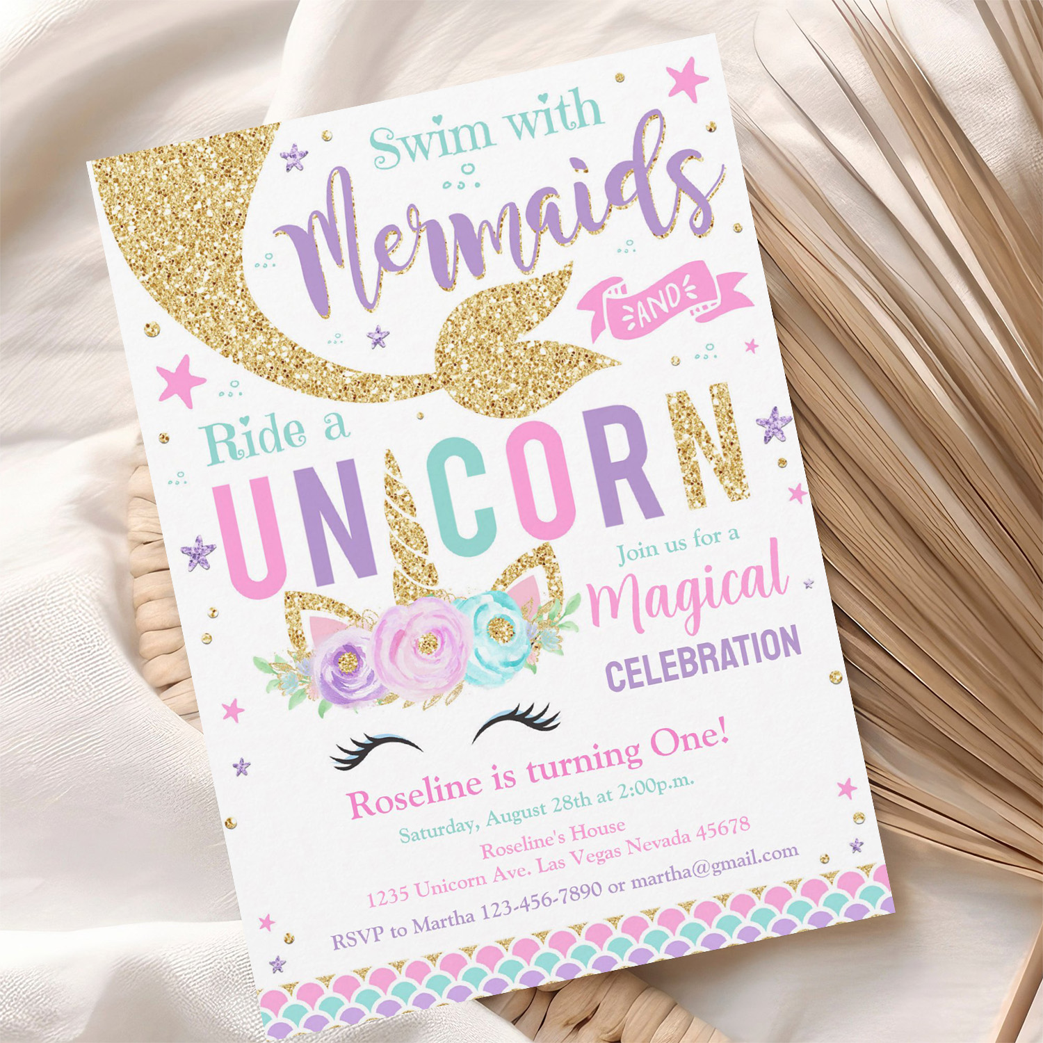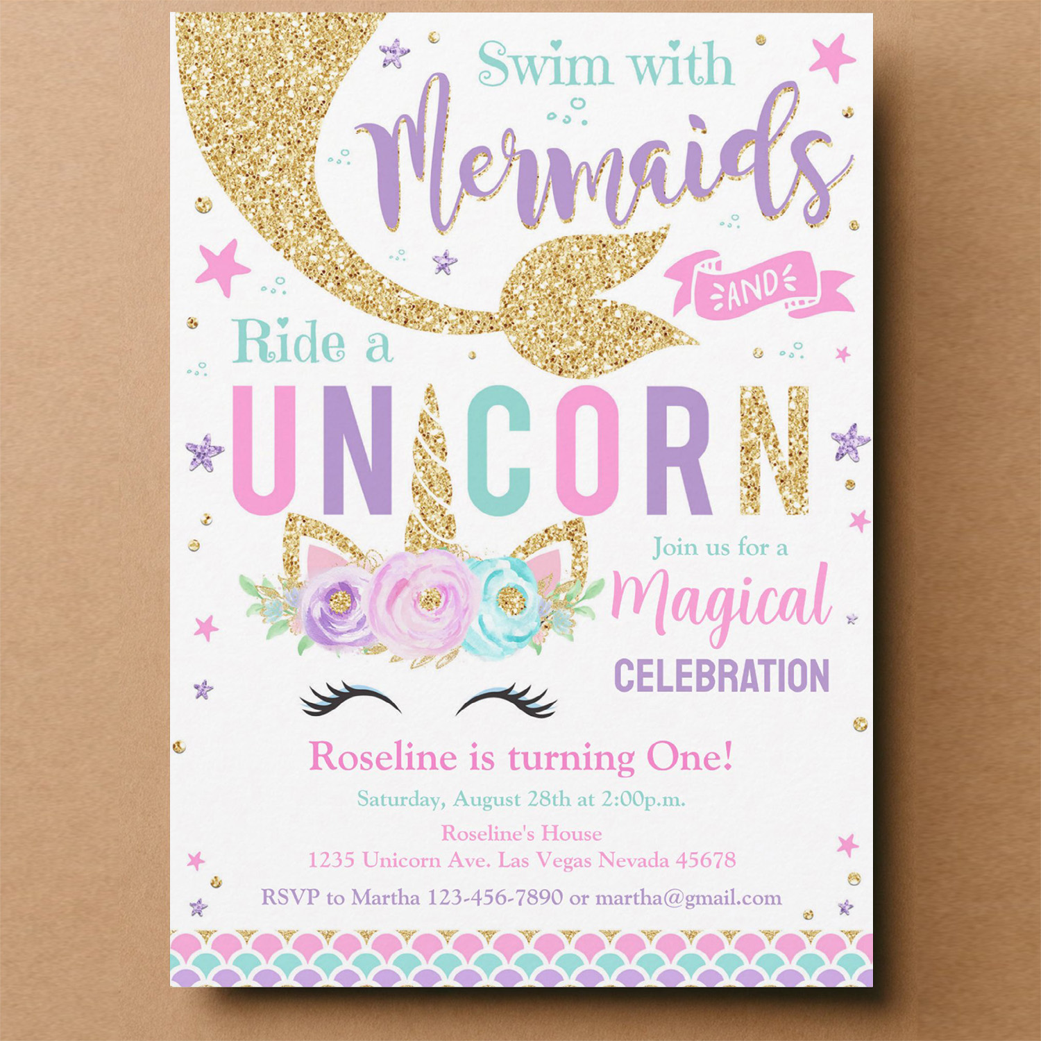 Mermaid And Unicorn Magical Birthday Invitation