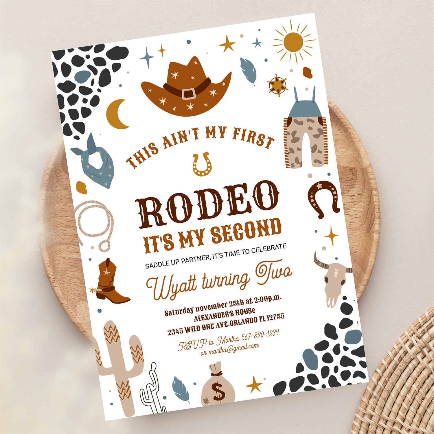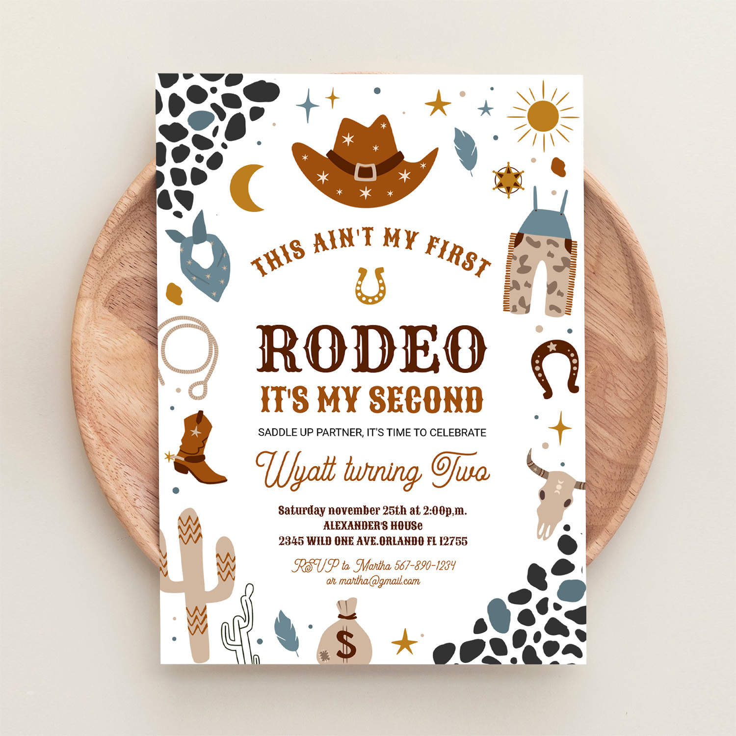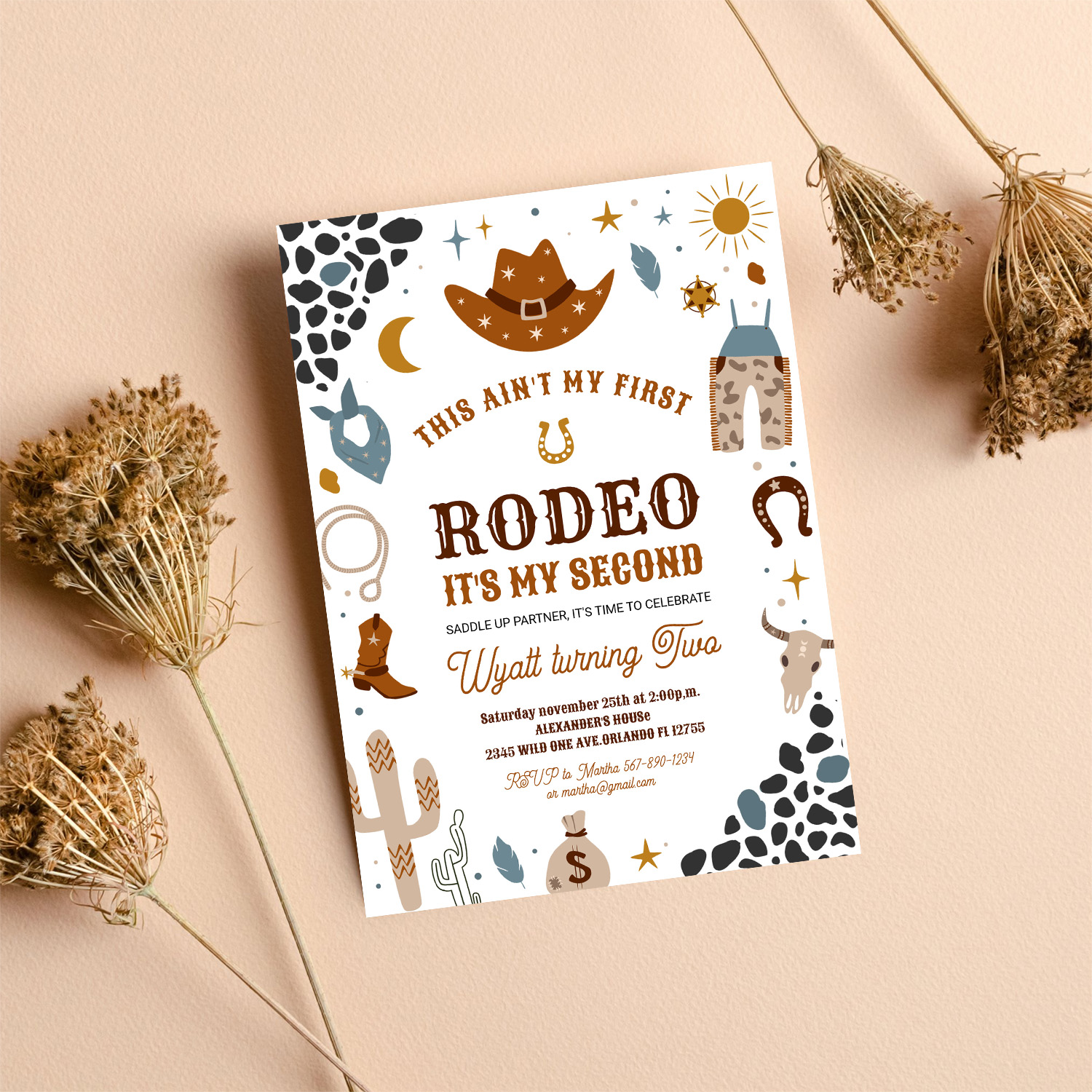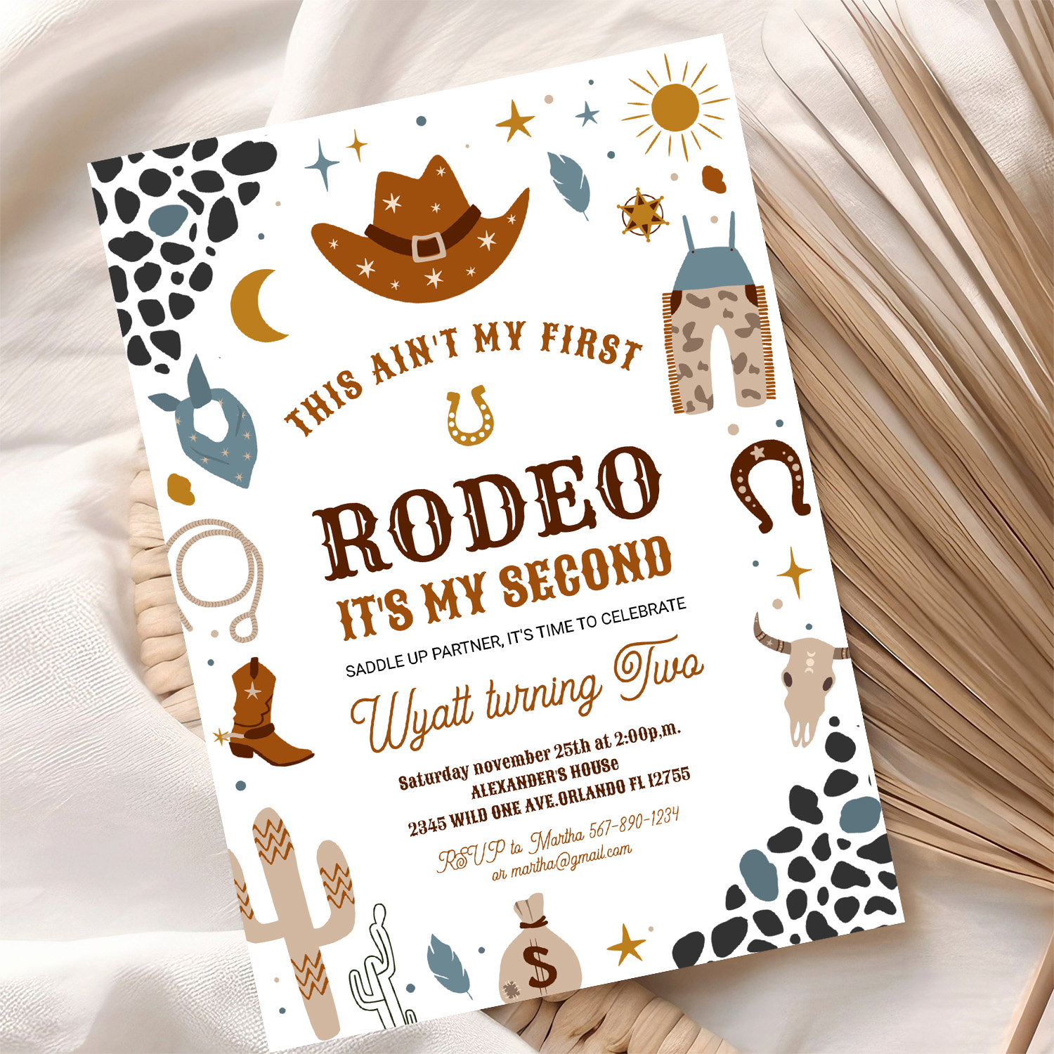 My Second Rodeo Cowboy Ranch Southwestern Birthday Invitation