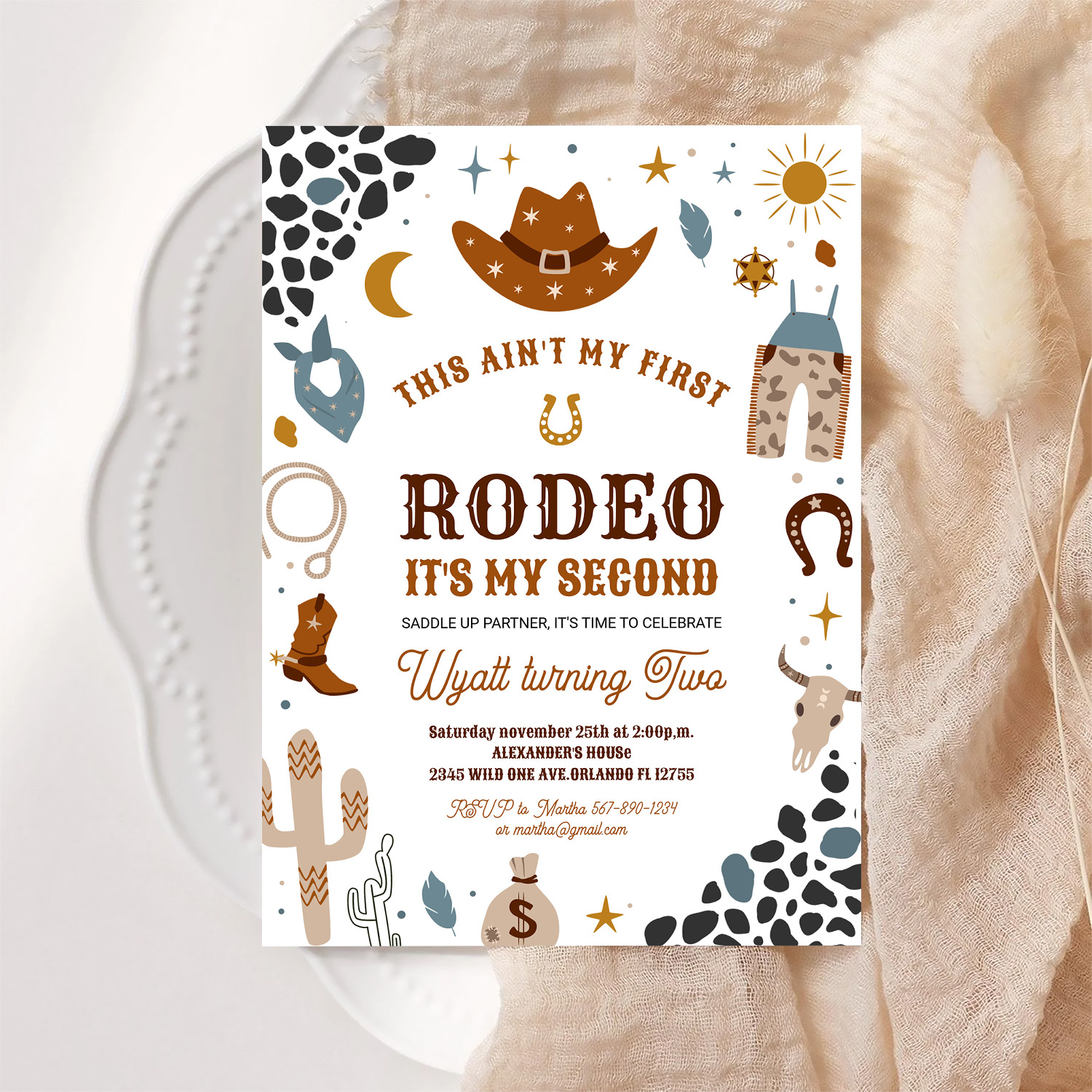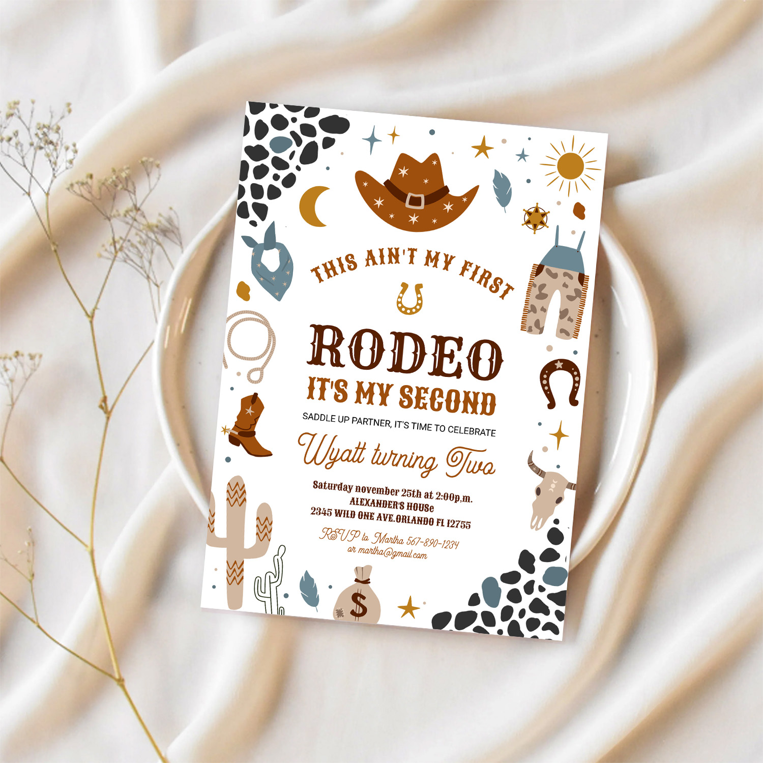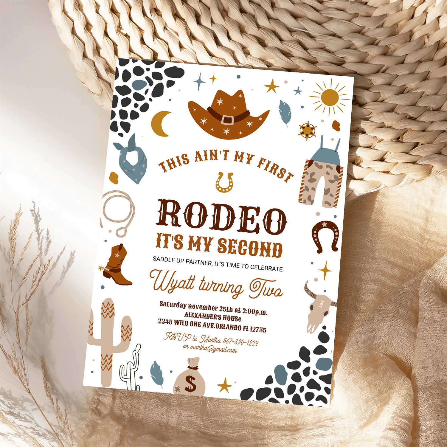 My Second Rodeo Cowboy Ranch Southwestern Birthday Invitation