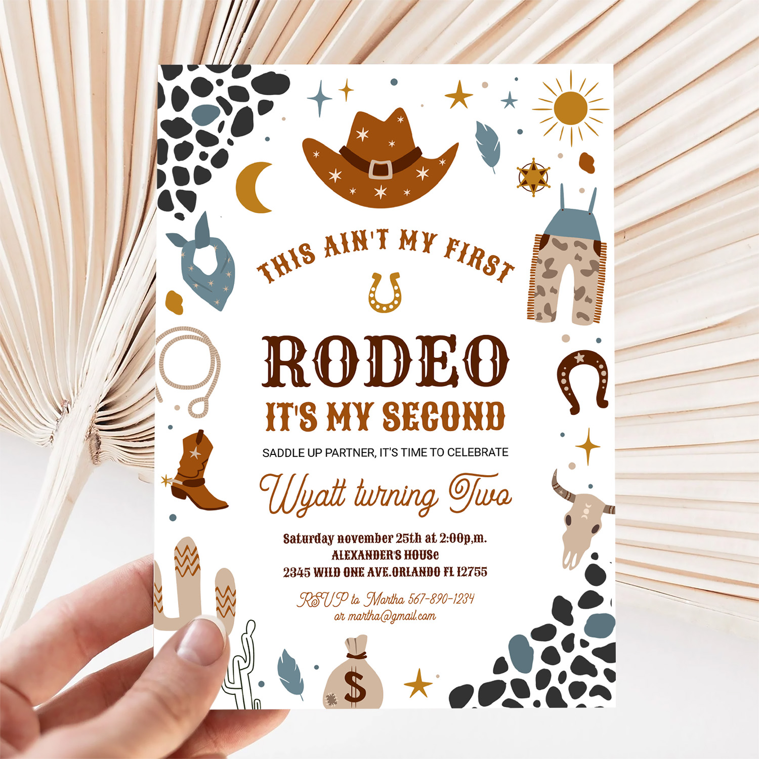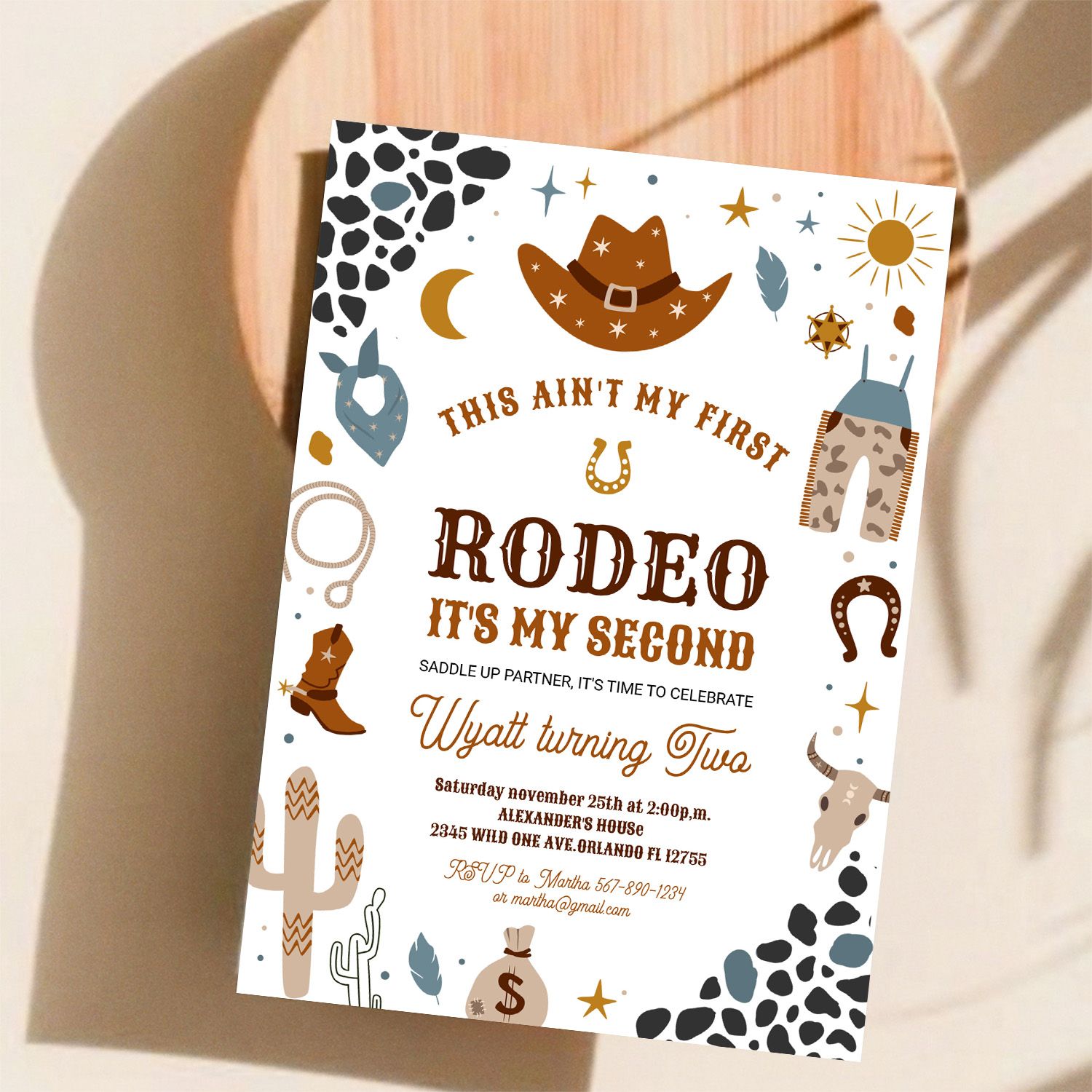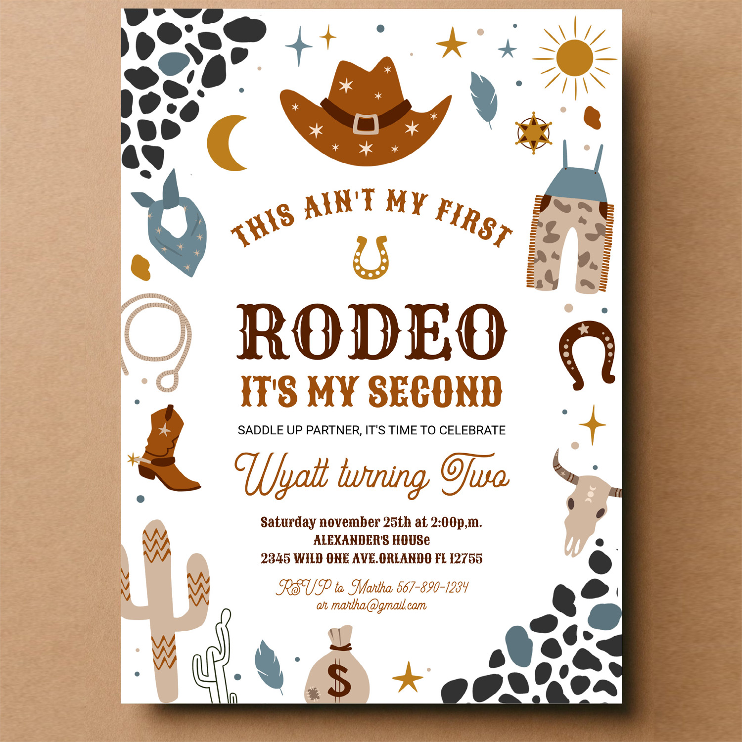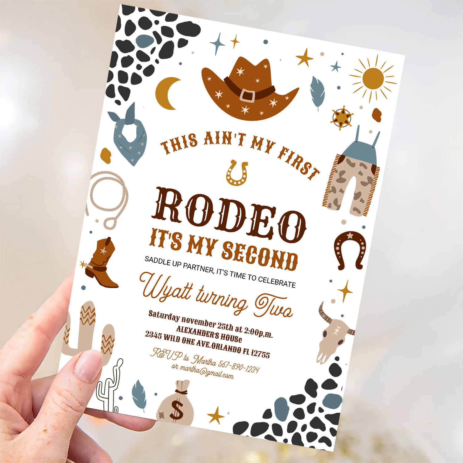 My Second Rodeo Cowboy Ranch Southwestern Birthday Invitation