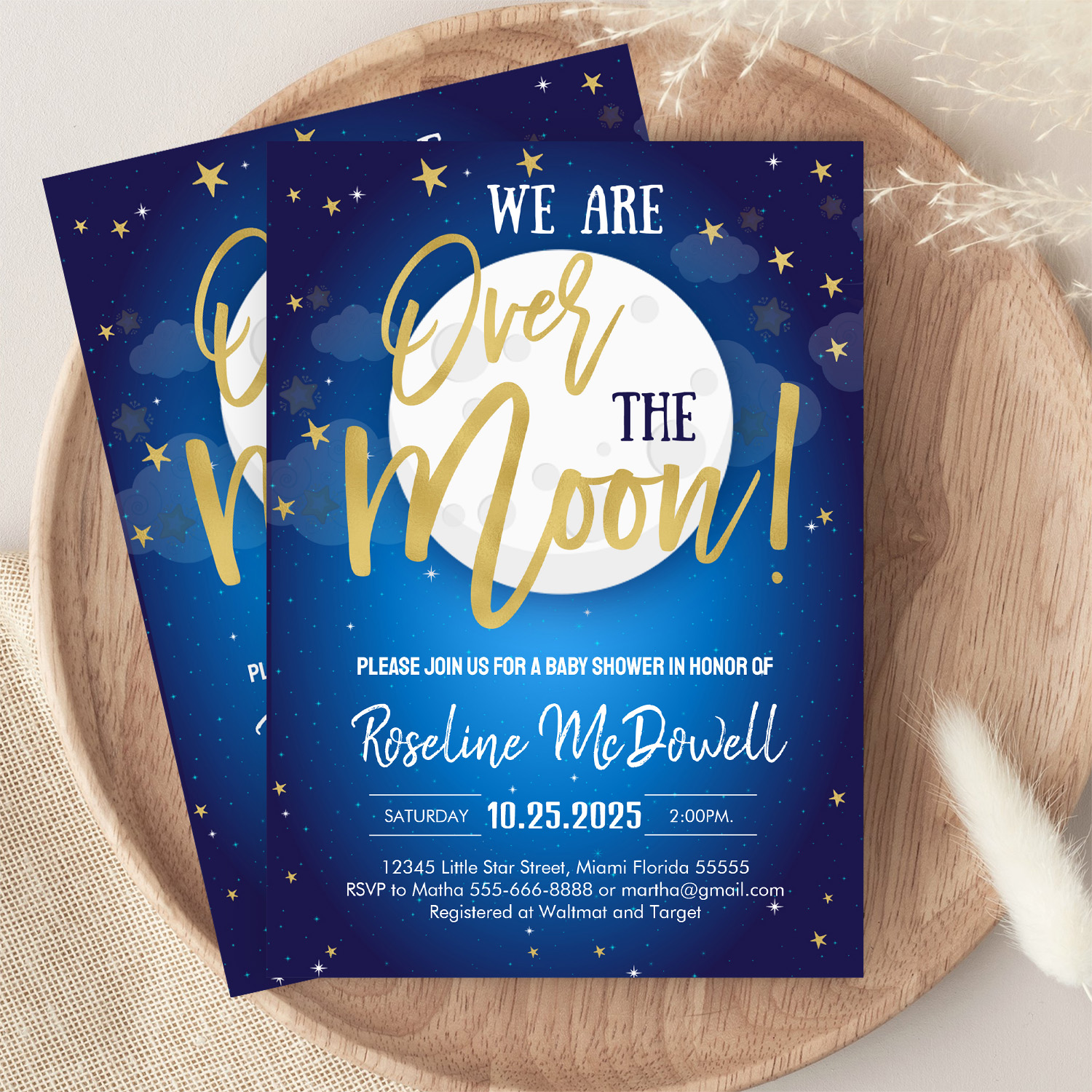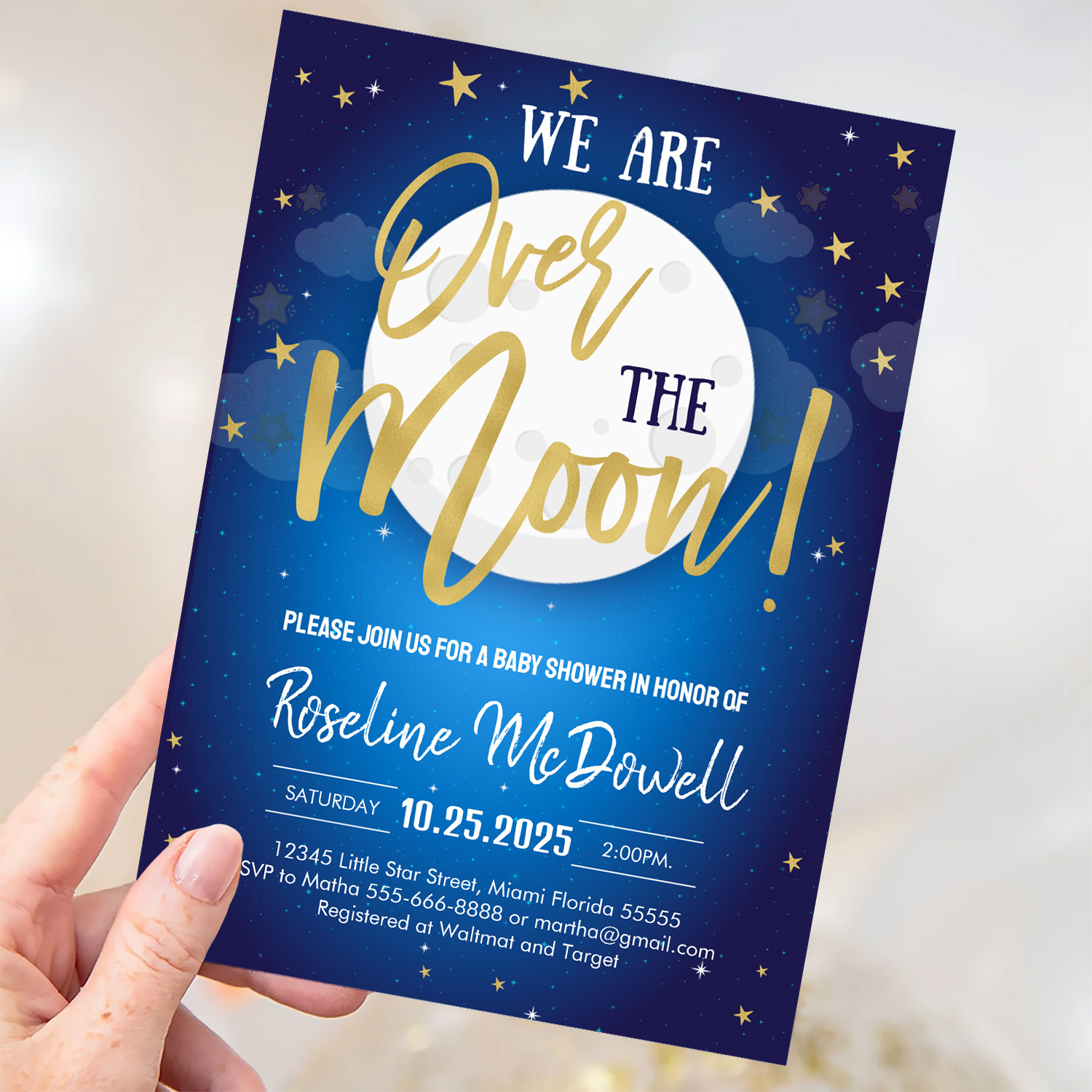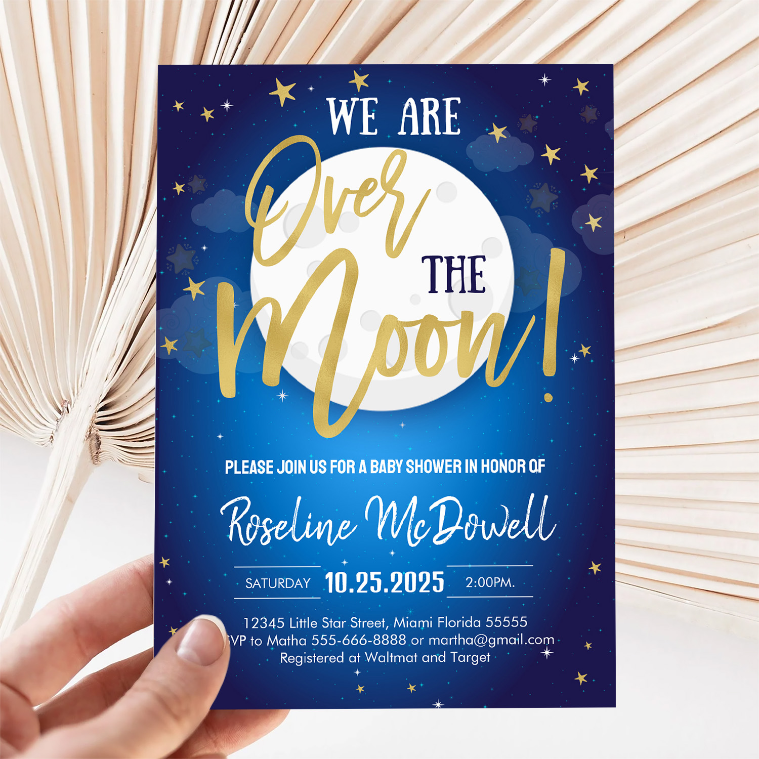 Over The Moon Galaxy Space Themed Baby Shower Invitation
