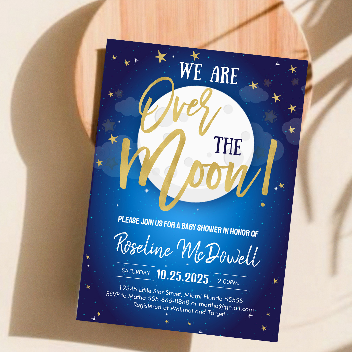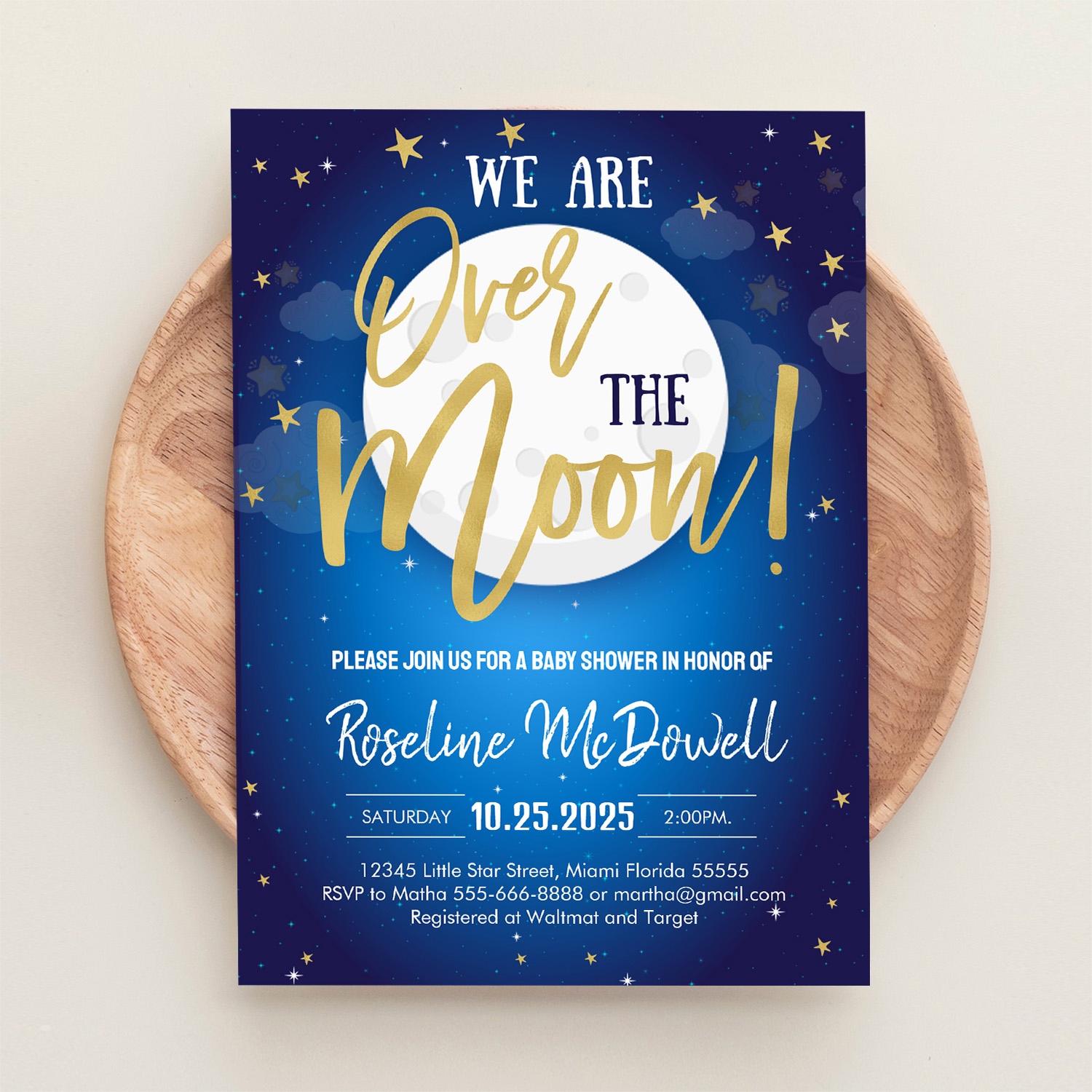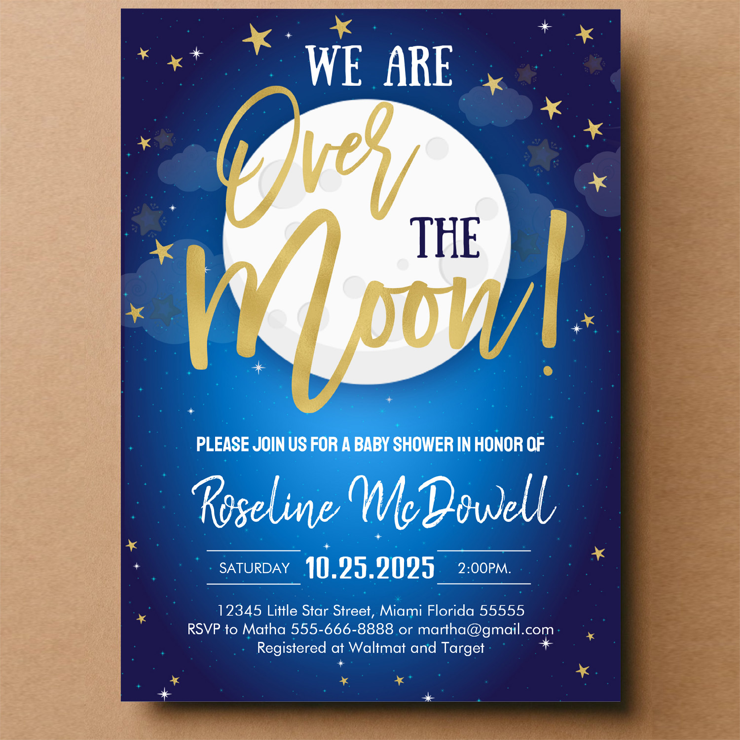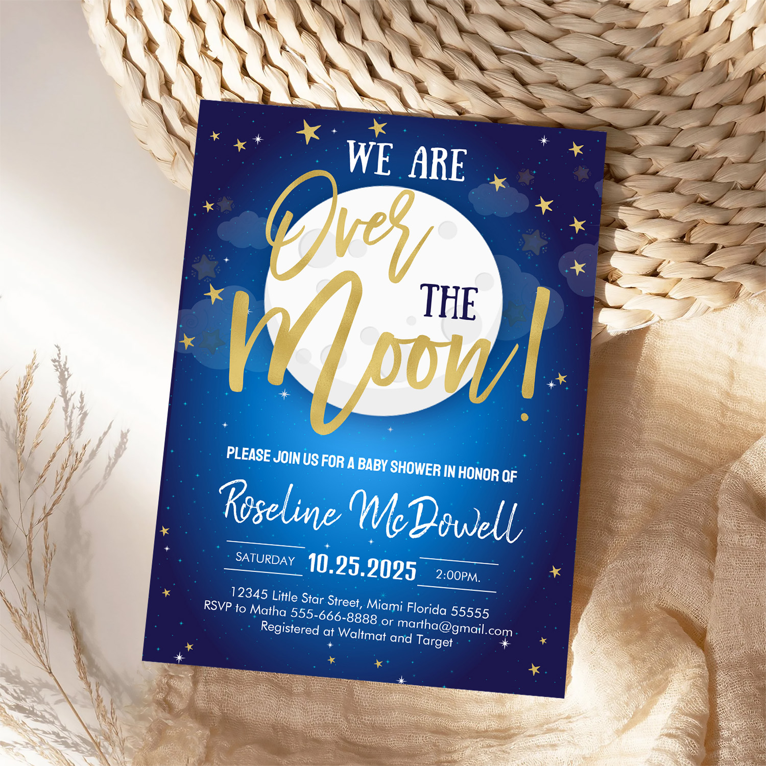 Over The Moon Galaxy Space Themed Baby Shower Invitation
