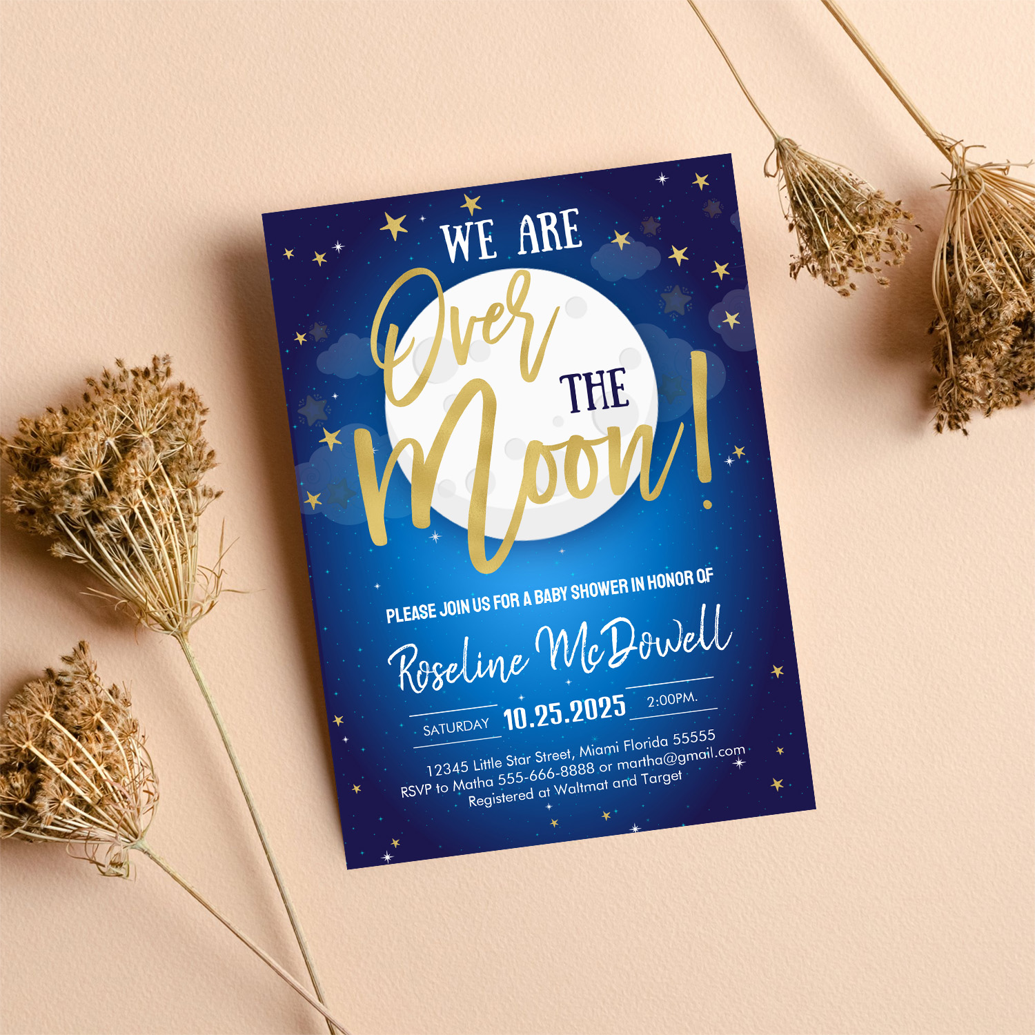 Be the first to review “Over The Moon Galaxy Space Themed Baby Shower Invitation”