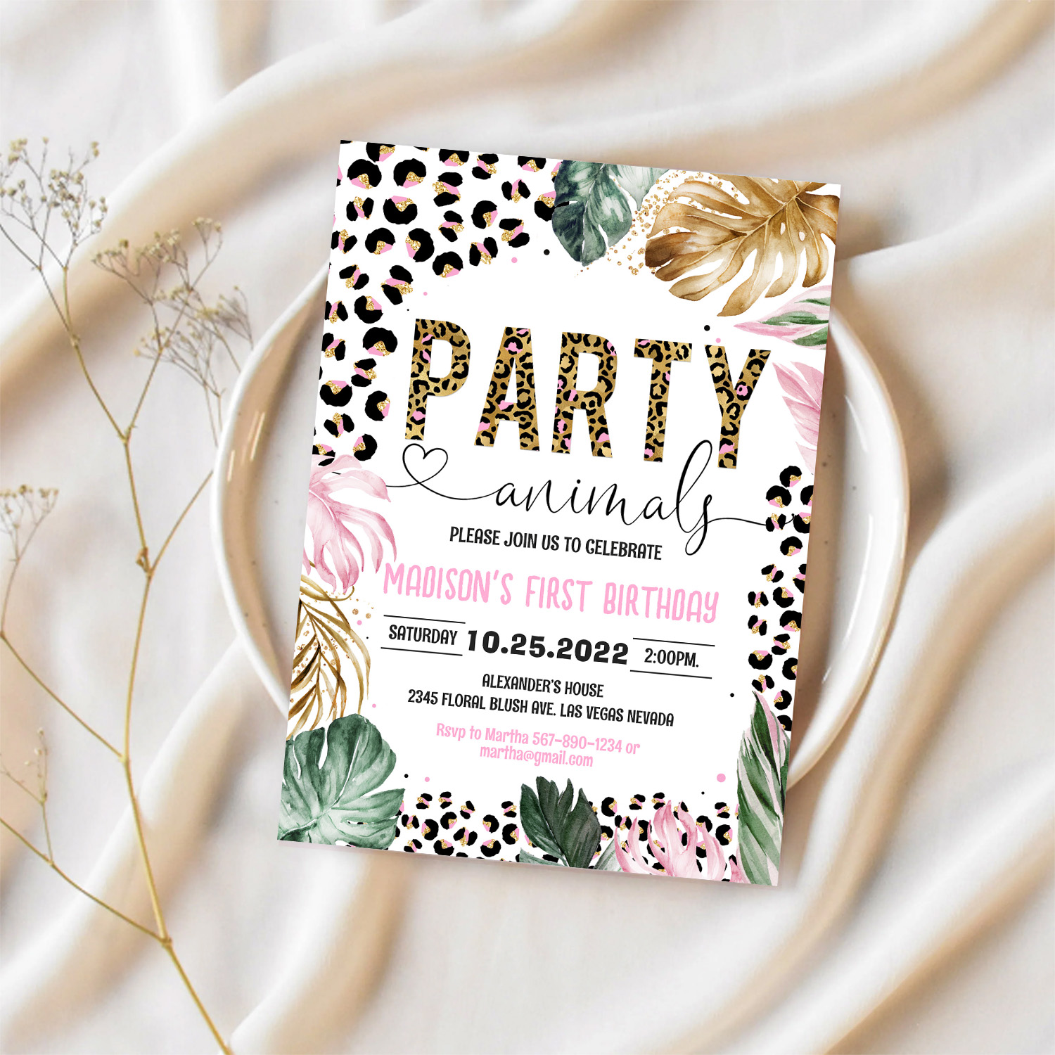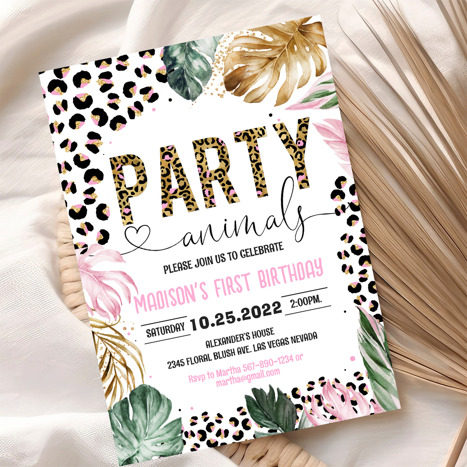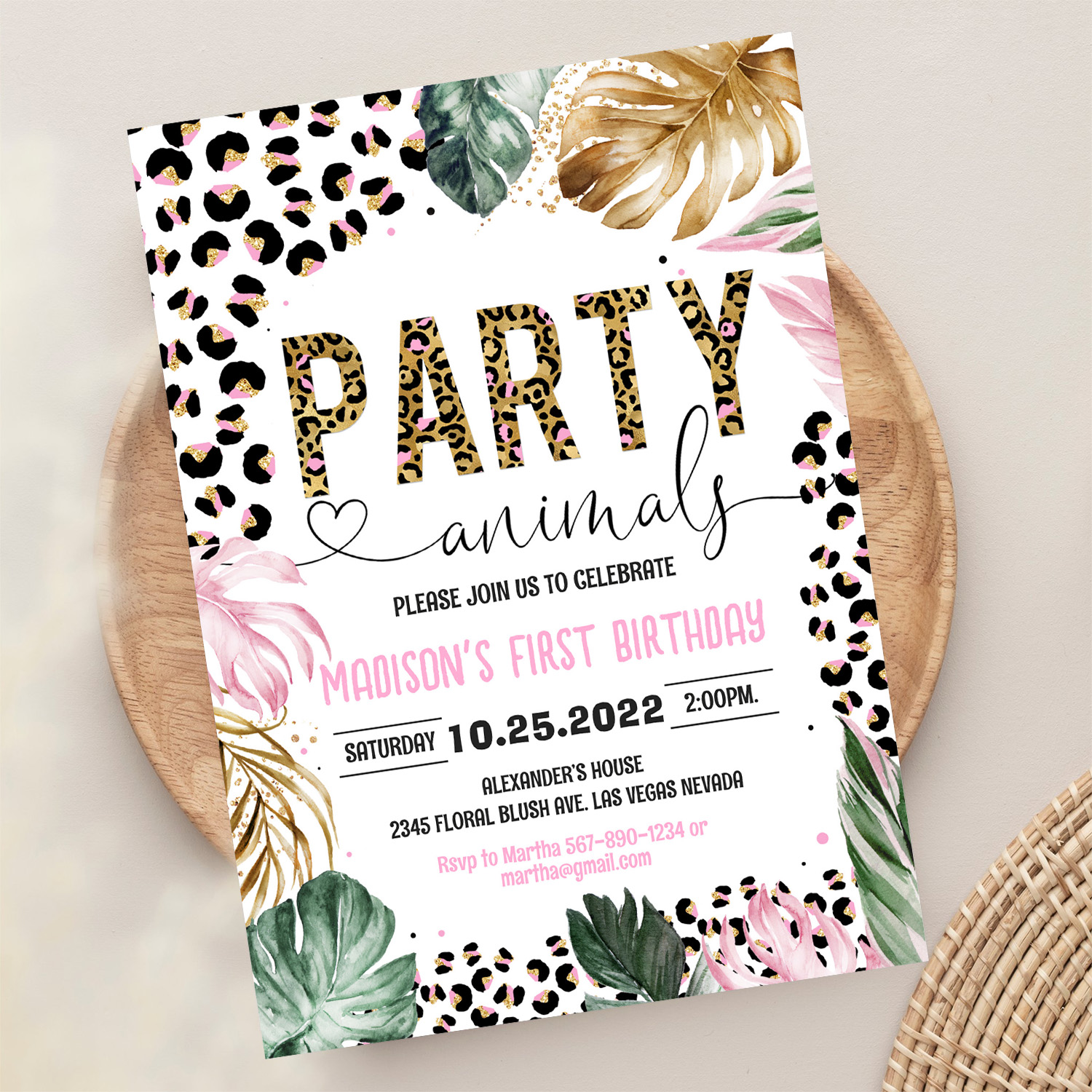 Party Animals Birthday Leopard Print Invitation