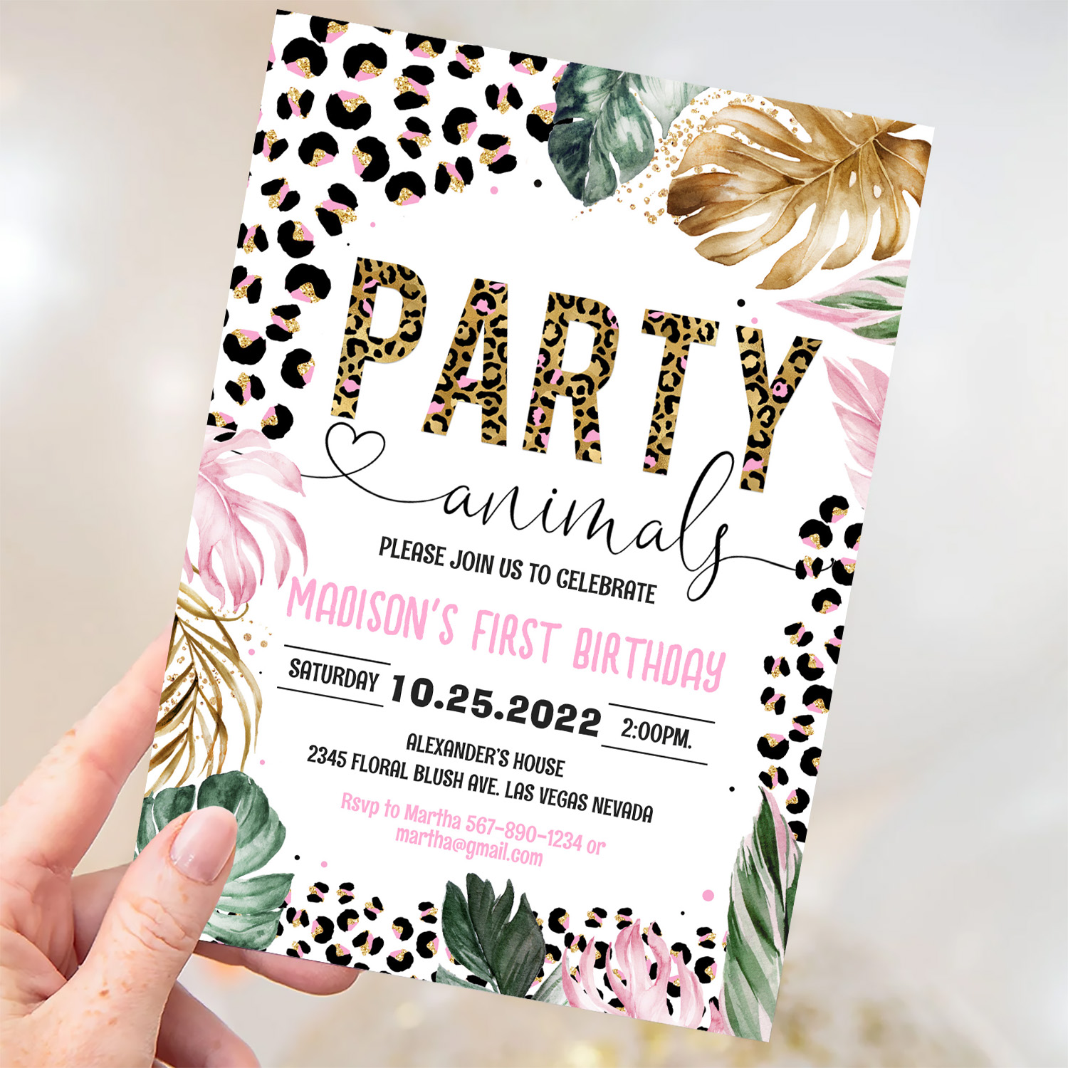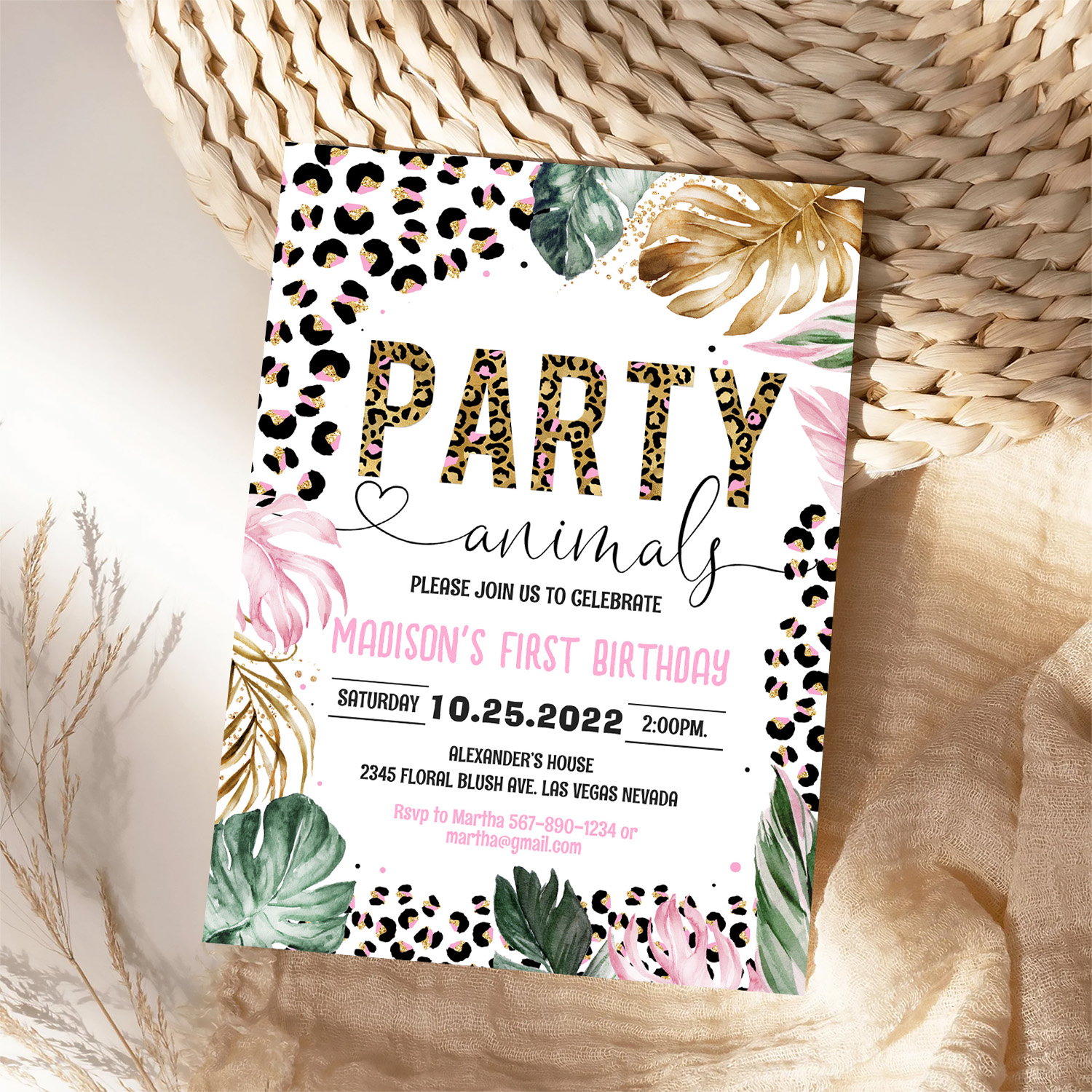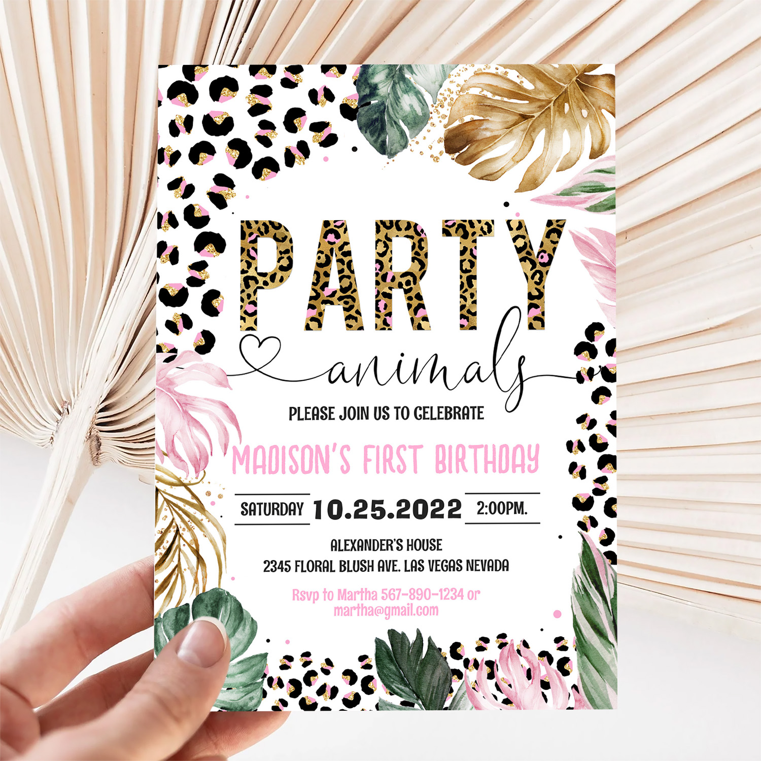 Party Animals Birthday Leopard Print Invitation