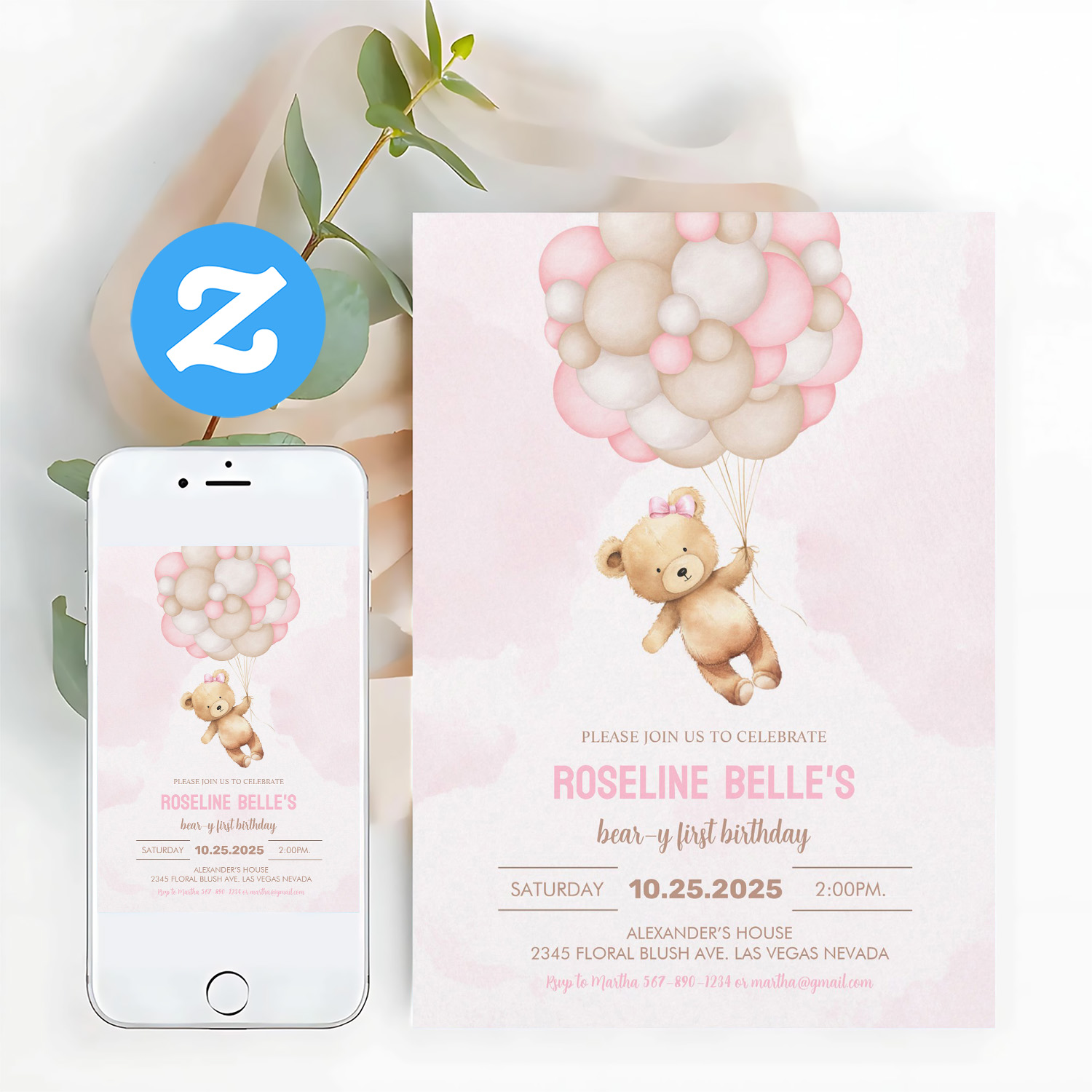 Be the first to review “Teddy Bear Girl 1st Beary First Birthday Invitation”