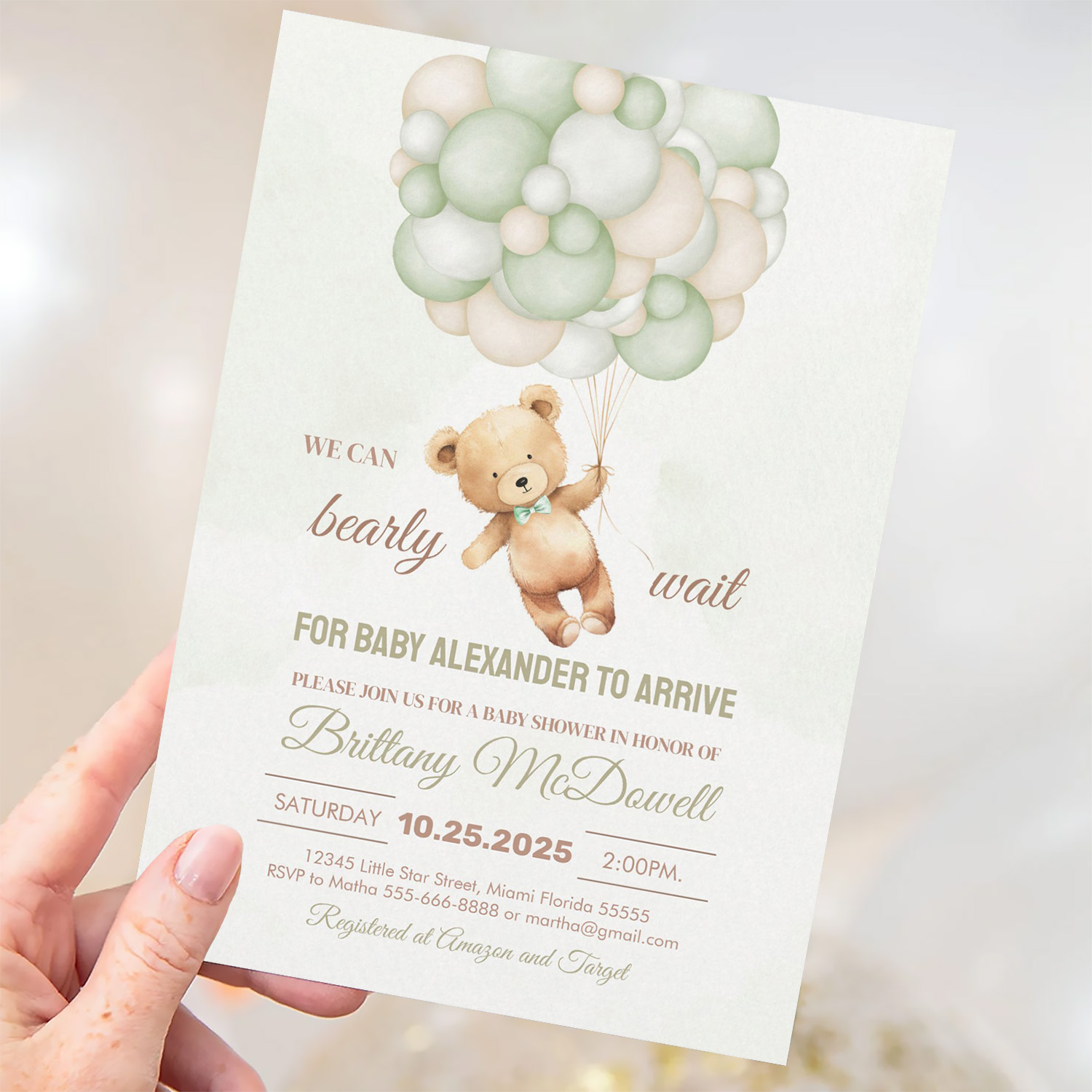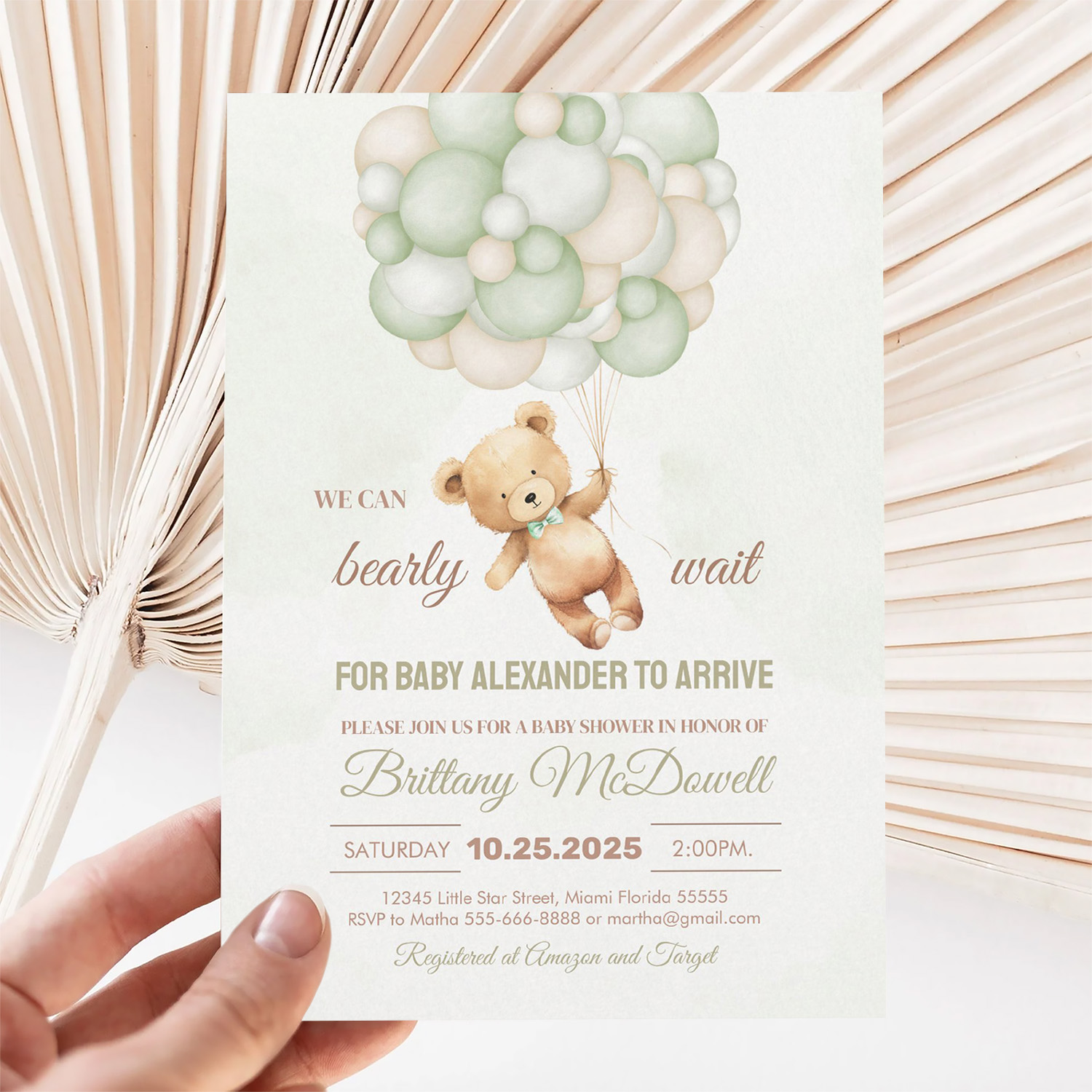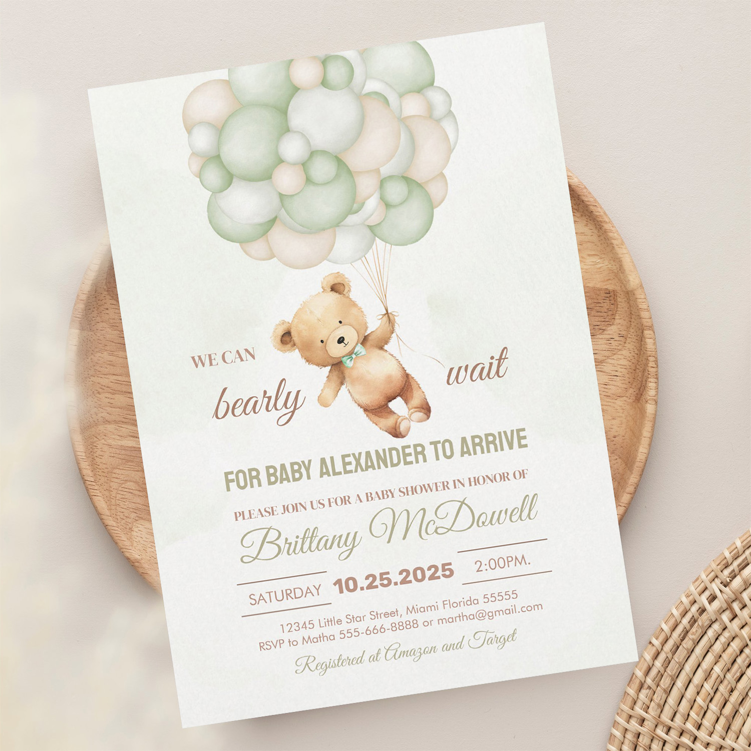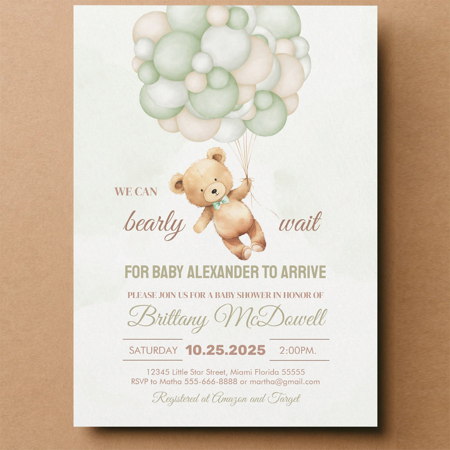 We Can Bearly Wait Bear Theme Baby Shower Invitation