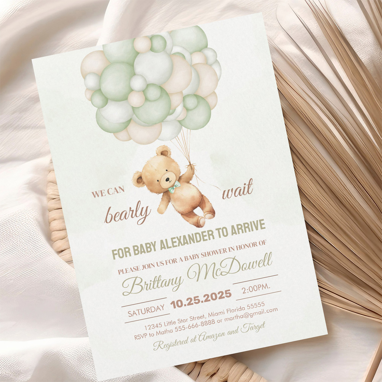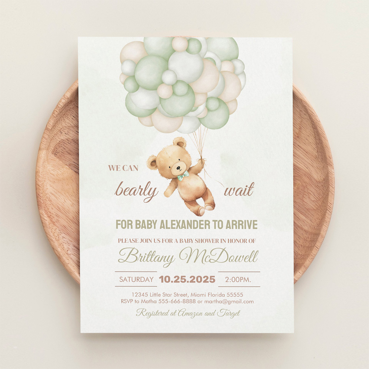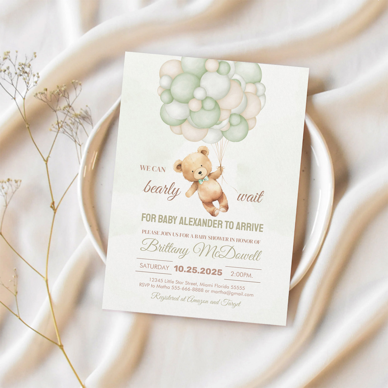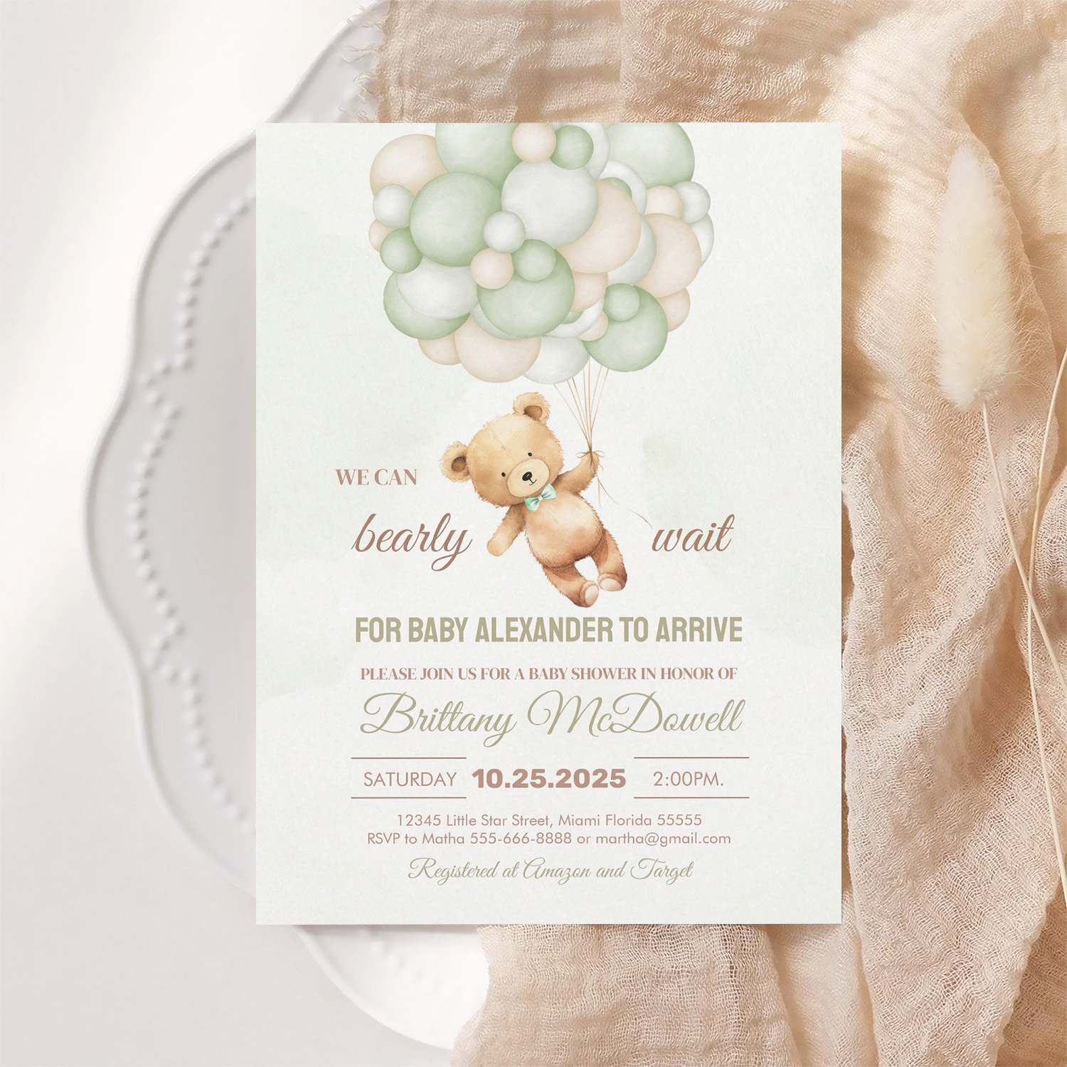 We Can Bearly Wait Bear Theme Baby Shower Invitation