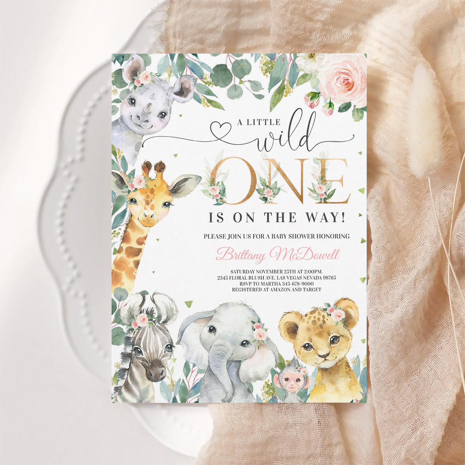 Be the first to review “Wild One Jungle Safari Baby Shower Girl Invitation”