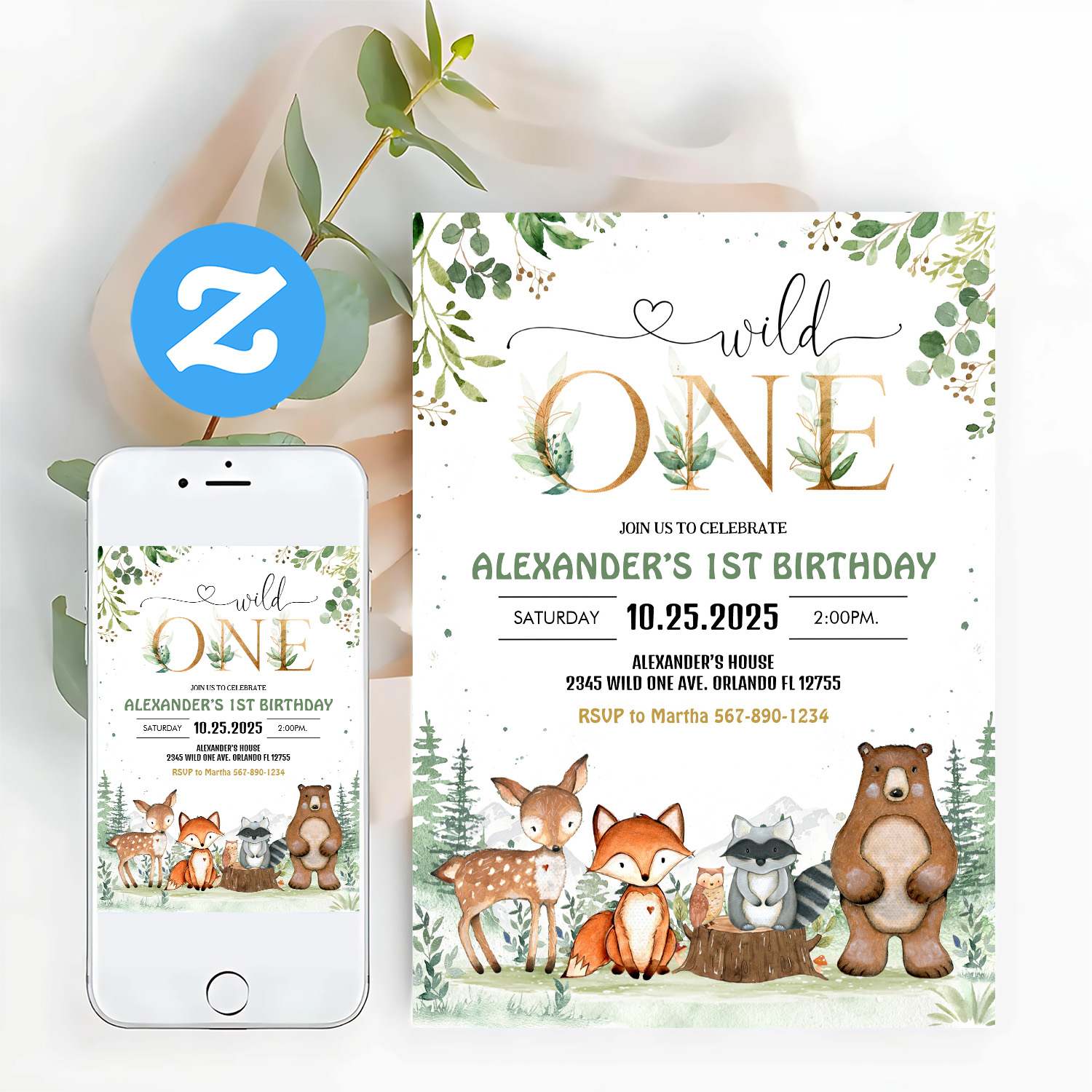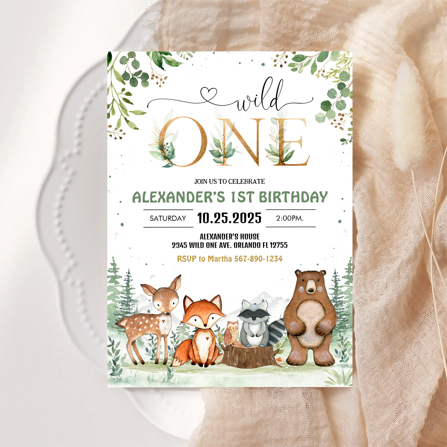 Be the first to review “Wild One Woodland Creatures Birthday Invitation”
